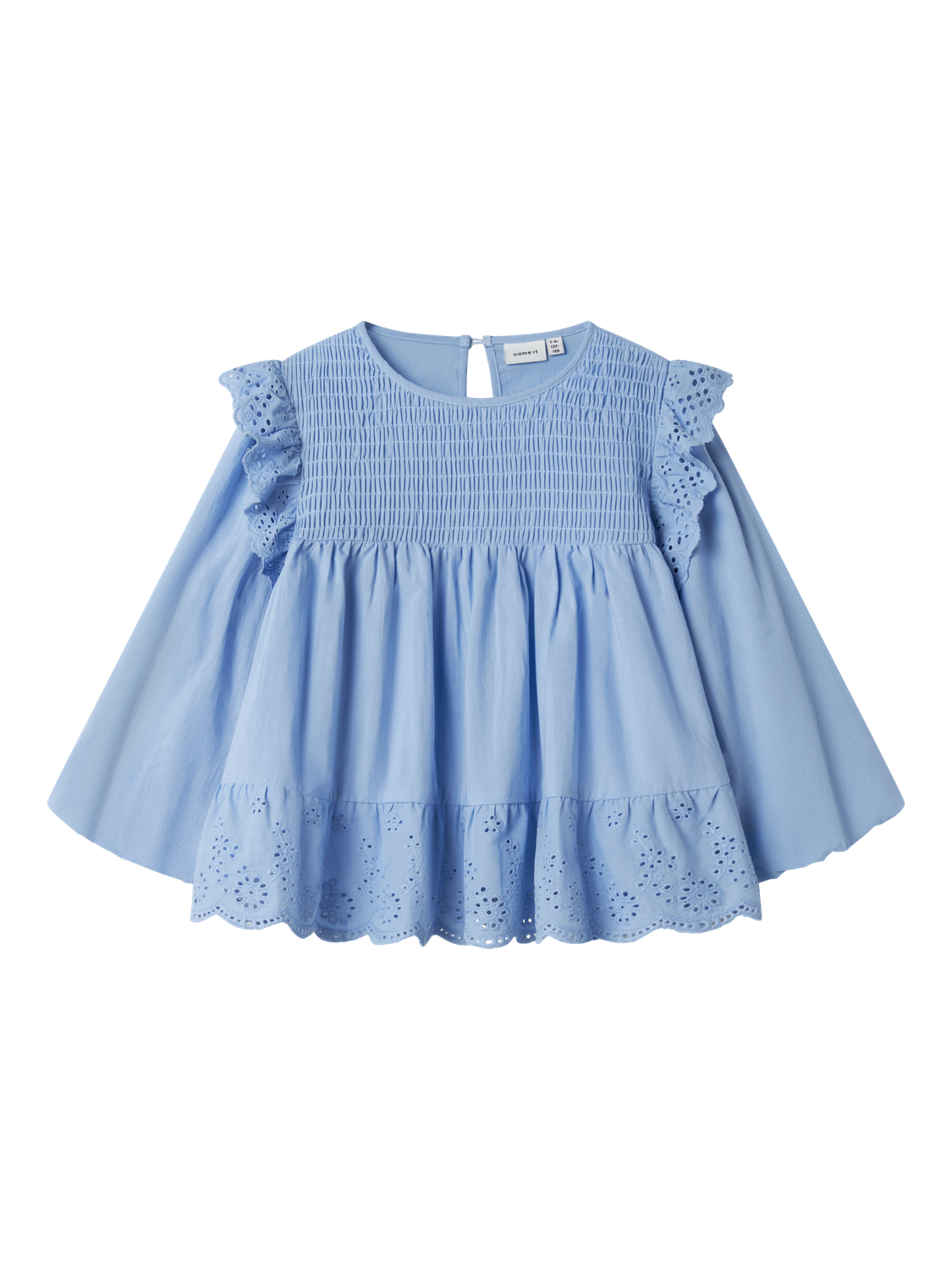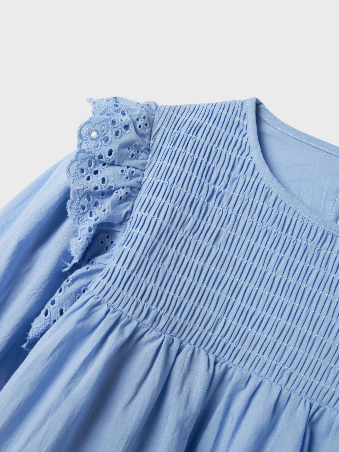 - Detaljer : Rysjer, Blondedetalj, Smock-detalj
