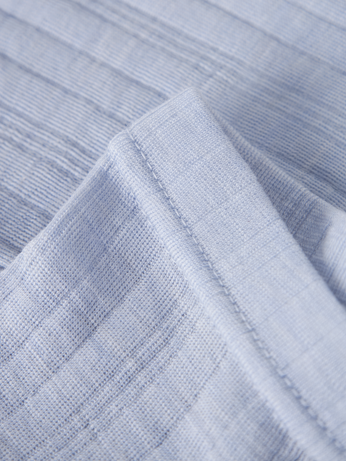 NBMWANG WOOL NEEDLE LONGJOHN XXVI er en stilren og komfortabel langbukse laget av 100% merinoull. Den lyseblå fargen gir et friskt preg, perfekt for kalde dager. Med sin ribbestrikkede design og myke materiale, er disse longjohnsene ideelle for å holde deg varm og komfortabel.