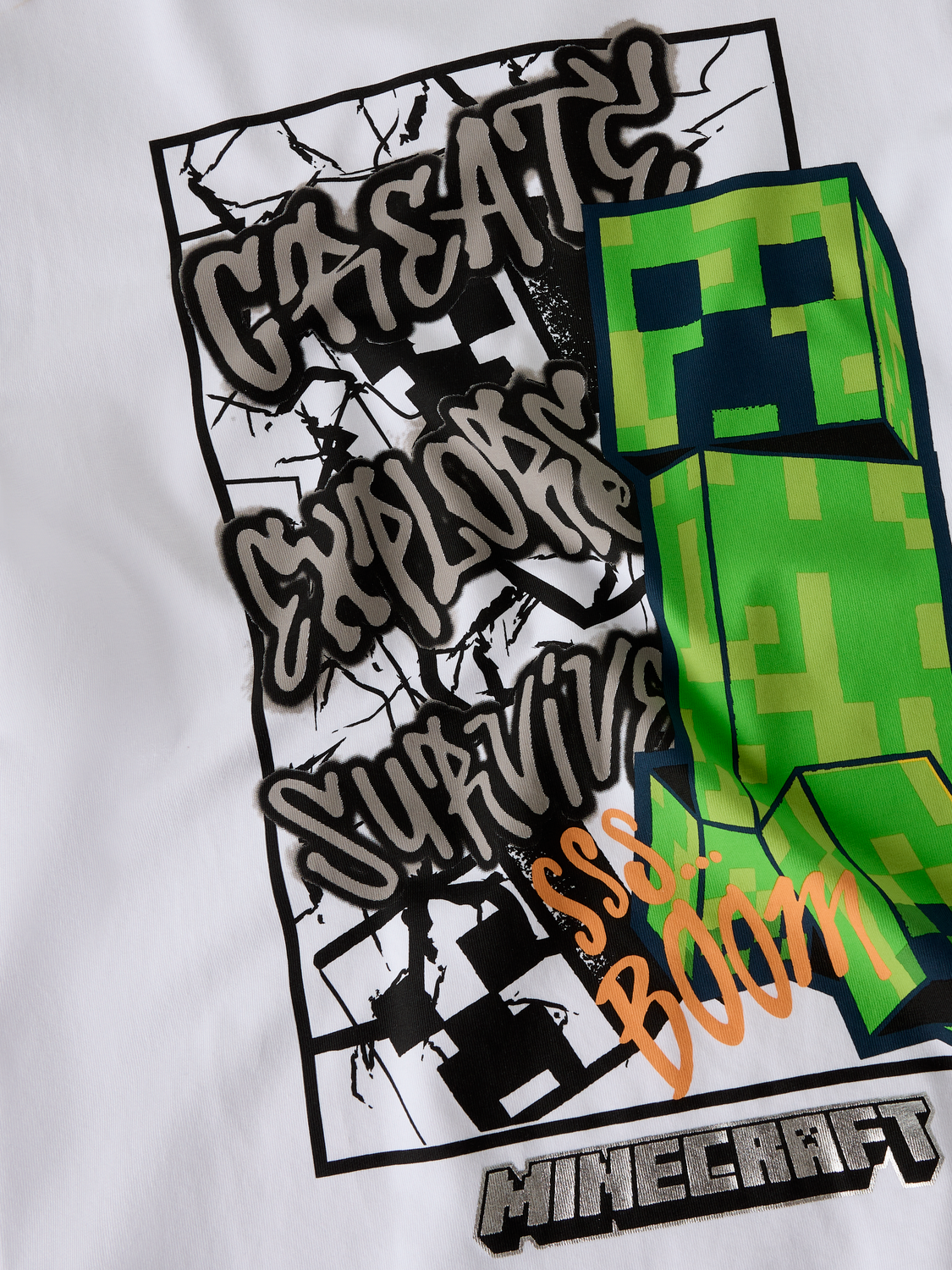 Oppdater barnets garderobe med denne kule Minecraft toppen, perfekt for hverdagsbruk. Laget av myk jersey, gir den en behagelig følelse og god bevegelsesfrihet.