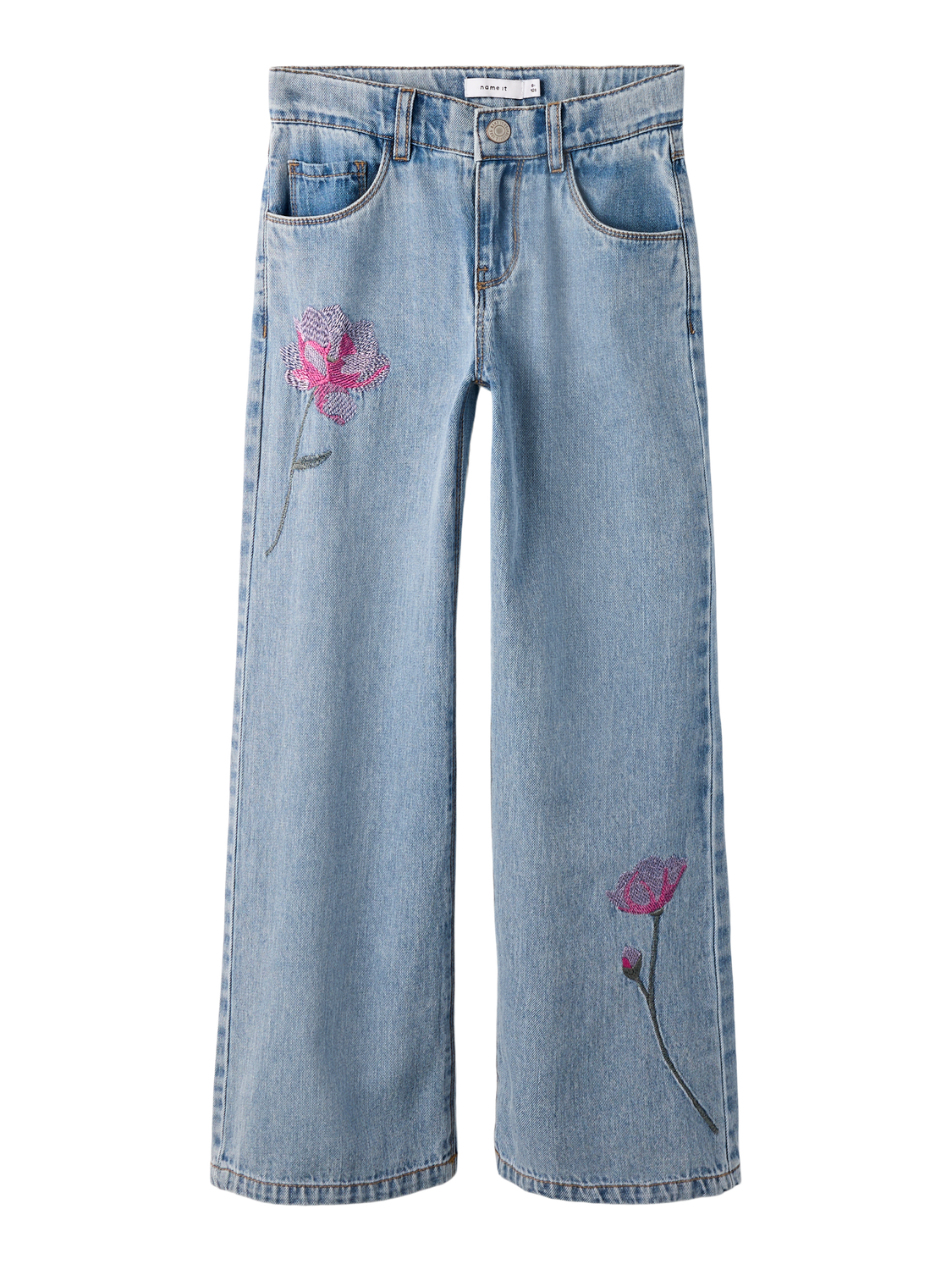 Name It - Nkfrose Wide Emb Jeans 3997-Ov D - Light Blue Denim Flower Emb