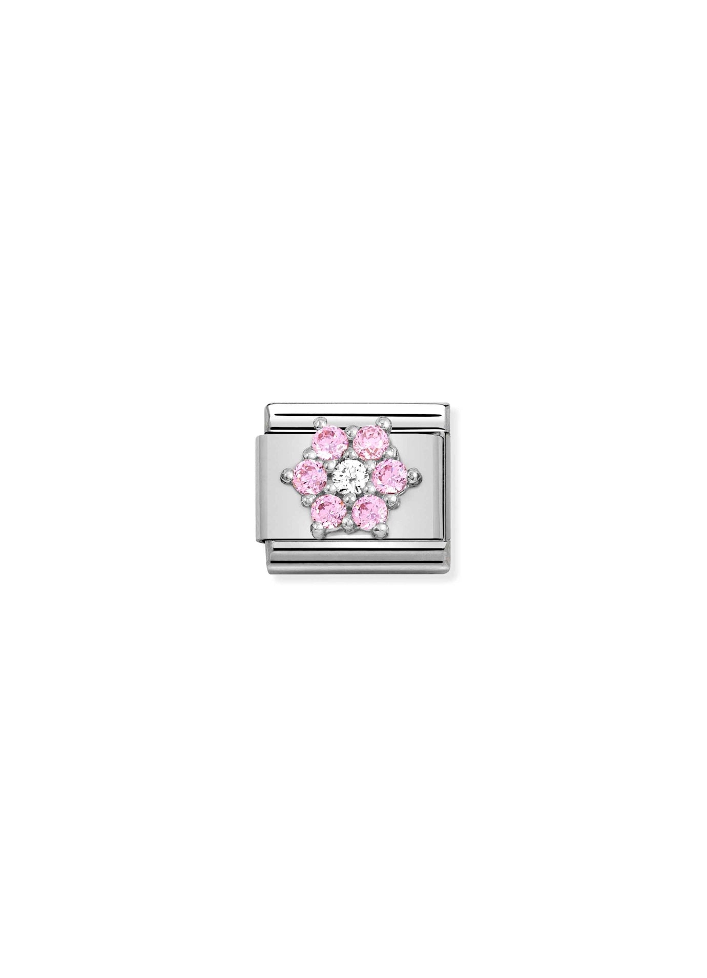 Nomination Italy - Composable CL SYMBOLS steel, Cz and 925 sterling silver RICH PINK and WHITE flower / Rosa blomst - Stainless Steel