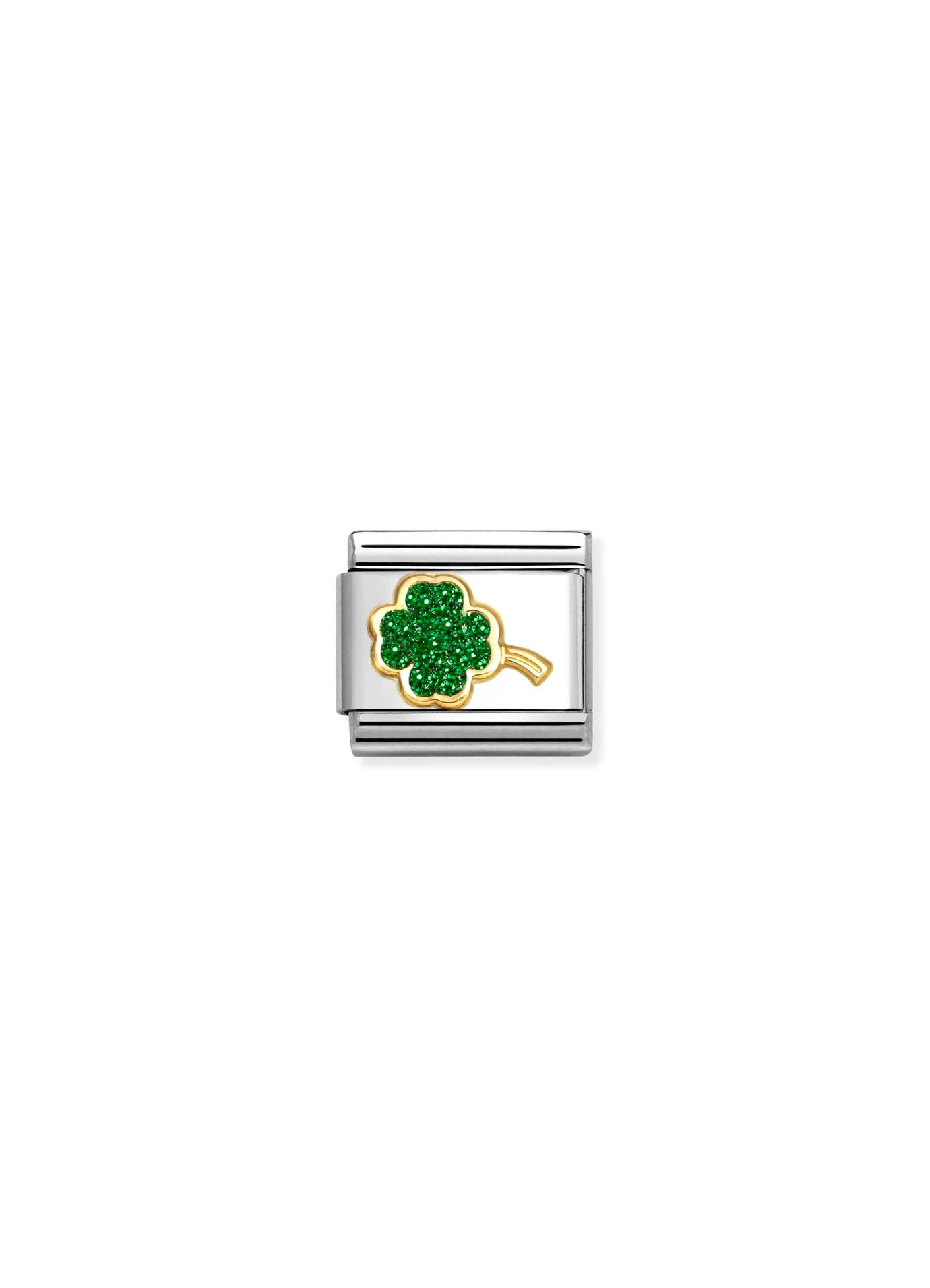 Nomination Italy - Composable Classic GLITTER SYMBOLS in steel, enamel and 18k gold (18_GREEN four-leaf clover) - Gold