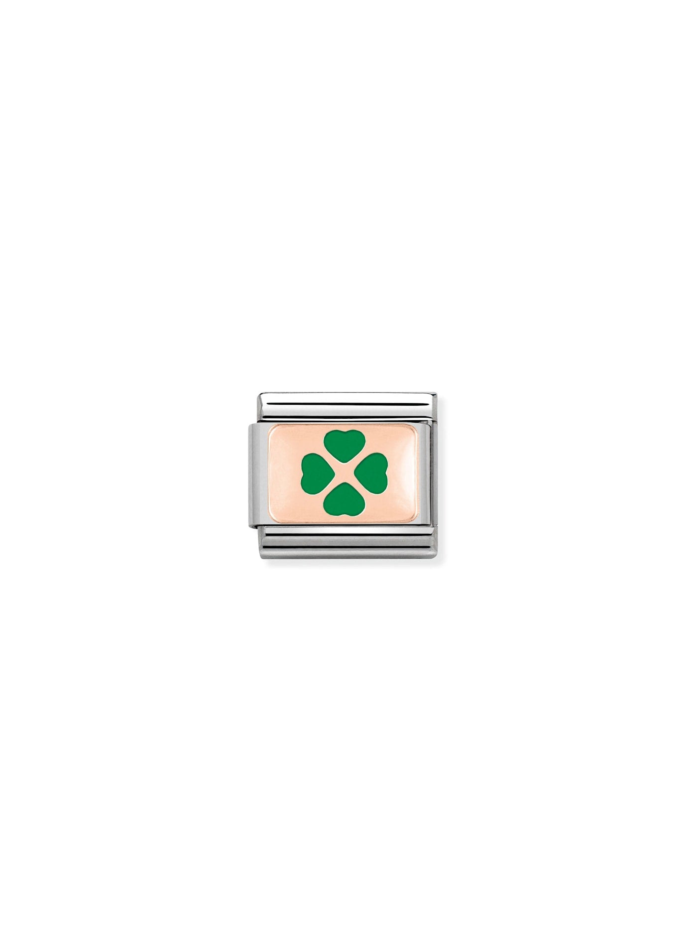 Nomination Italy - Classic PLATES in stainless steel with 9k rose gold and enamel Green Four-Leaf Clover / Firkløver - Stainless Steel