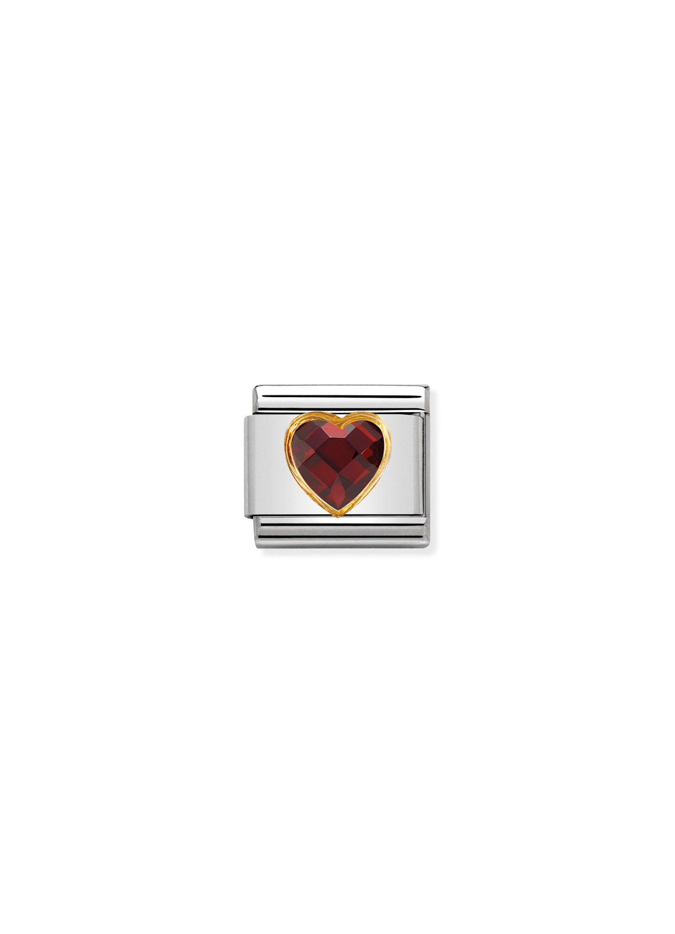 Nomination Italy - Composable Classic HEART FACETED CZ in steel and 18k gold RED / Rødt hjerte - Stainless Steel