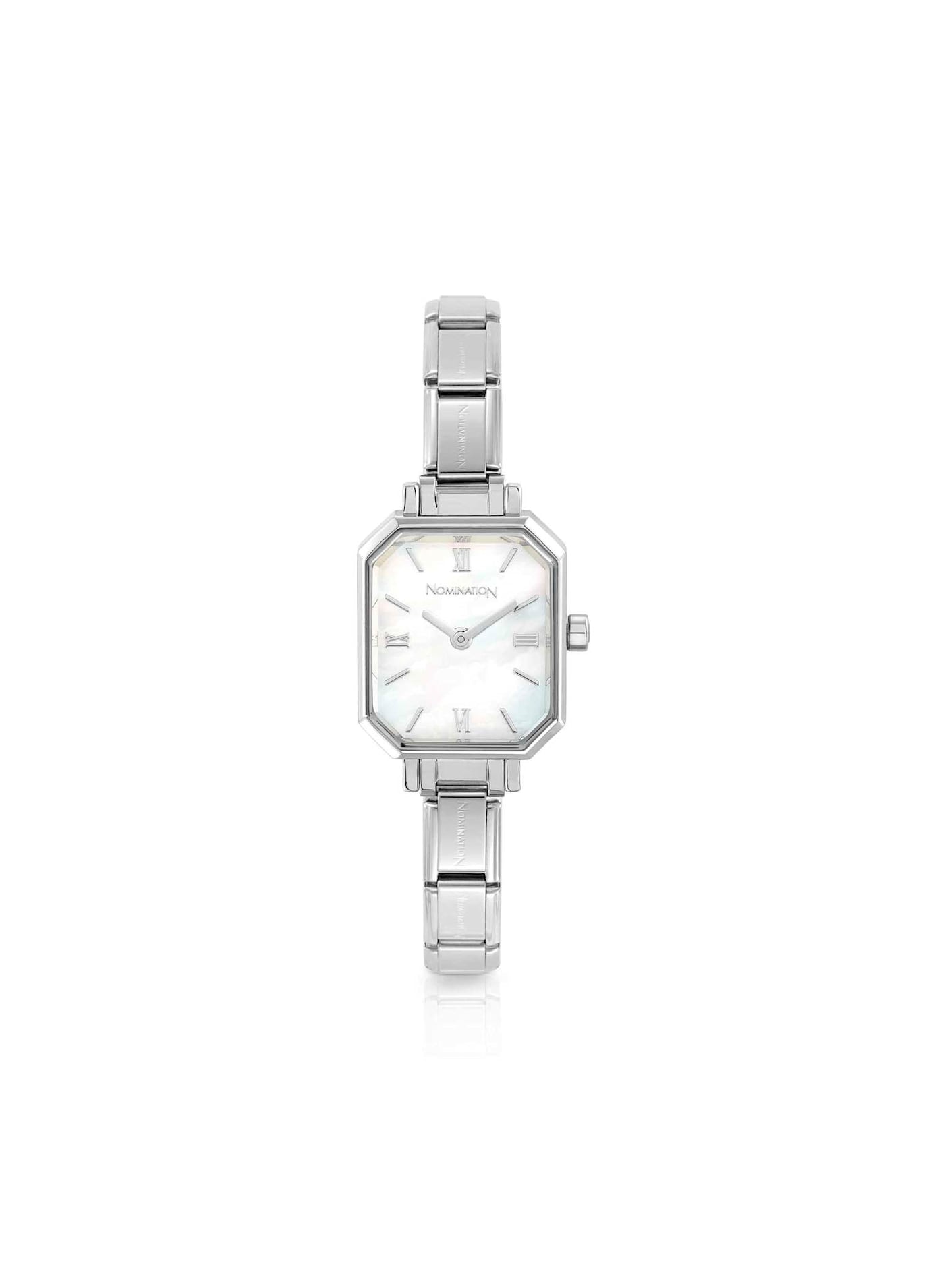 Nomination Italy - PARIS watch with NEW RECTANGULAR steel strap WHITE mother-of-pearl - Silver