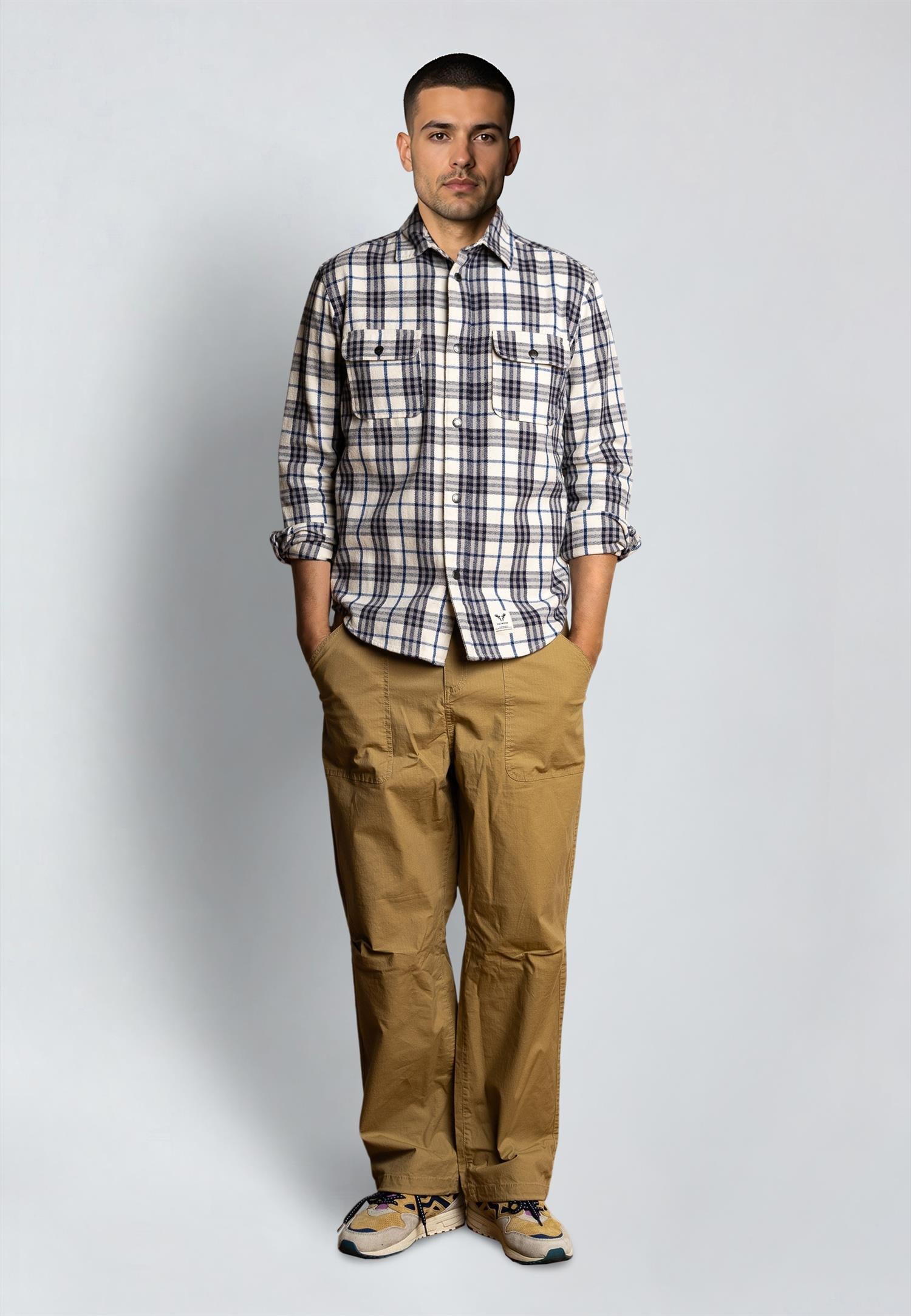 Denne skjorten er laget av 100 % myk, børstet bomull i rutete flanell, som gir høy komfort og en behagelig følelse mot huden. Den har en romslig passform som sitter pent i normal størrelse, eller kan styles oversized ved å gå opp en størrelse. Skjorten er utstyrt med to praktiske brystlommer og trykknapplukking i front. Det tykkere stoffet gir ekstra slitestyrke og gjør skjorten godt egnet til både hverdagsbruk og kjøligere dager.