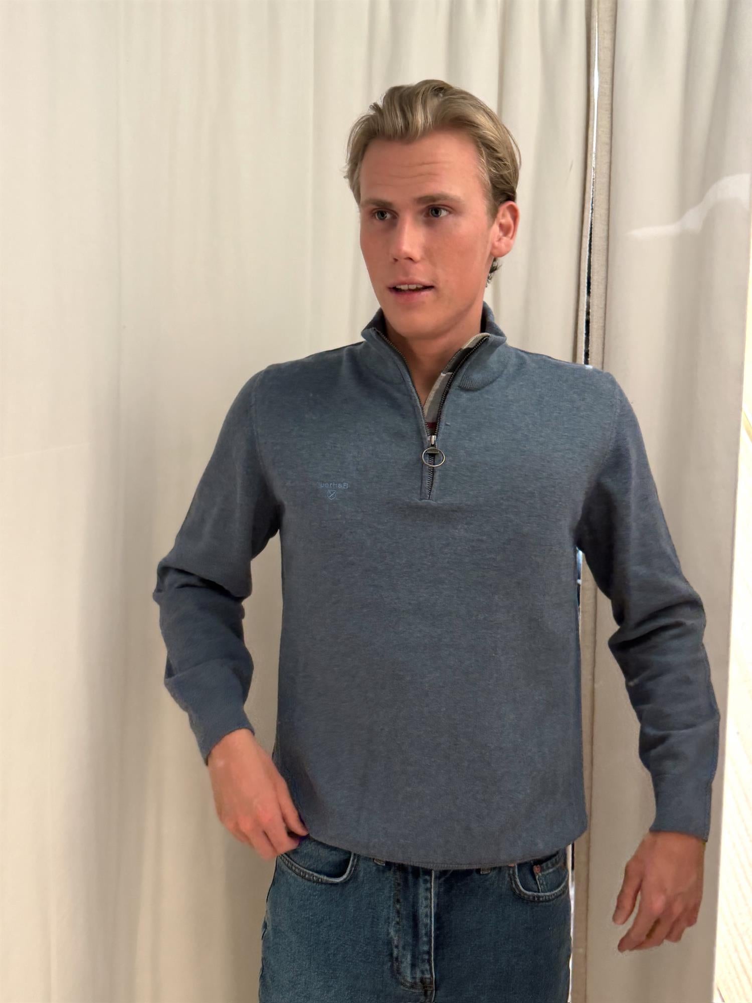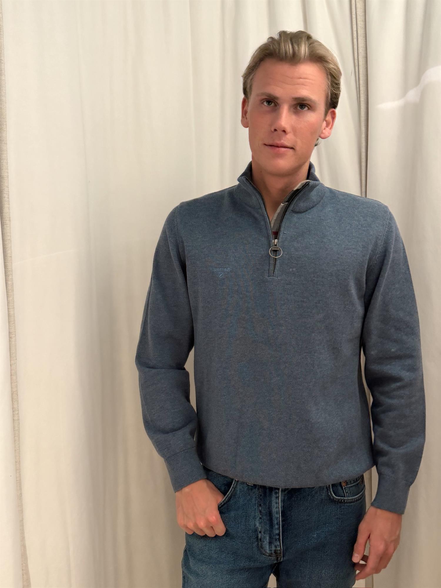 Barbour - Cotton Half Zip Knitted Jumper - Dusty Blue