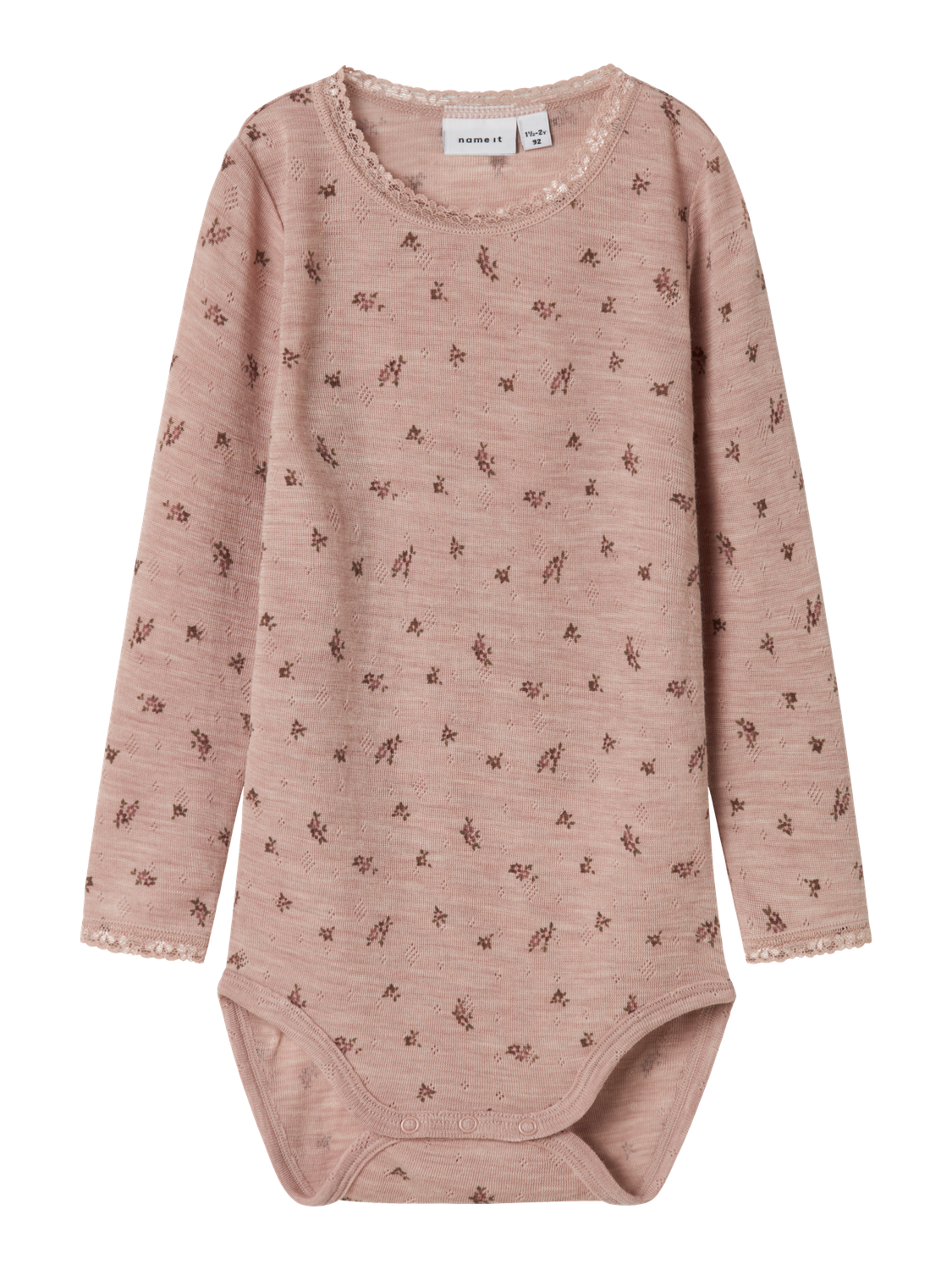 Name It - Nmfwang Wool Needle Ls Body - Shadow Gray Small Flowers