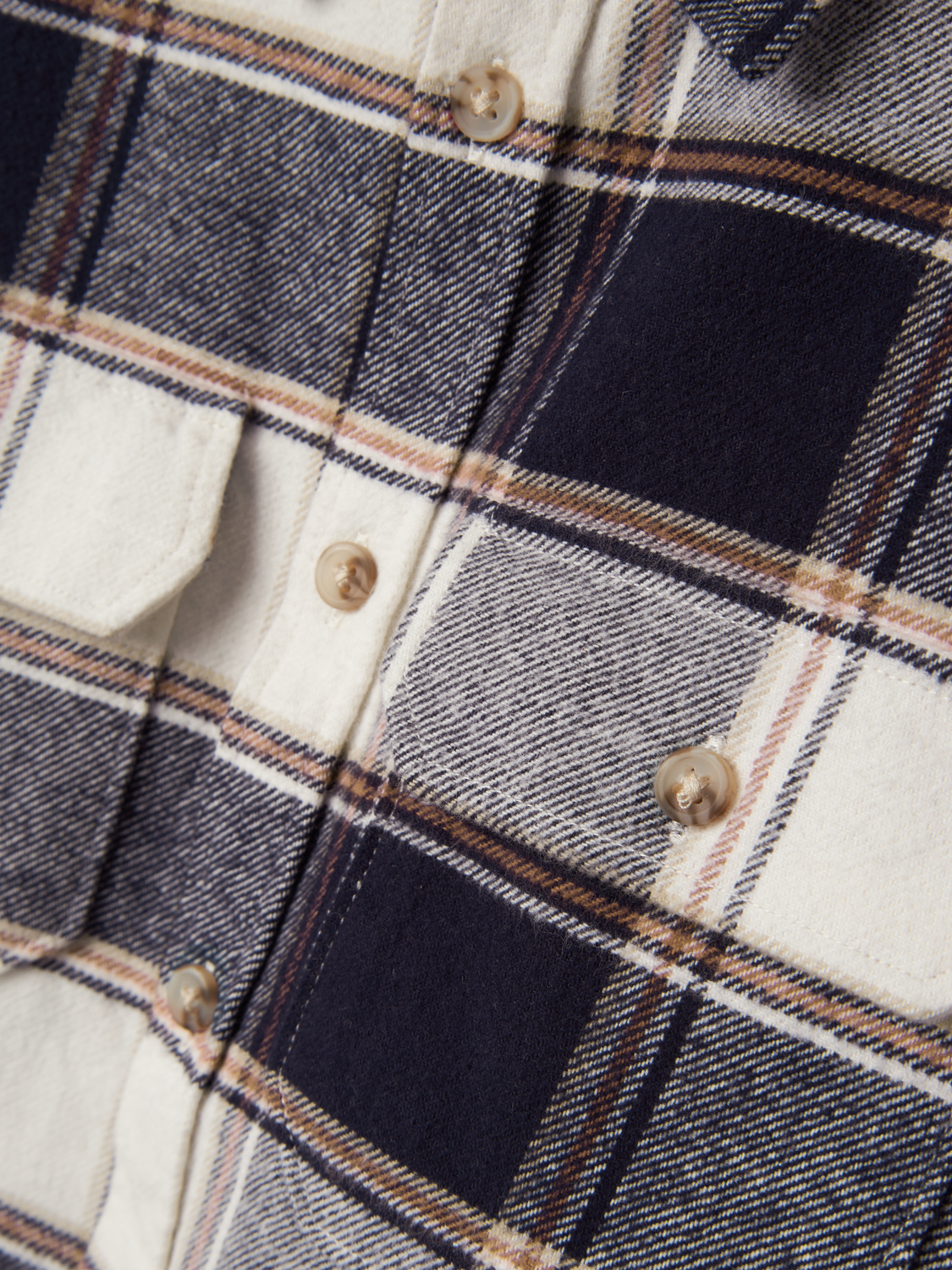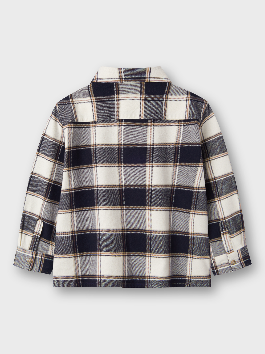 Kle barnet ditt i en stilren og komfortabel skjorte laget av 100% økologisk bomull. Denne mørkeblå skjorten har et klassisk kryssmønster og en lett strukturert overflate, perfekt for aktive barn som elsker å utforske.