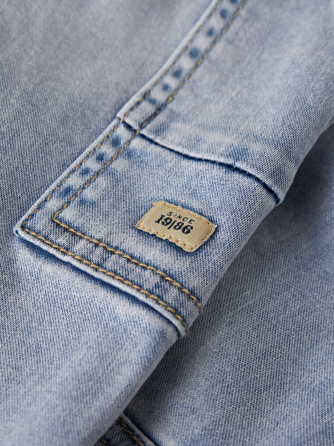 Lyseblå baggy jeans fra NAME IT MINI er et stilig og komfortabelt valg for barn. Laget av slitesterk denim med en unik blanding av materialer, gir disse buksene både stil og funksjonalitet. Perfekte for hverdagsbruk, disse jeansene kombinerer trendy design med praktiske detaljer.