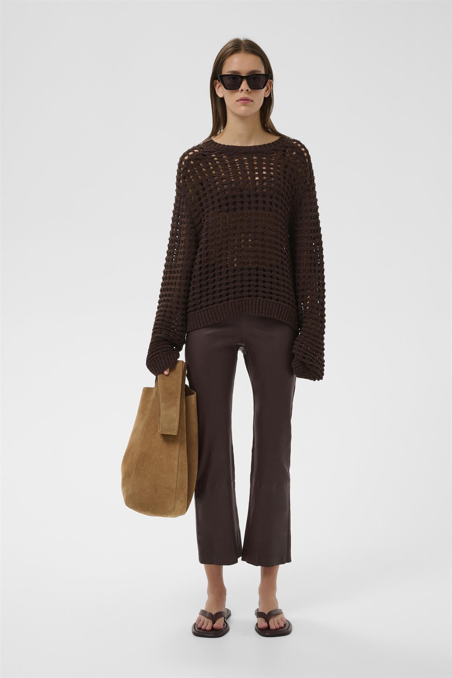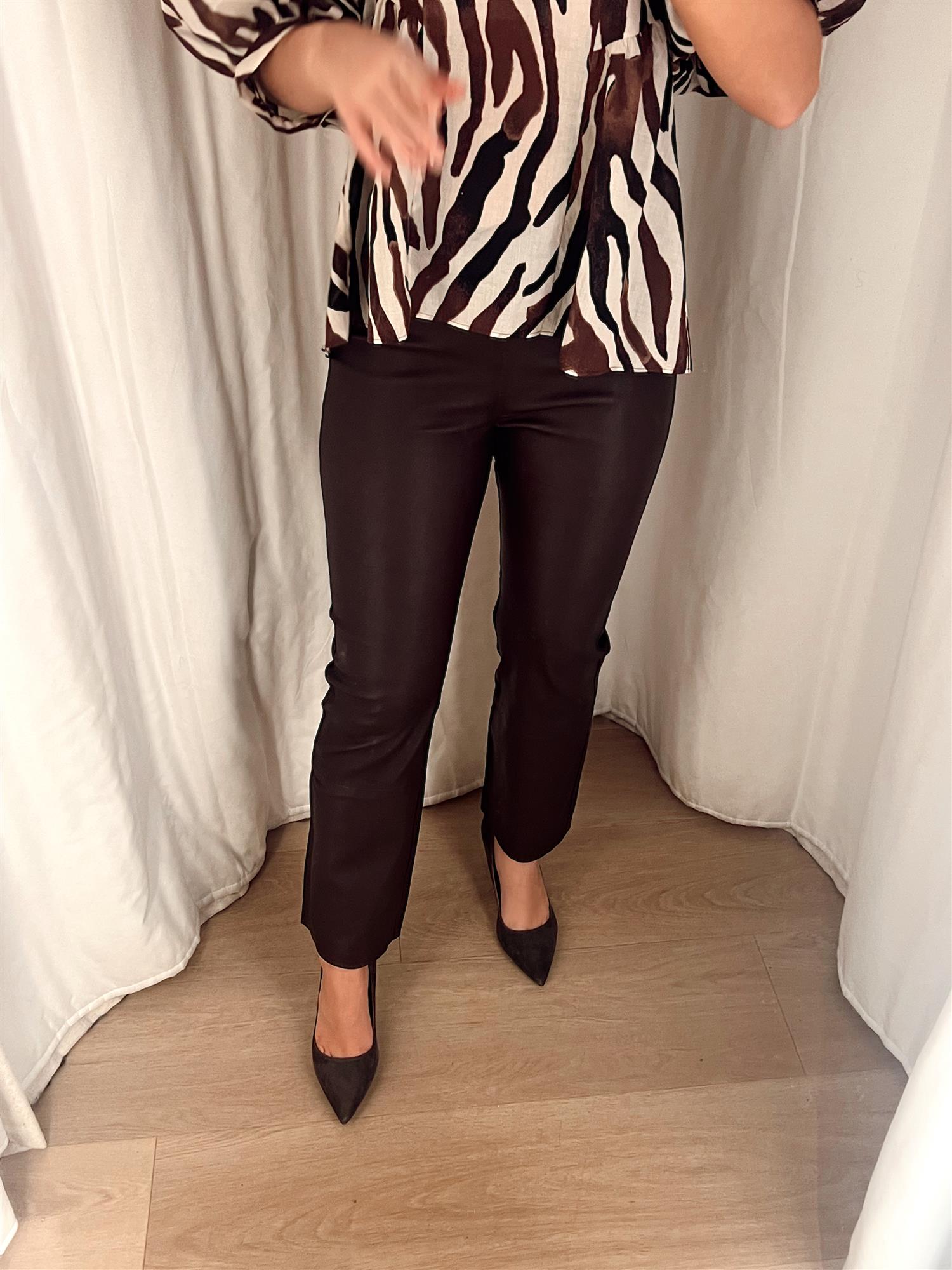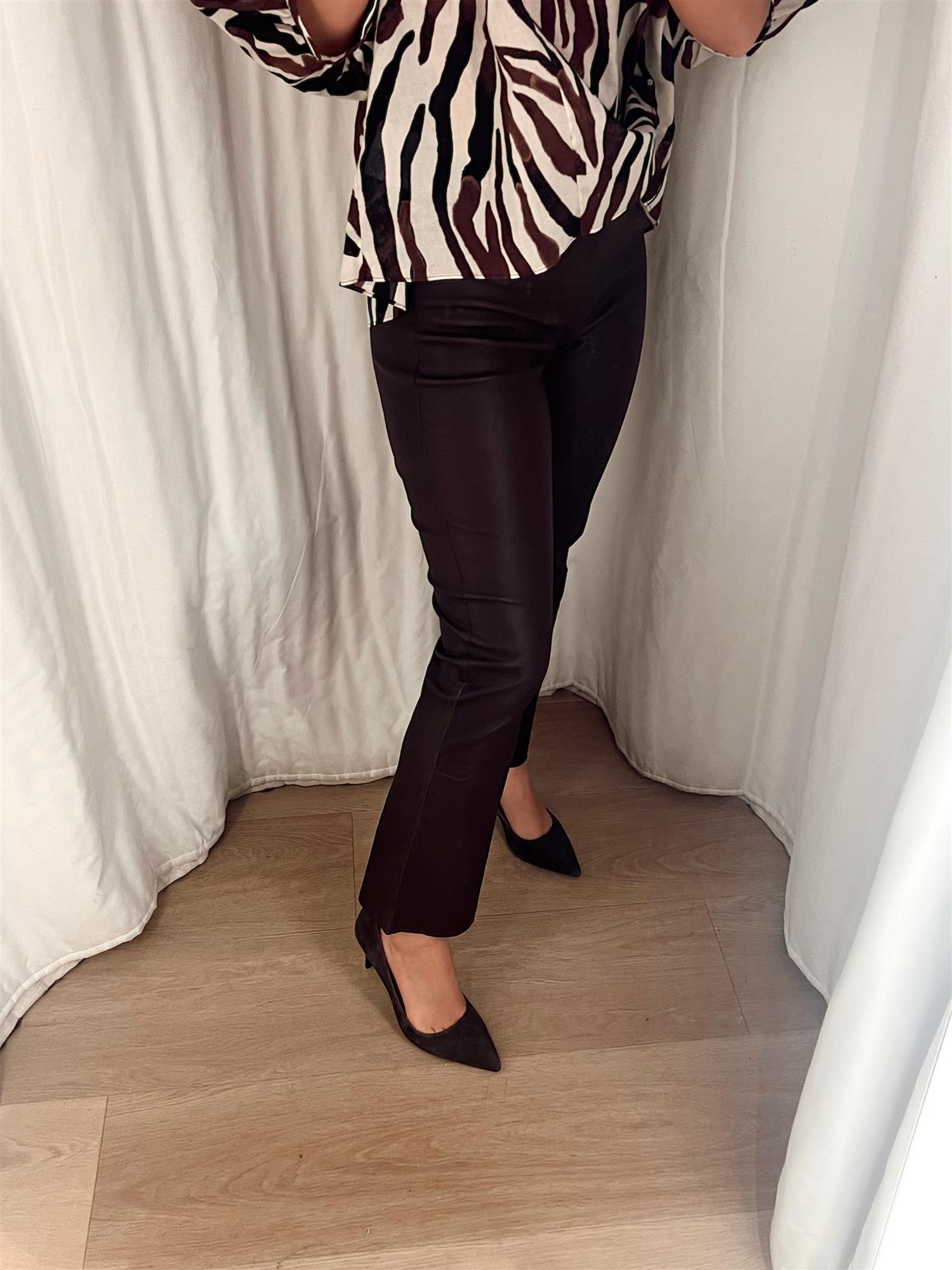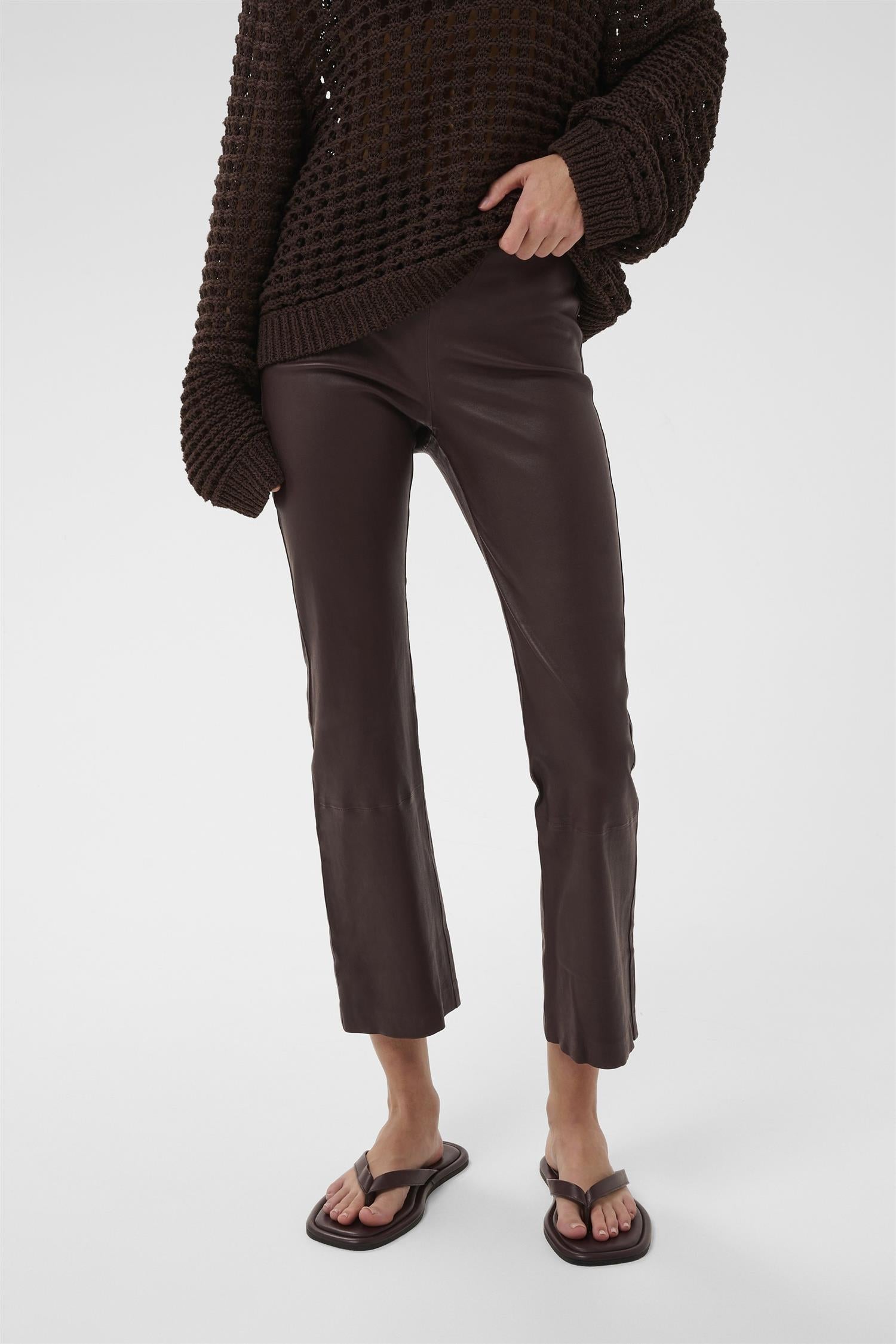 Cedar Pant er et stilrent og tidløst valg laget av 100% lær. Disse buksene har en tettsittende passform og elastisk midje, noe som gir både komfort og stil. Den dype fargen Coffee Bean gir et sofistikert preg, perfekt for spesielle anledninger.