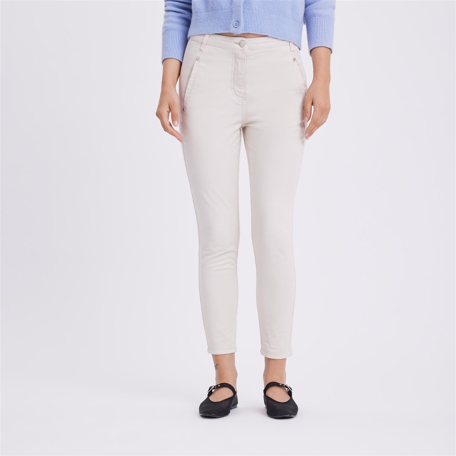 JolieFV Pure 820 CROP bukser i fargen Moonbeam kombinerer komfort og stil. Laget av myk bomull med en liten andel elastan, gir disse buksene en behagelig passform som er perfekt for avslappede dager.