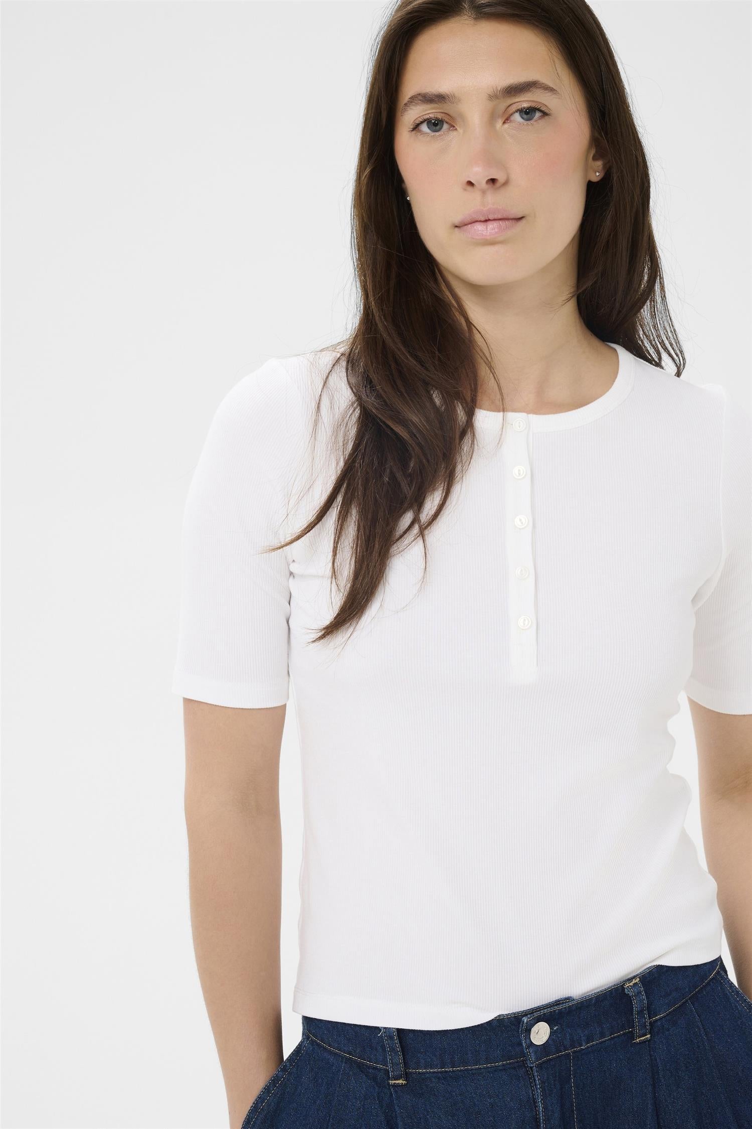 AngelinaPW TS er en stilren t-skjorte i lys hvit, laget for å gi deg både komfort og stil. Den slanke passformen fremhever figuren din, noe som gjør den til et utmerket valg for både hverdagsbruk og spesielle anledninger.