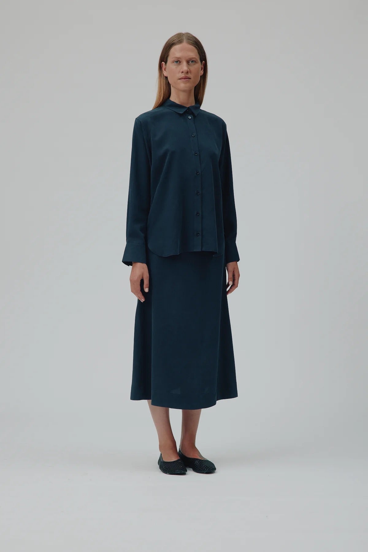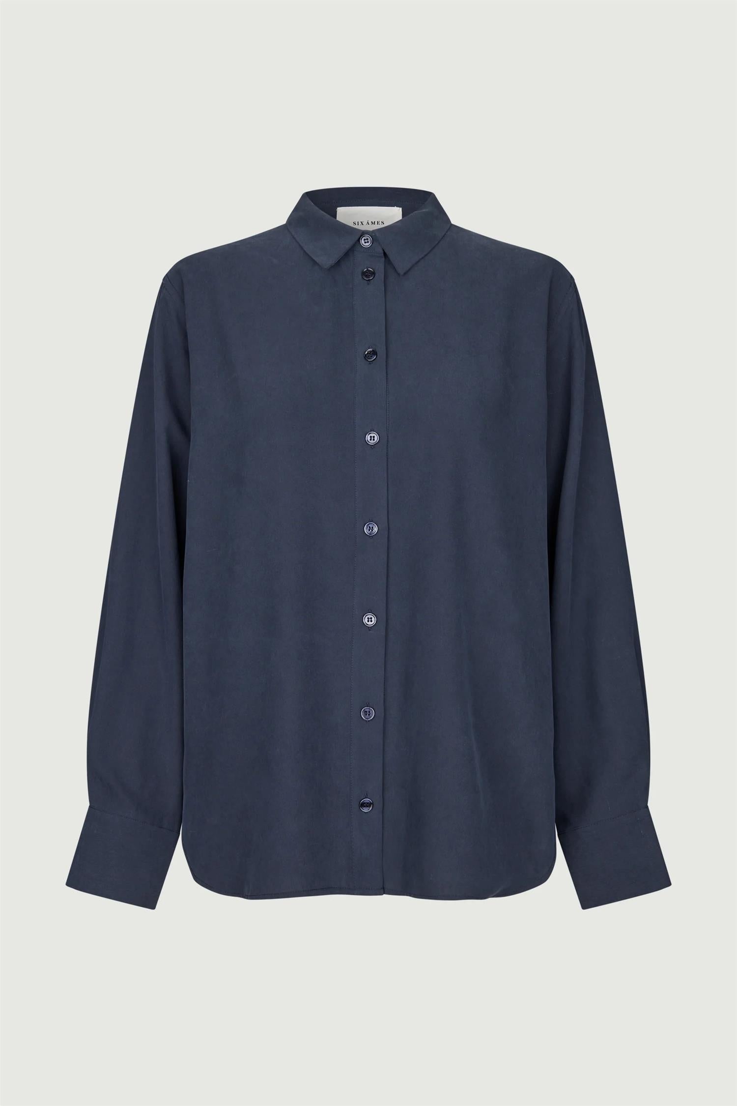 Ally er en skjorte med avslappet passform, laget i 100 % spunnet silke som gir et lett og eksklusivt uttrykk. Skjorten har blanke knapper i front og på mansjettene, samt en diskret fold i ryggen som gir fin bevegelse. Et elegant og allsidig plagg som fungerer like godt alene som stylet under en strikkegenser for et uanstrengt, sofistikert uttrykk.