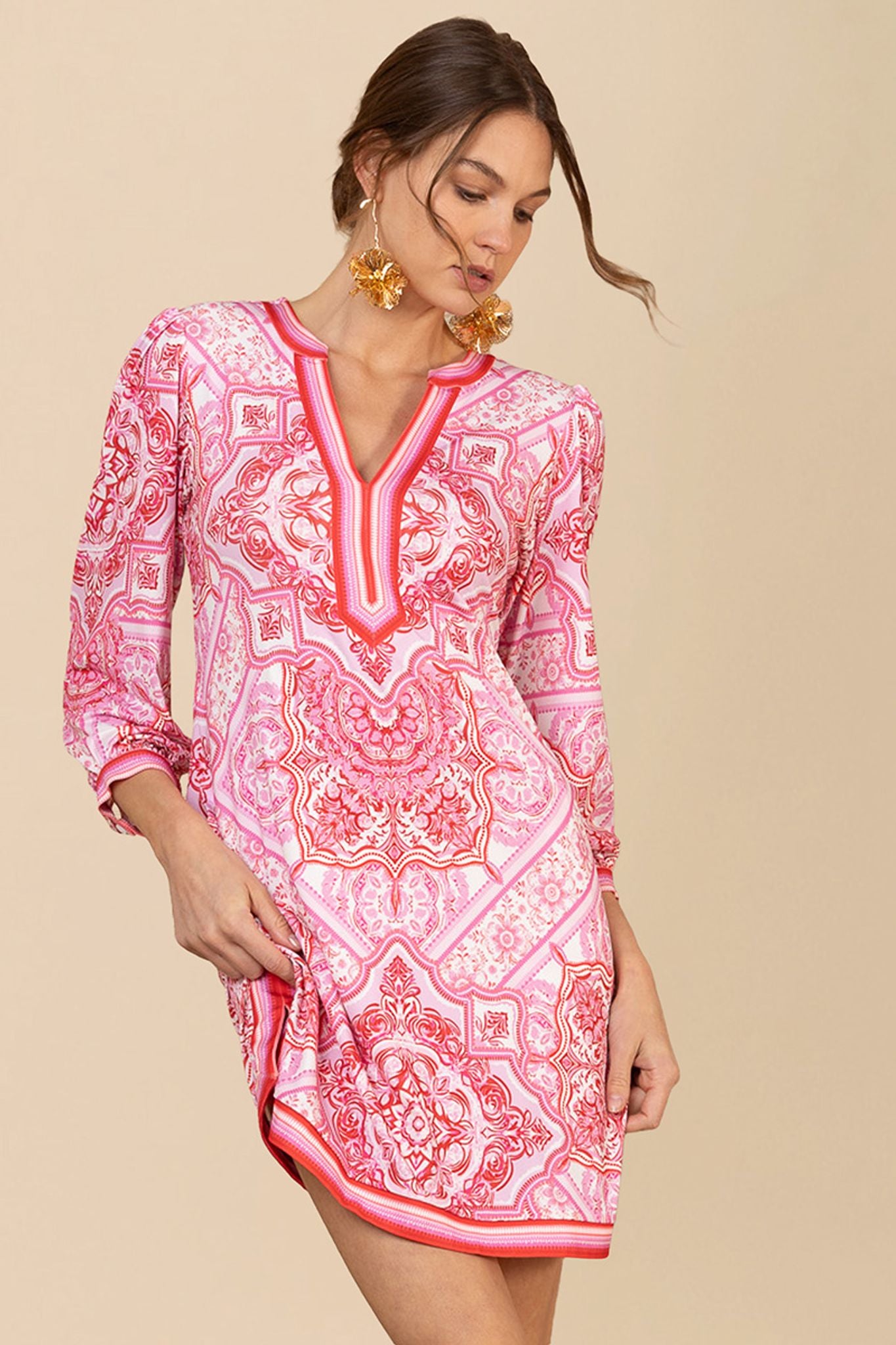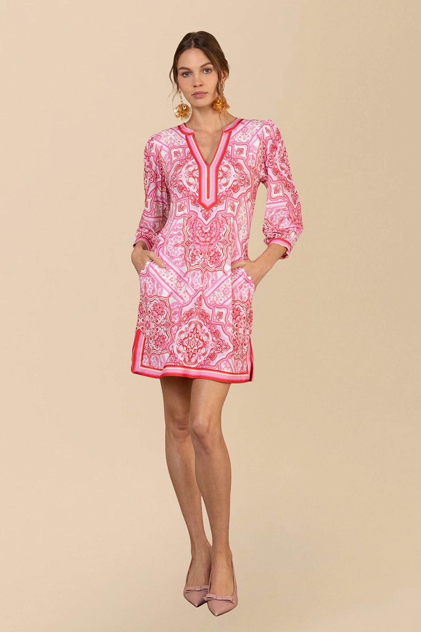 Den elegante Austen kjolen i rød er perfekt for spesielle anledninger. Med 3/4 bell sleeves og detaljerte kanter, gir den et sofistikert preg til ethvert antrekk.
