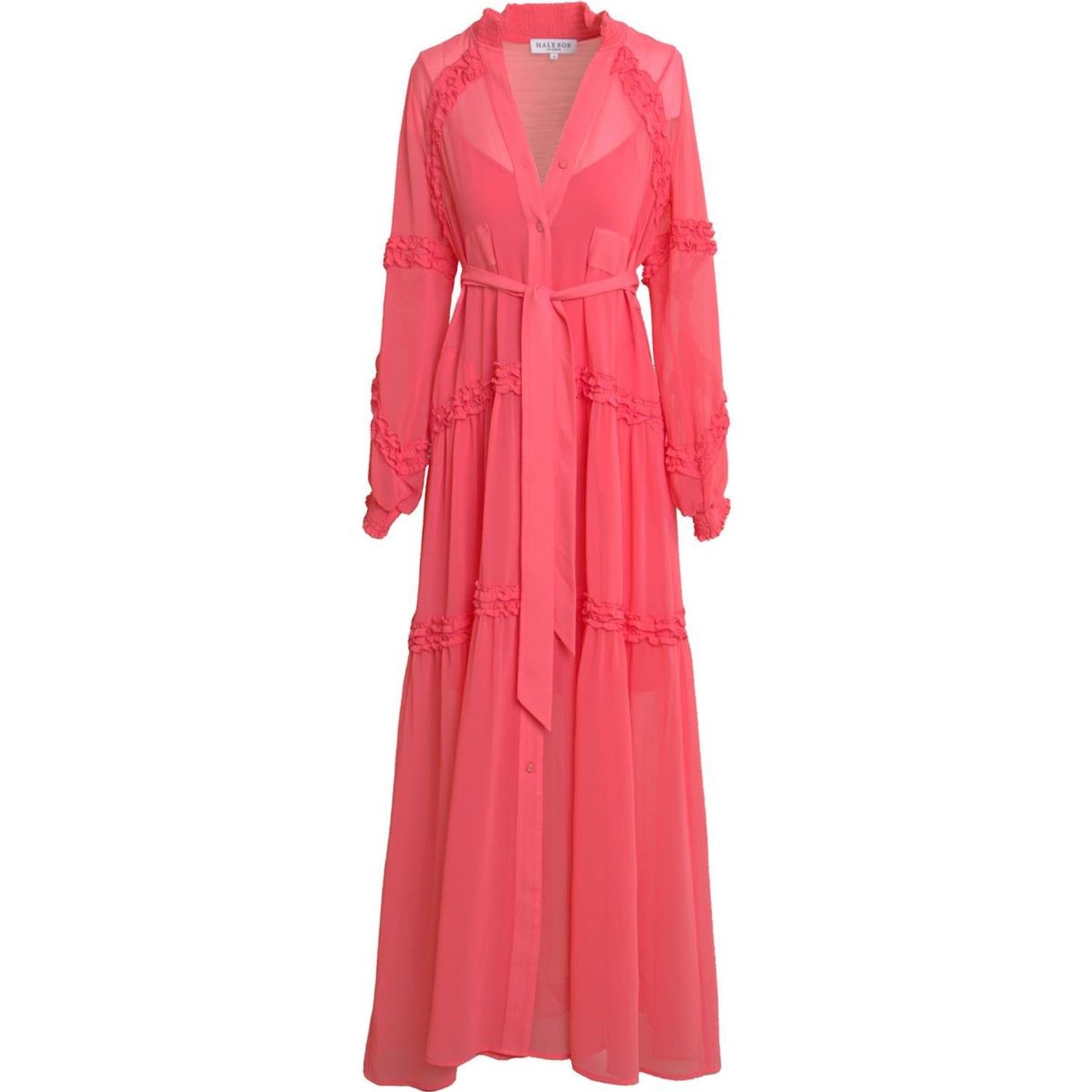 Meghan-kjolen i korall er et stilrent valg for enhver anledning. Laget av 100% polyester, gir denne kjolen både komfort og holdbarhet, noe som gjør den til et utmerket valg for hverdagsbruk.