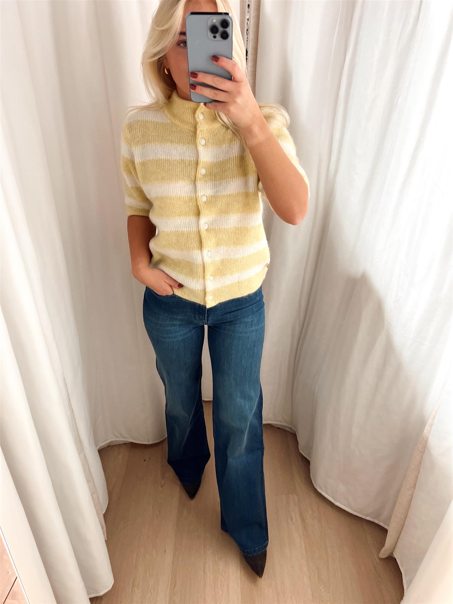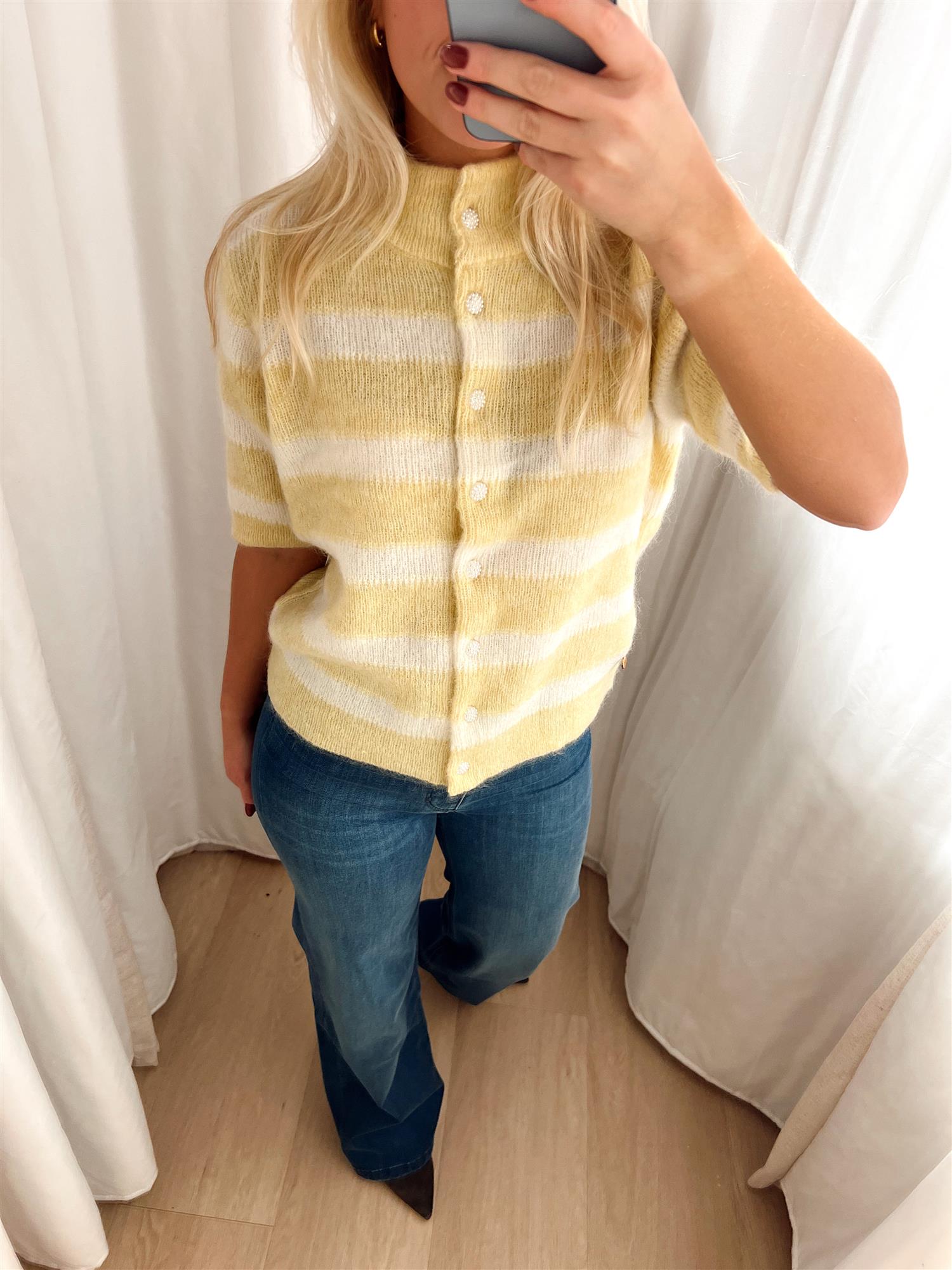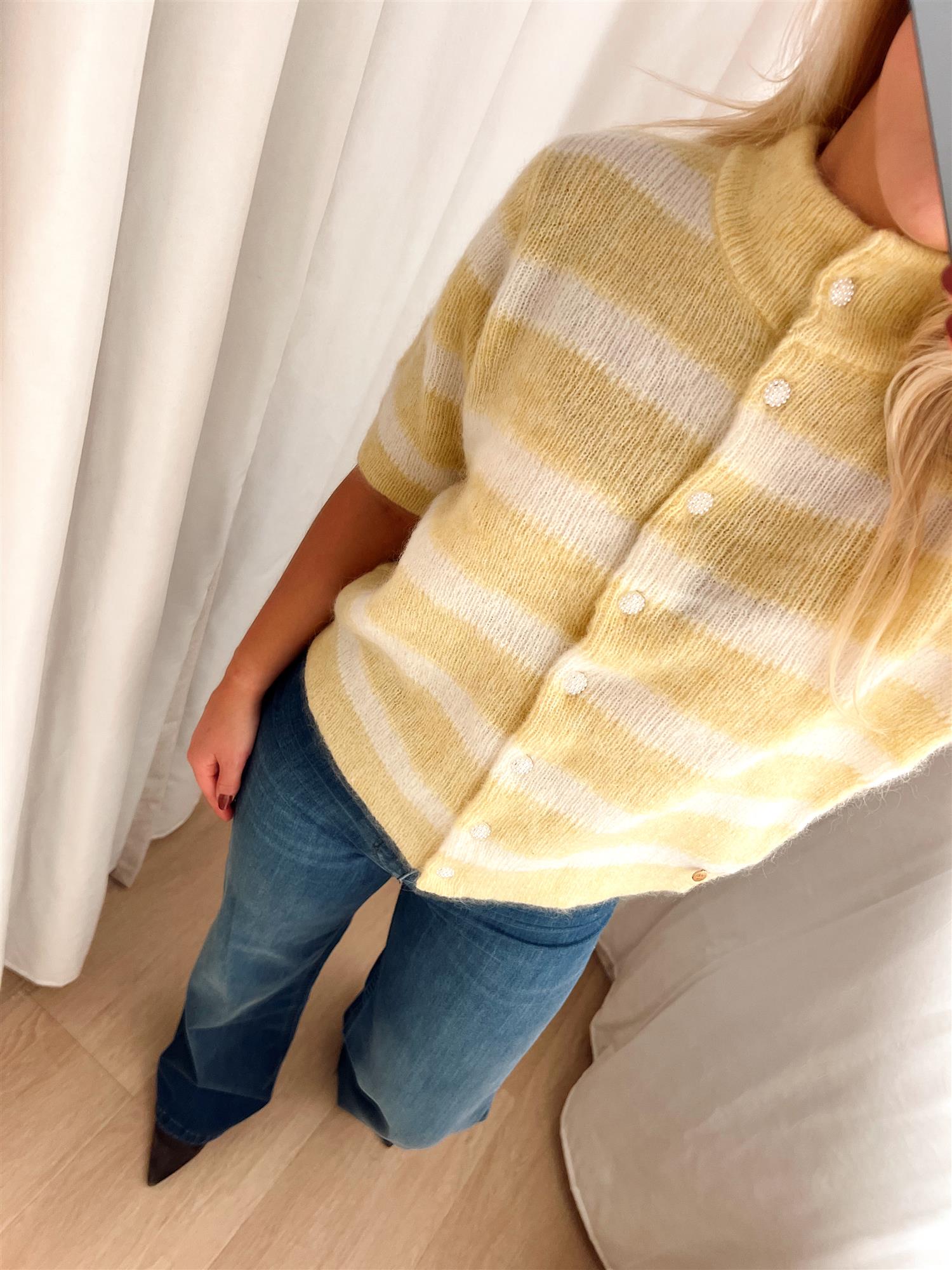 Rah Oslo - Short Sleeve Cardigan Stripe - Flaxen / Ivory