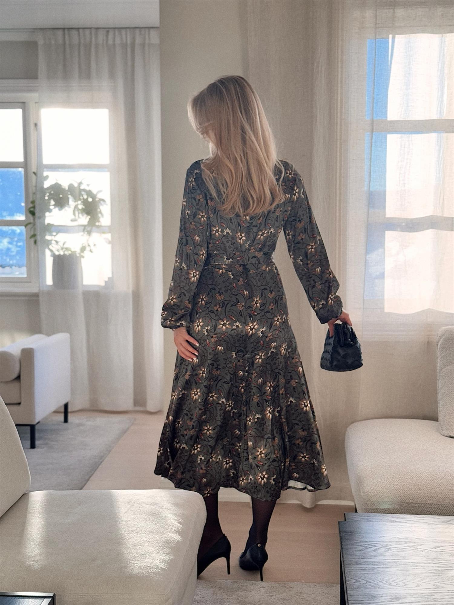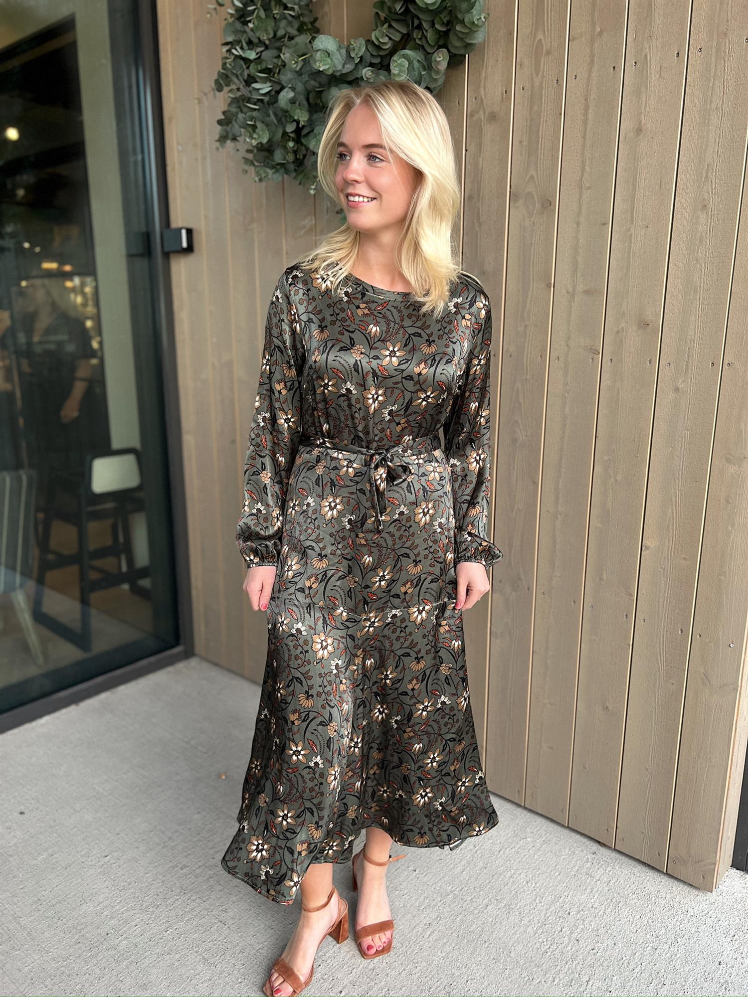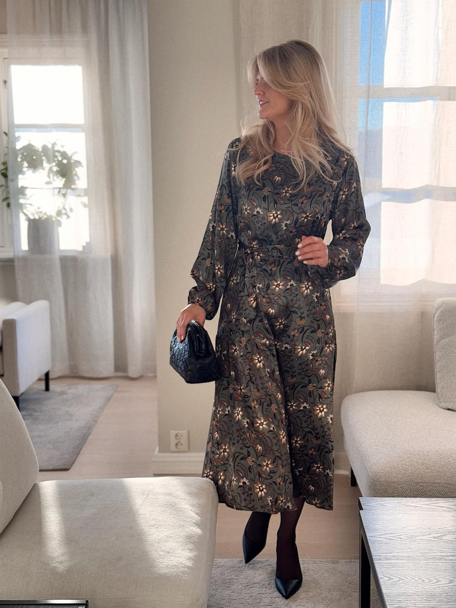 En ny kjole i 100 % viskose med sesongens vakreste print – perfekt balansert mellom det feminine og det avslappede.