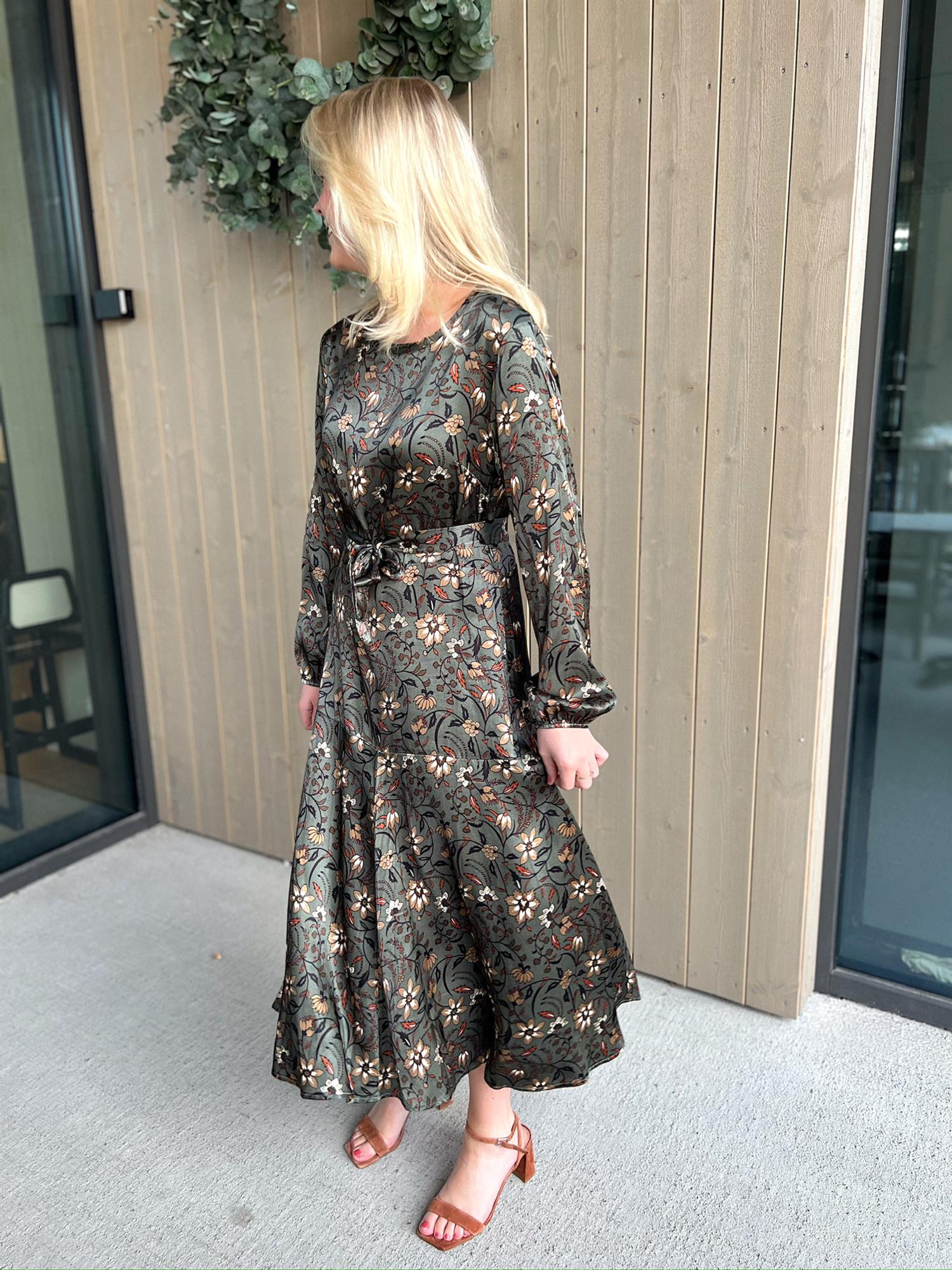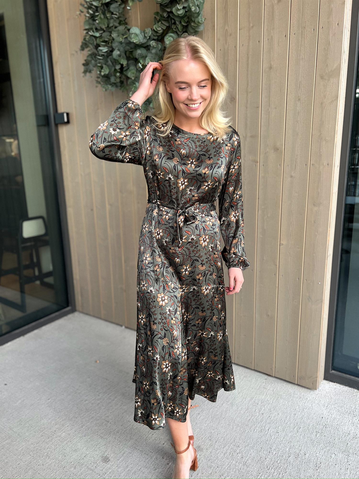 Rah Oslo - Midi Dress Long Sleeve - Green Midi Print Aw 2025
