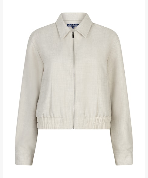 Bomber Jacket Linenlook er en lett og sofistikert jakke med strukturert linlook-finish. Den kombinerer klassisk bomberdesign med en elegant og moderne silhuett. Ribbestrikkede detaljer og gjennomarbeidede avslutninger gir et helhetlig uttrykk, mens den lette kvaliteten gjør den ideell til sesongens lag-på-lag styling.