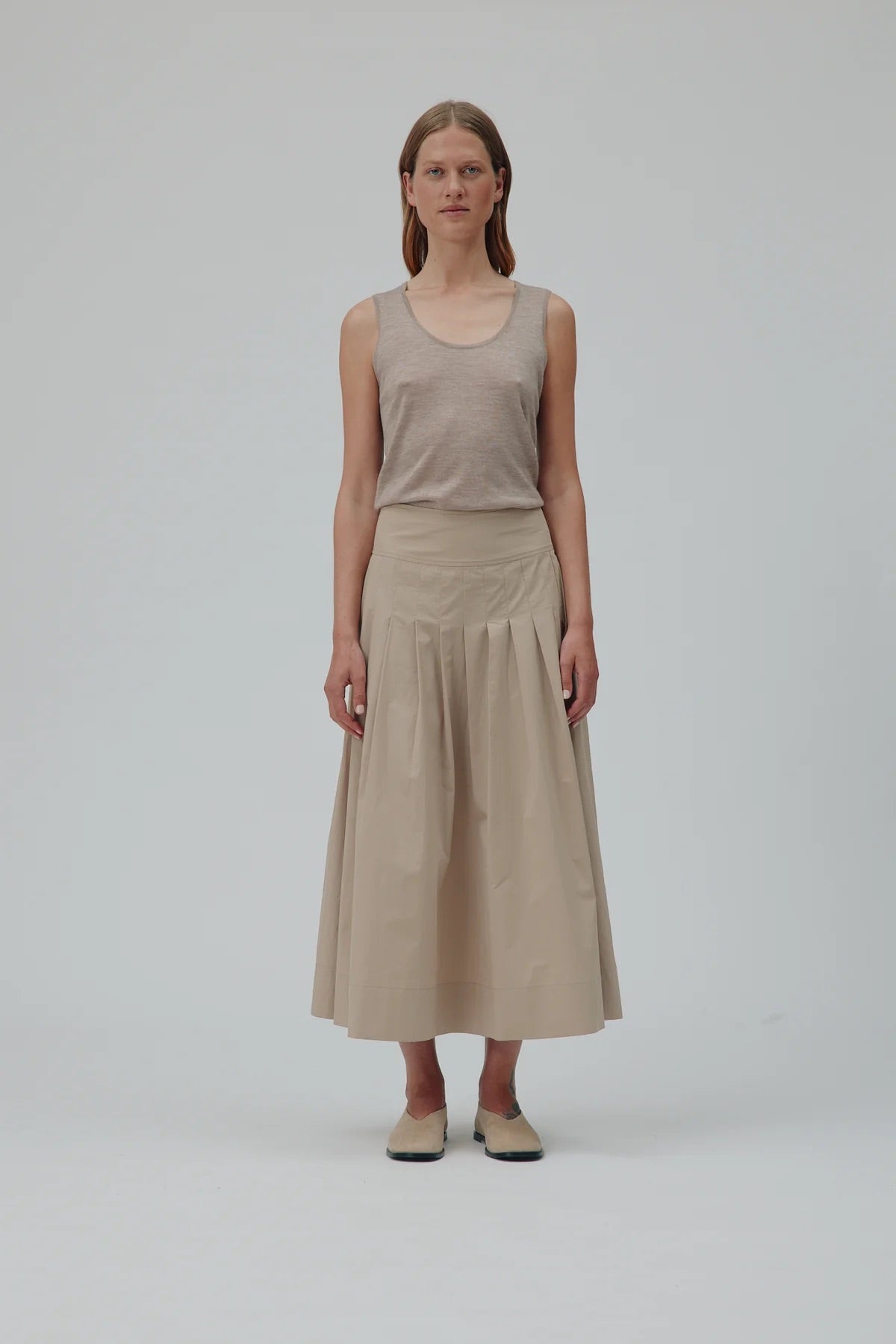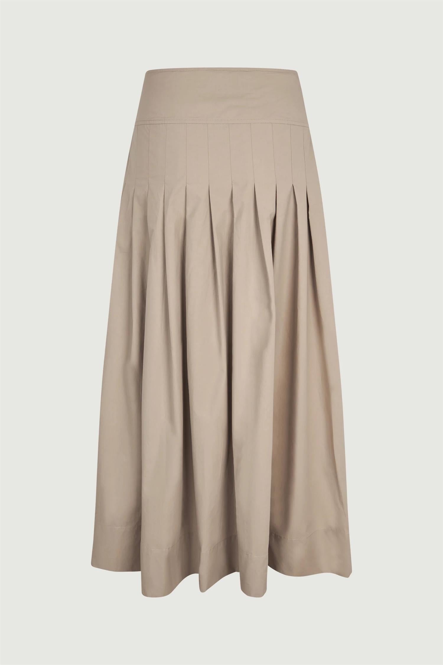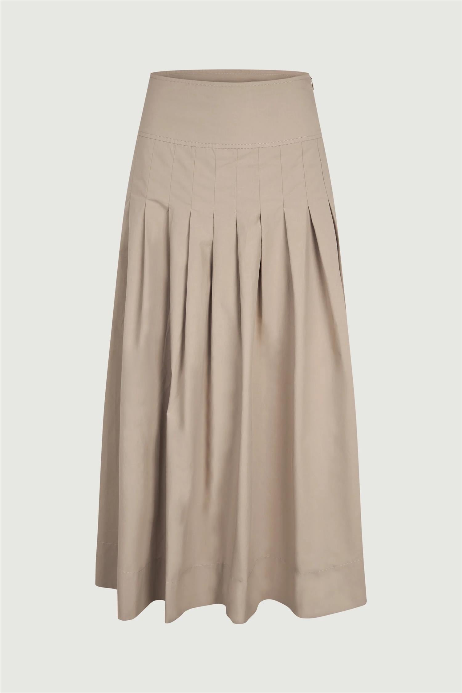 Rebecca er et plisséskjørt i midilengde, laget i 100 % crisp bomull som gir et lett og strukturert uttrykk. Skjørtet har en bred linning og en mykt fallende silhuett som skaper et elegant og uanstrengt helhetsinntrykk.