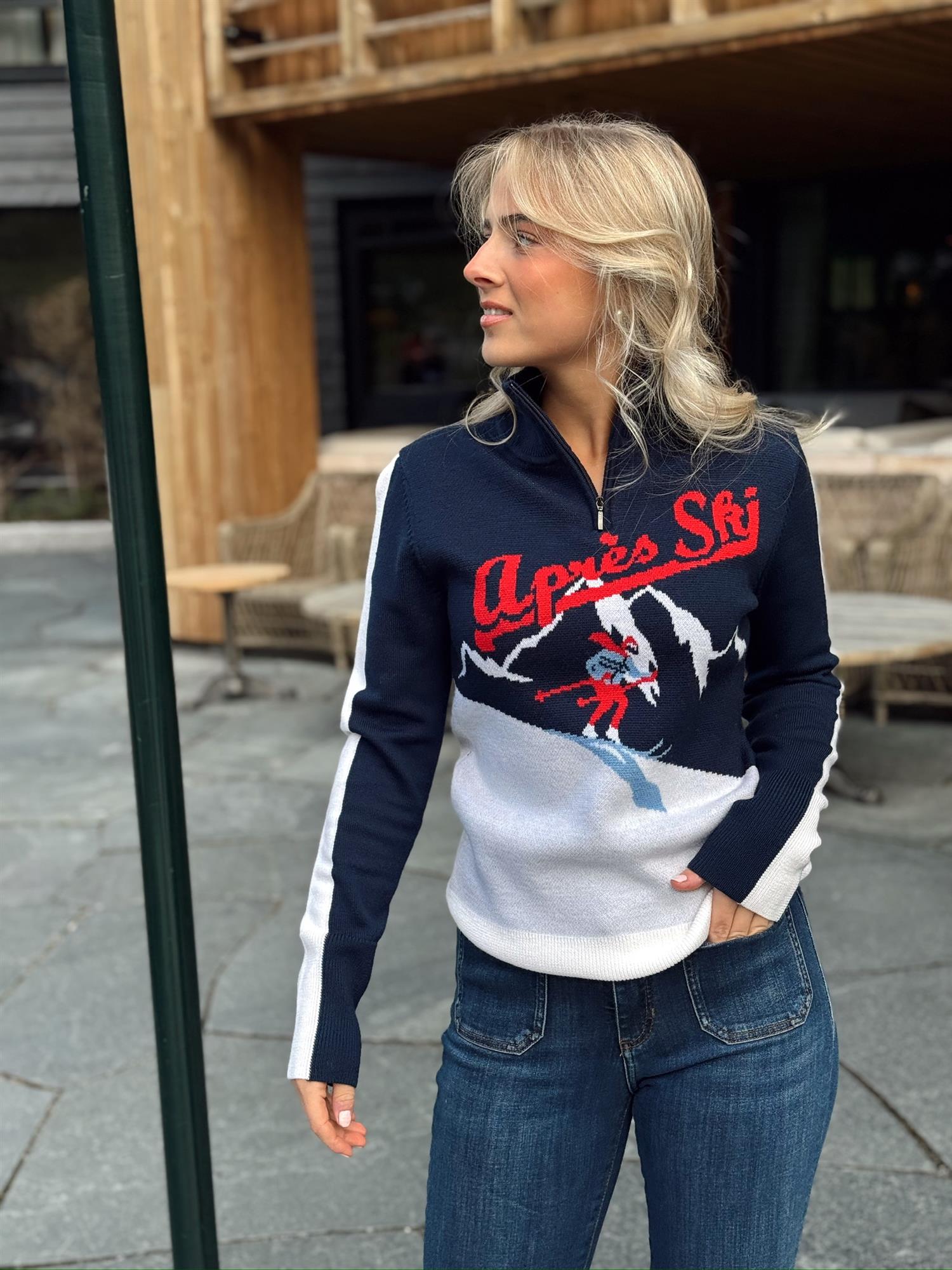 AfterSki ZipUp fra We Norwegians er laget for både skibakken og afterski. Genseren er strikket i vaskbar merinoull, som gjør den pustende, funksjonell og komfortabel. De lekne designene og unike mønstrene for hver fargevariant gir et retro og friskt preg – perfekt når du vil skille deg ut på afterski.