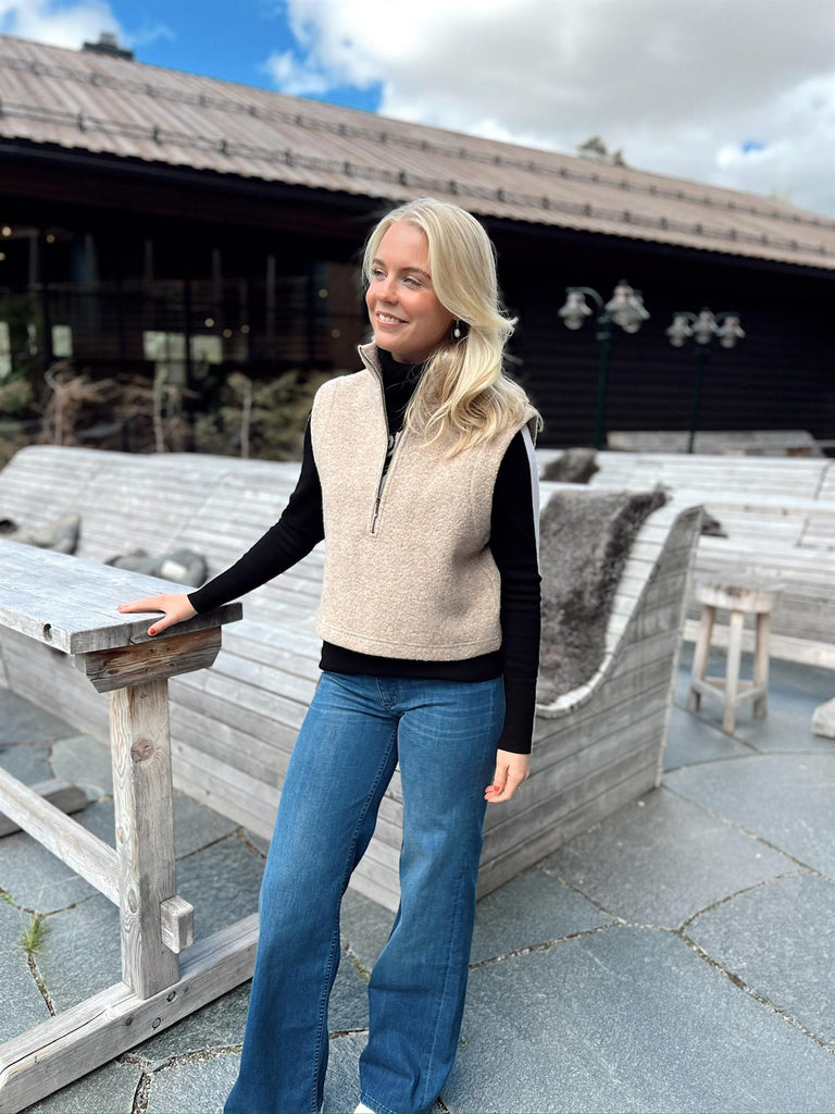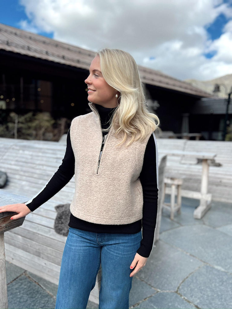 Alta Vest fra We Norwegians er et allsidig lag-plagg, perfekt for alt fra varme på skibakken til stilfullt hverdagsbruk. Laget i myk, filtete merinoull med en avslappet passform, og legger seg lett over dine favorittplagg for komfort og tidløs stil.