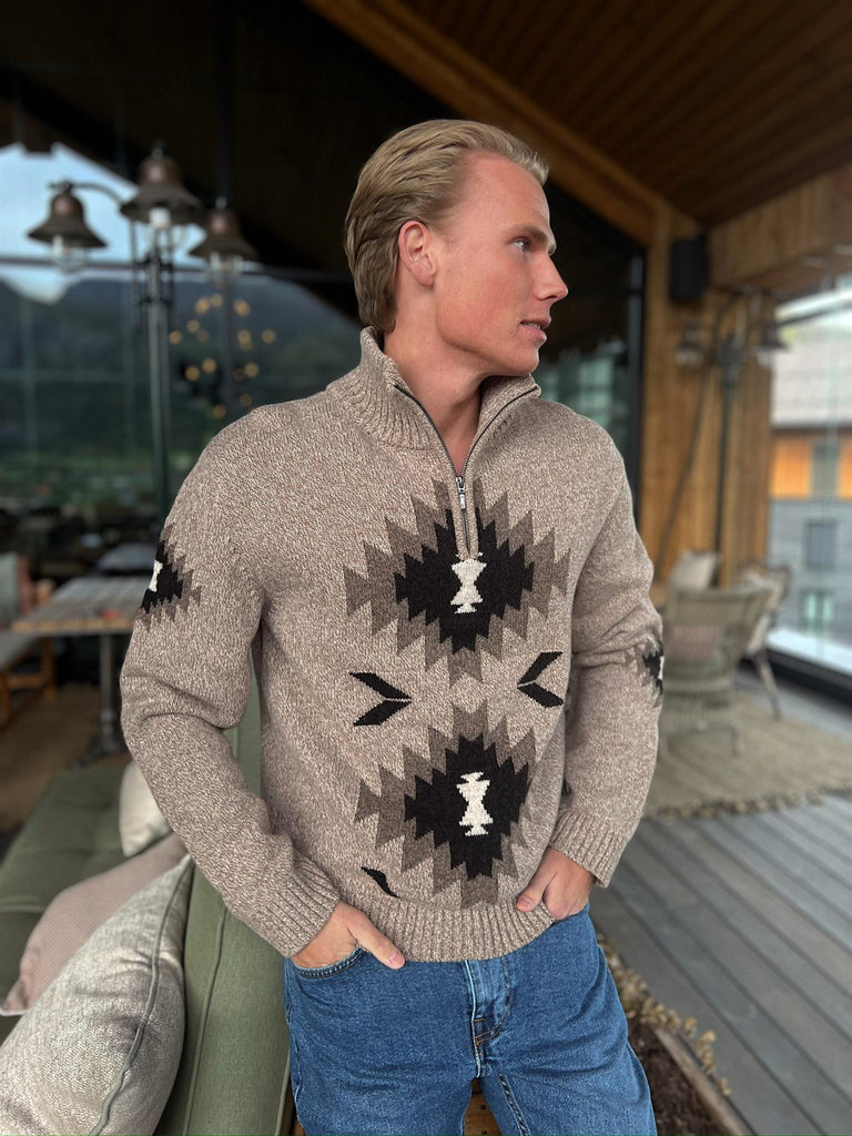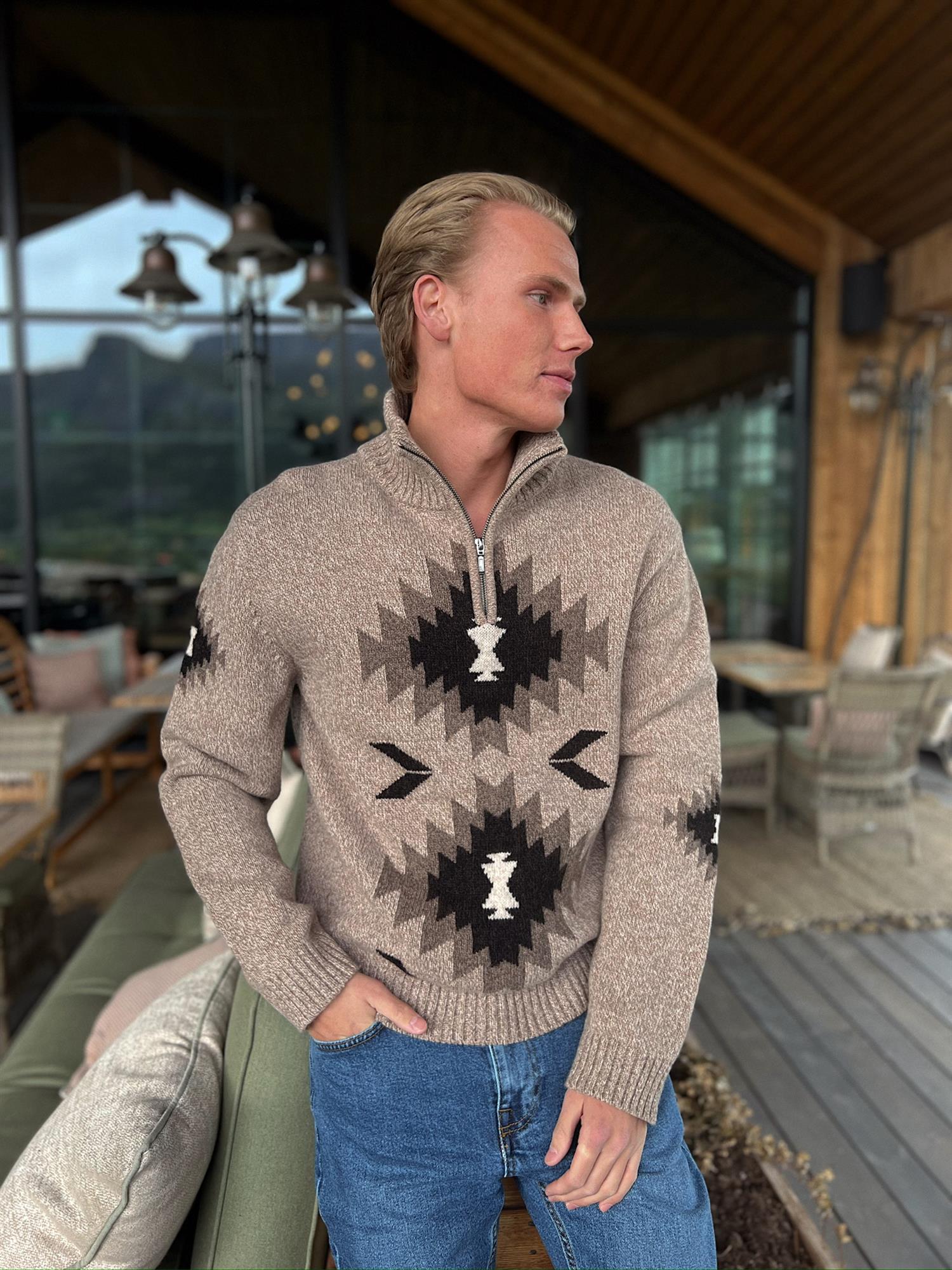 Hovden Sweater fra We Norwegians er inspirert av de intrikate treskjæringene i norsk samisk kultur, og er laget i myk, strikket ull – perfekt for kjølige høstdager og vinterettermiddager. Kvartglidelåsen foran er avsluttet med en dobbelribbet krage som gir både ekstra varme og et stilfullt preg.