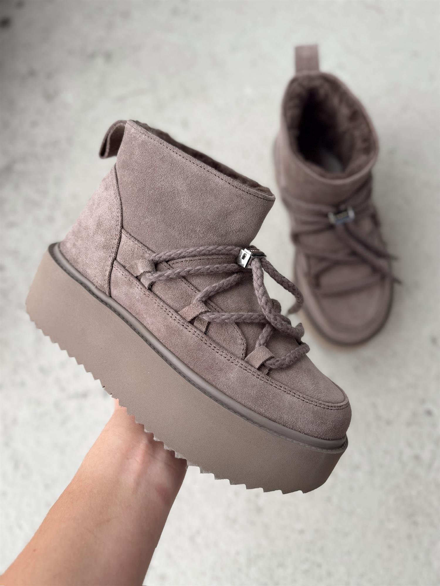 Inuikii vintersneakers kombinerer stil og funksjonalitet for en chic look som holder deg varm gjennom hele sesongen. Den allsidige designen gjør det enkelt å gå fra casual til elegant, og skoene er laget med førsteklasses materialer som sikrer både komfort og kvalitet i kaldt vær. Med robuste såler og en myk, varm innside er de perfekte for vinterbruk. Merk: Modellen er liten i størrelsen, så vi anbefaler å gå opp en størrelse for optimal passform.