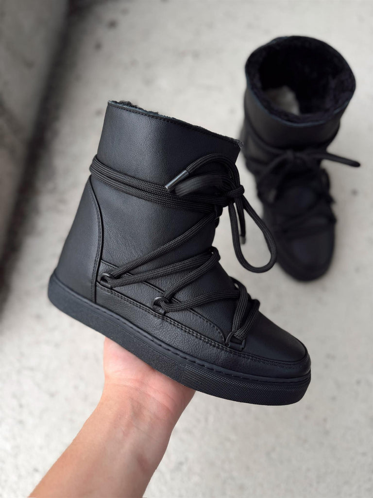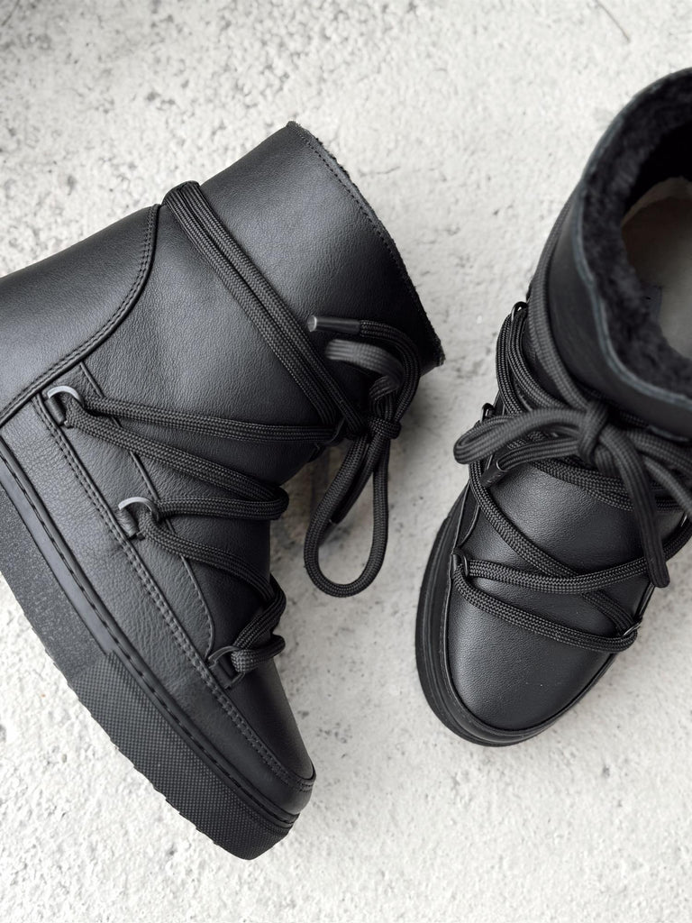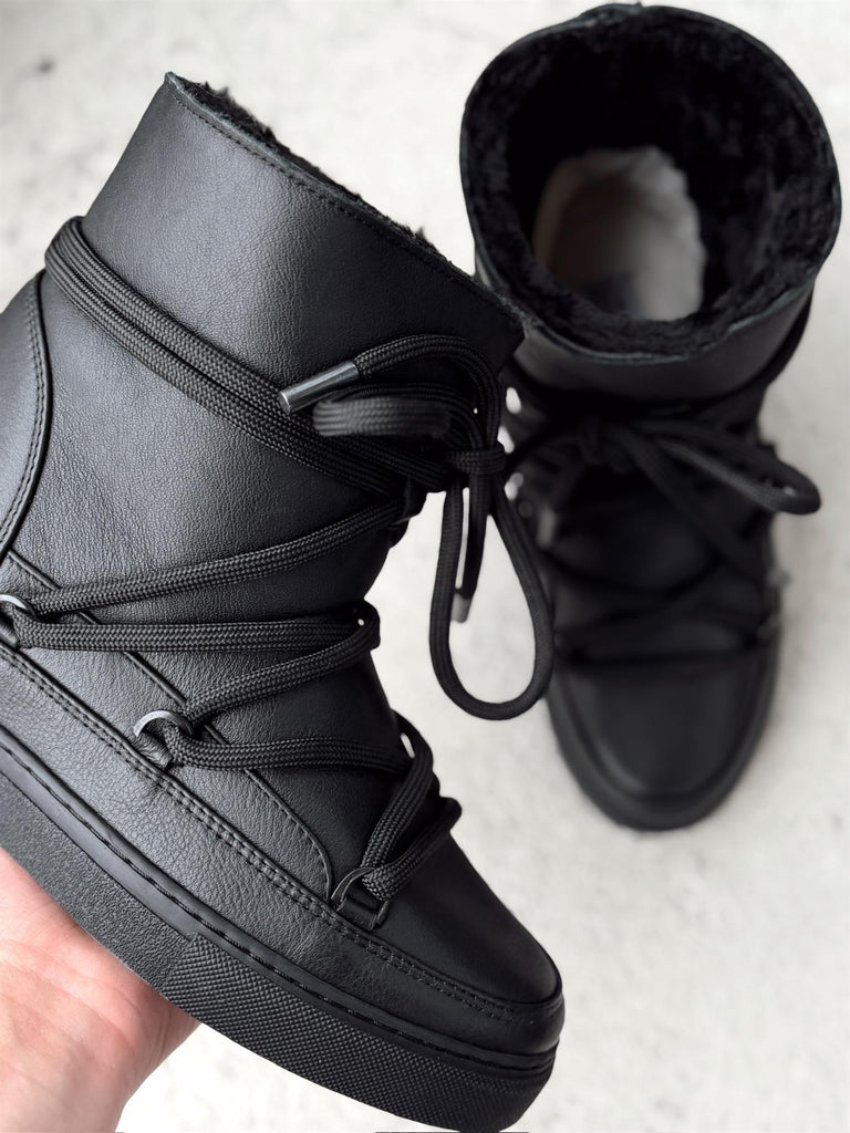 Funksjonalitet og tidløs stil smelter sammen i Classic Wedge Leather fra INUIKII! Denne varianten er laget i glatt, sort skinn som gir et sofistikert og minimalistisk uttrykk, perfekt både til hverdags og mer pyntede anledninger. Den ikoniske kilemodellen på 4 cm gir en komfortabel løft, samtidig som den holder føttene varme hele vinteren. En ekte klassiker som kombinerer mote, kvalitet og funksjonalitet – designet for å vare i mange sesonger.