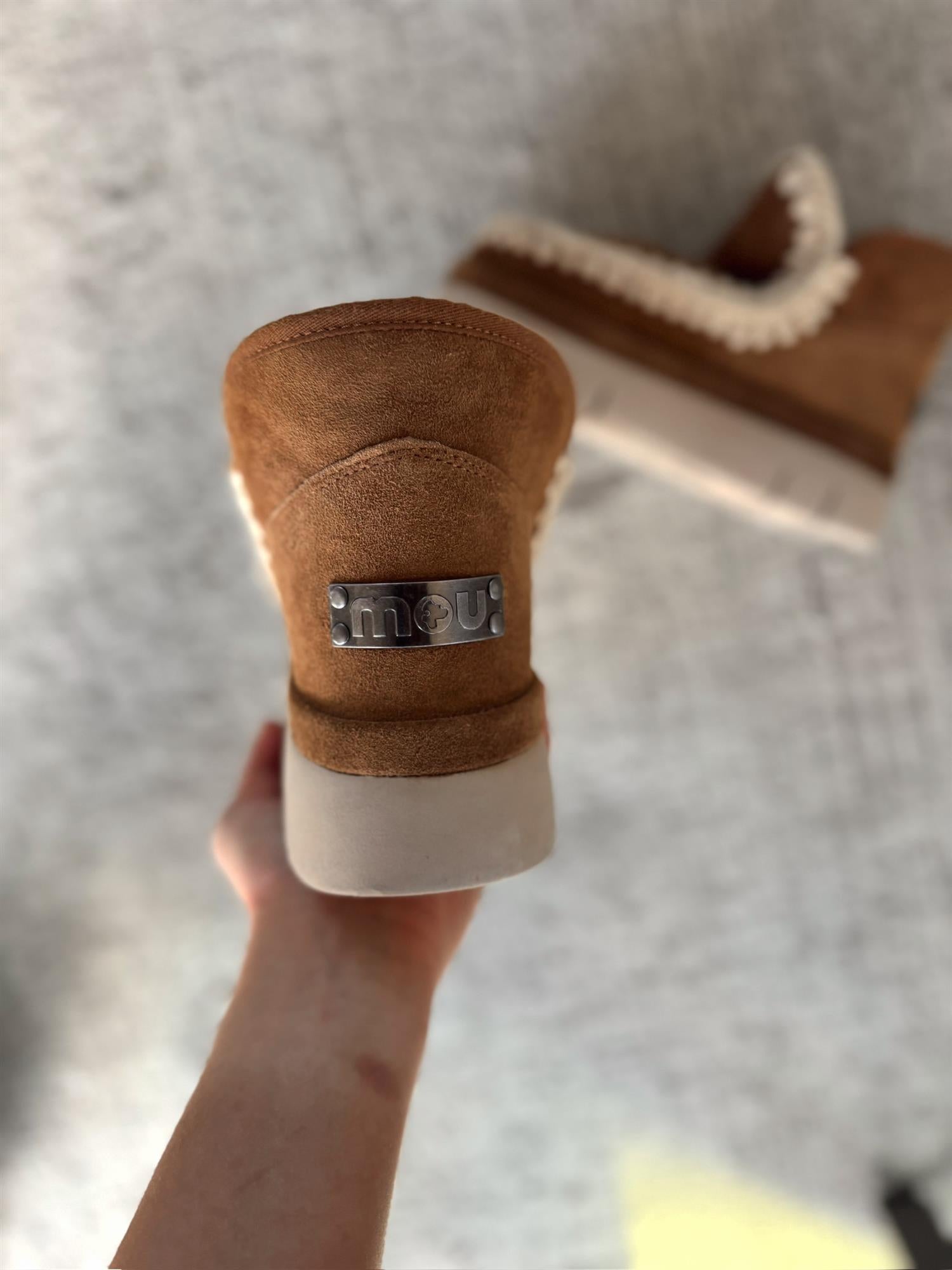 MOU-produkter er laget av nøye utvalgte materialer og bør behandles med omtanke for å bevare kvaliteten. Unngå direkte sollys, varme og regn. Dersom skoene blir våte, tørk dem forsiktig med en myk klut. Fyll dem med papir for å bevare formen og absorbere fuktighet, og oppbevar dem gjerne i en flanellpose. Rengjøres med en myk, tørr klut.