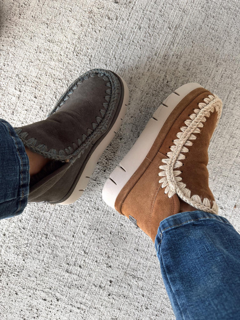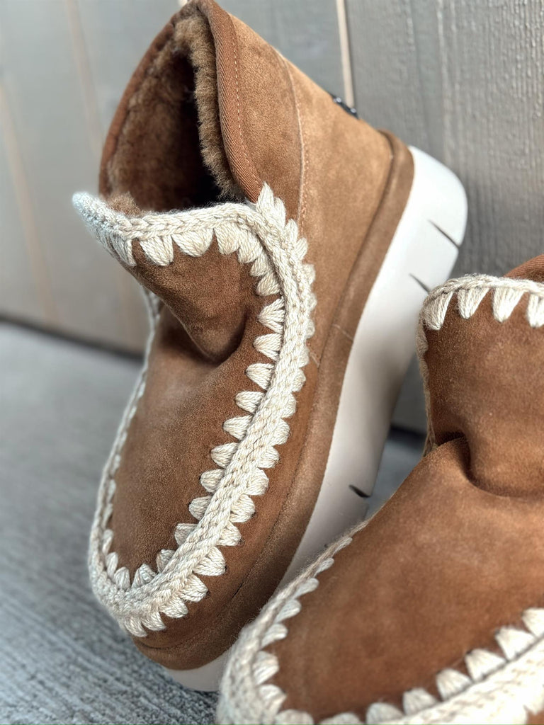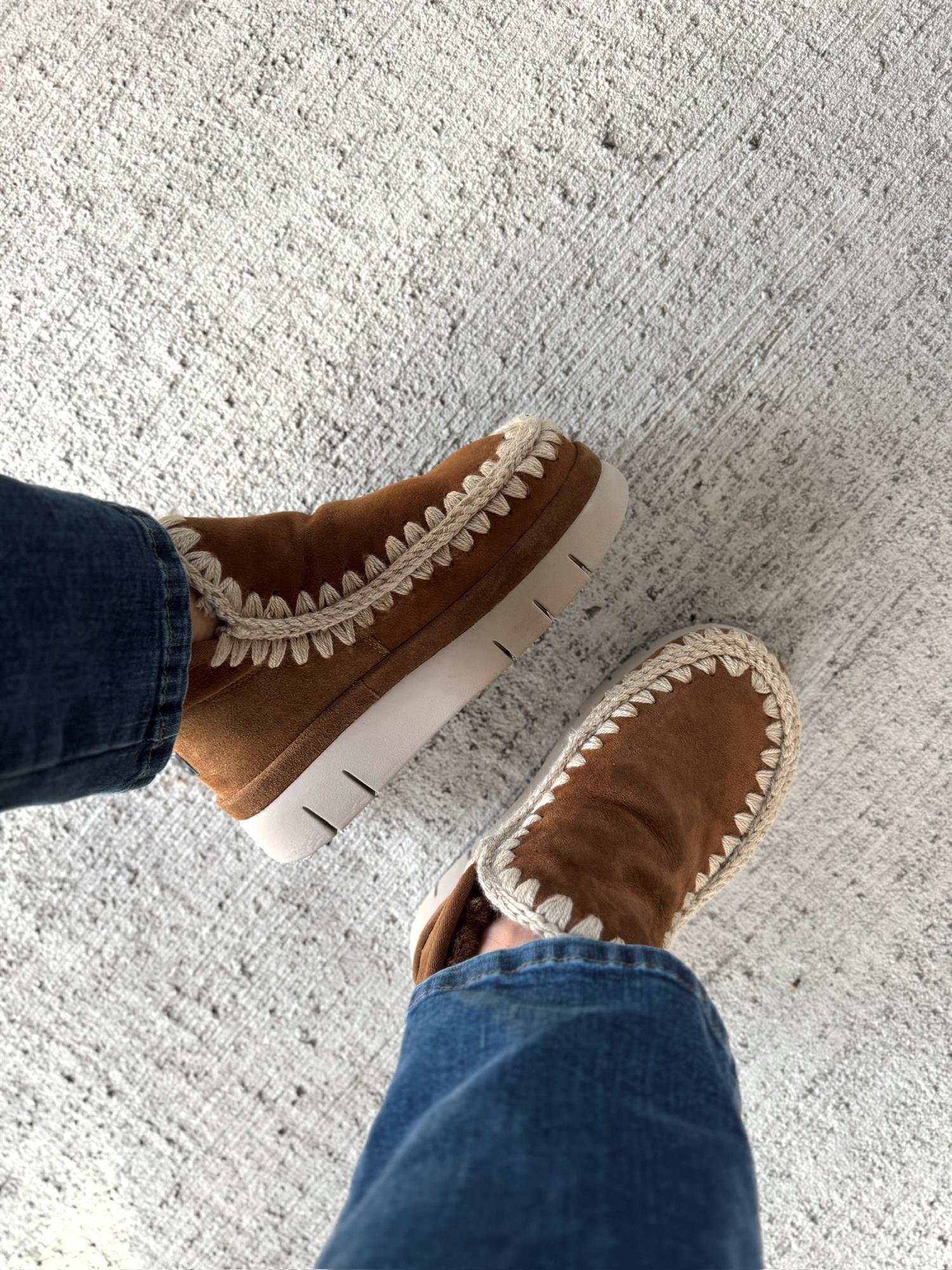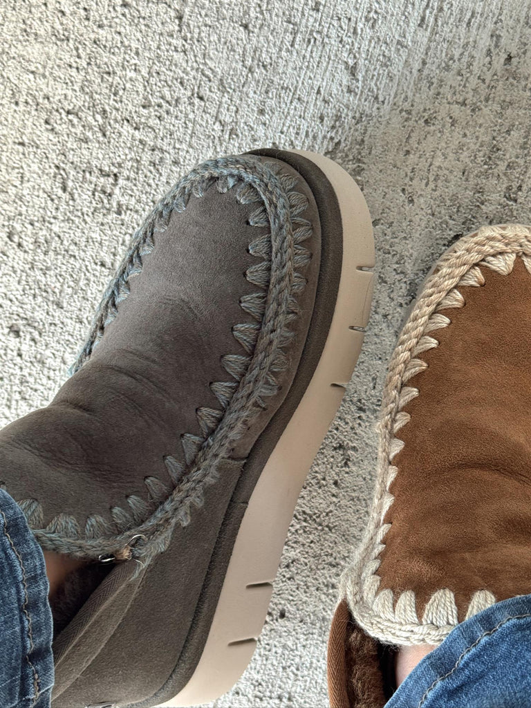 Nyheten Bounce Welt Suede Sneaker fra MOU for FW25 kombinerer eksklusivt håndverk med komfort og moderne design. Sneakeren er håndlaget i varmt, doblet saueskinn og dekorert med MOUs ikoniske hekledetaljer i ull og metallogo for et luksuriøst uttrykk. Den myke innersålen i saueskinn og den fleksible, lette EVA-sålen gir deg en utrolig behagelig følelse gjennom hele dagen.
