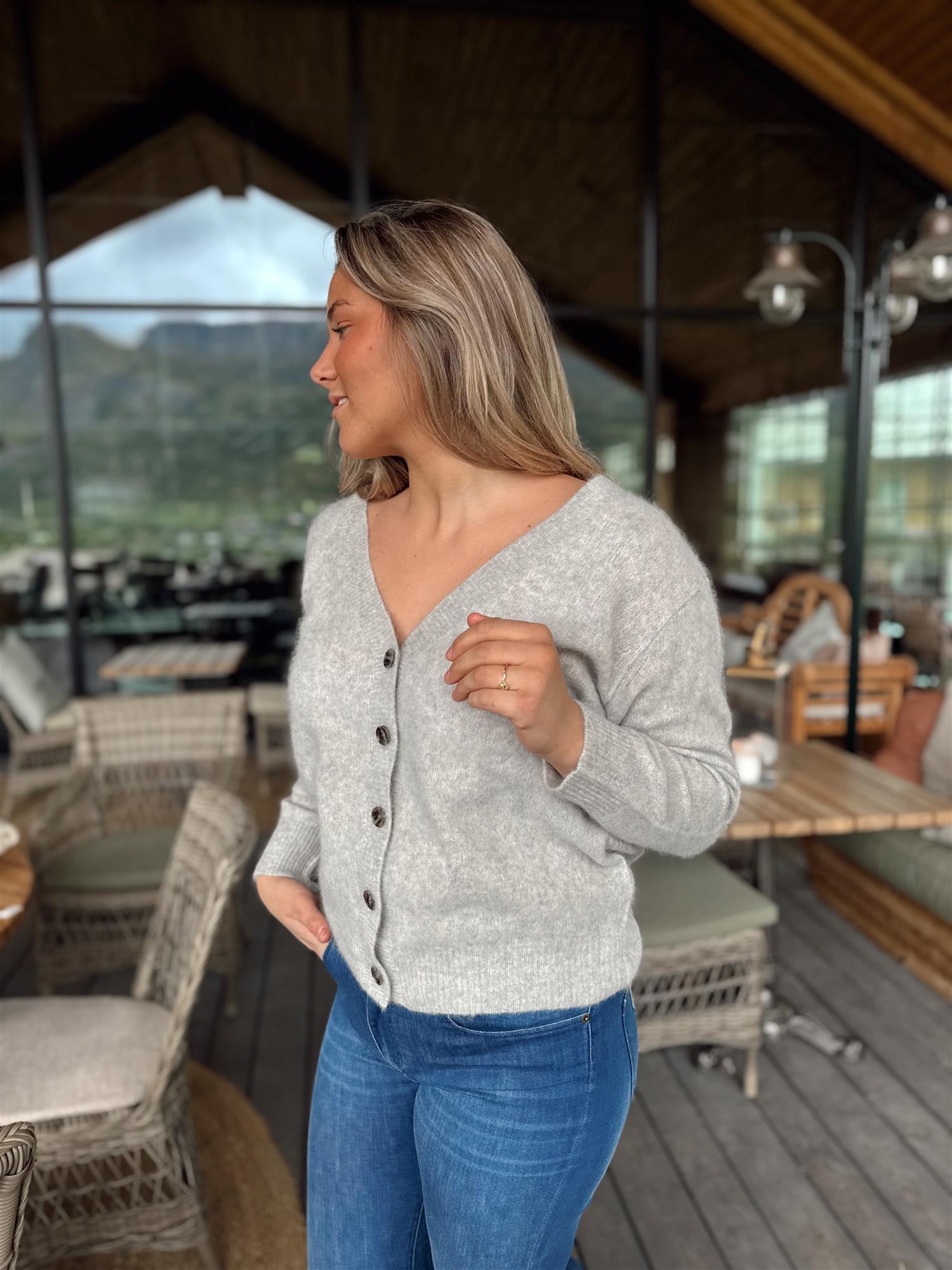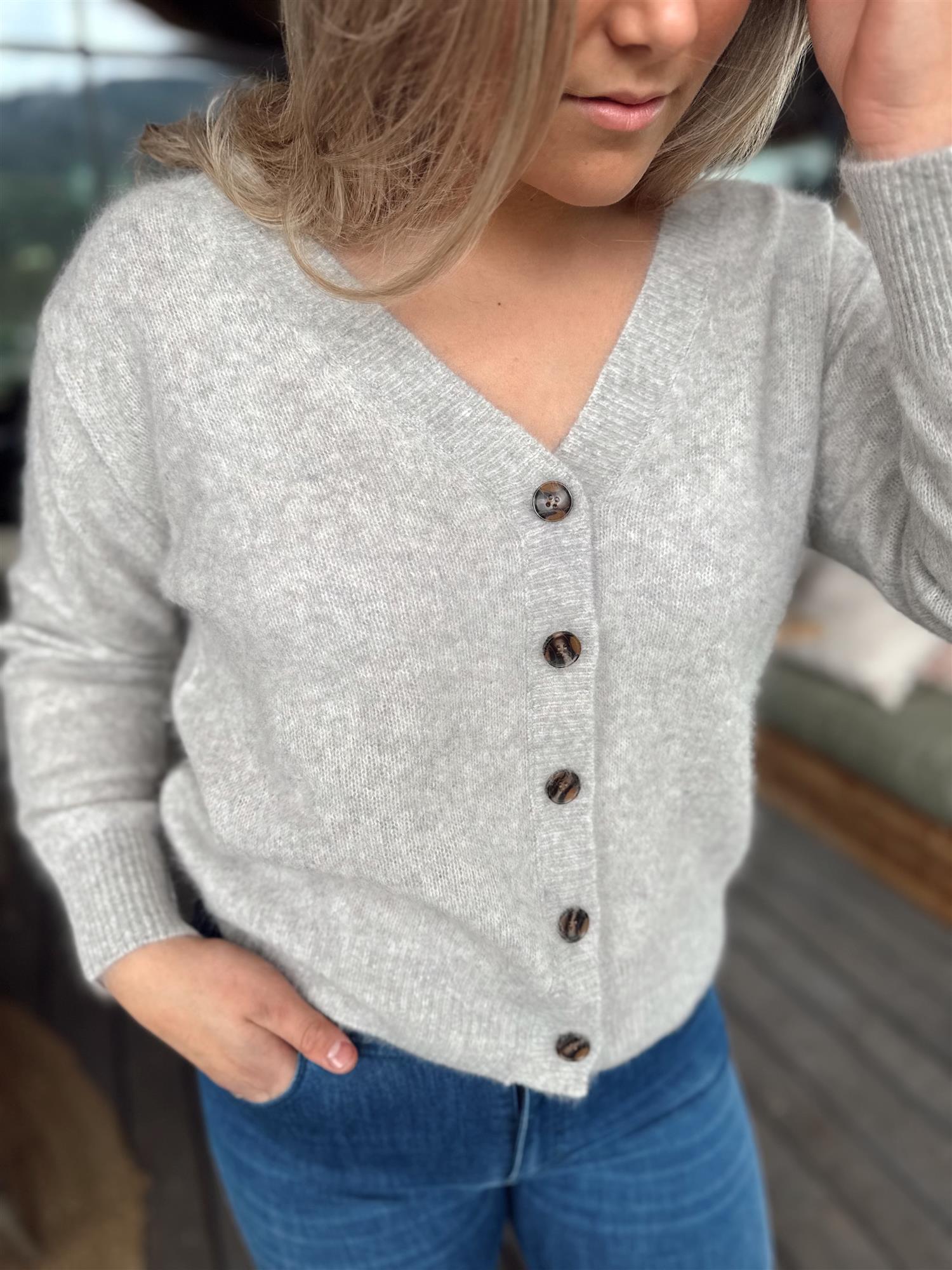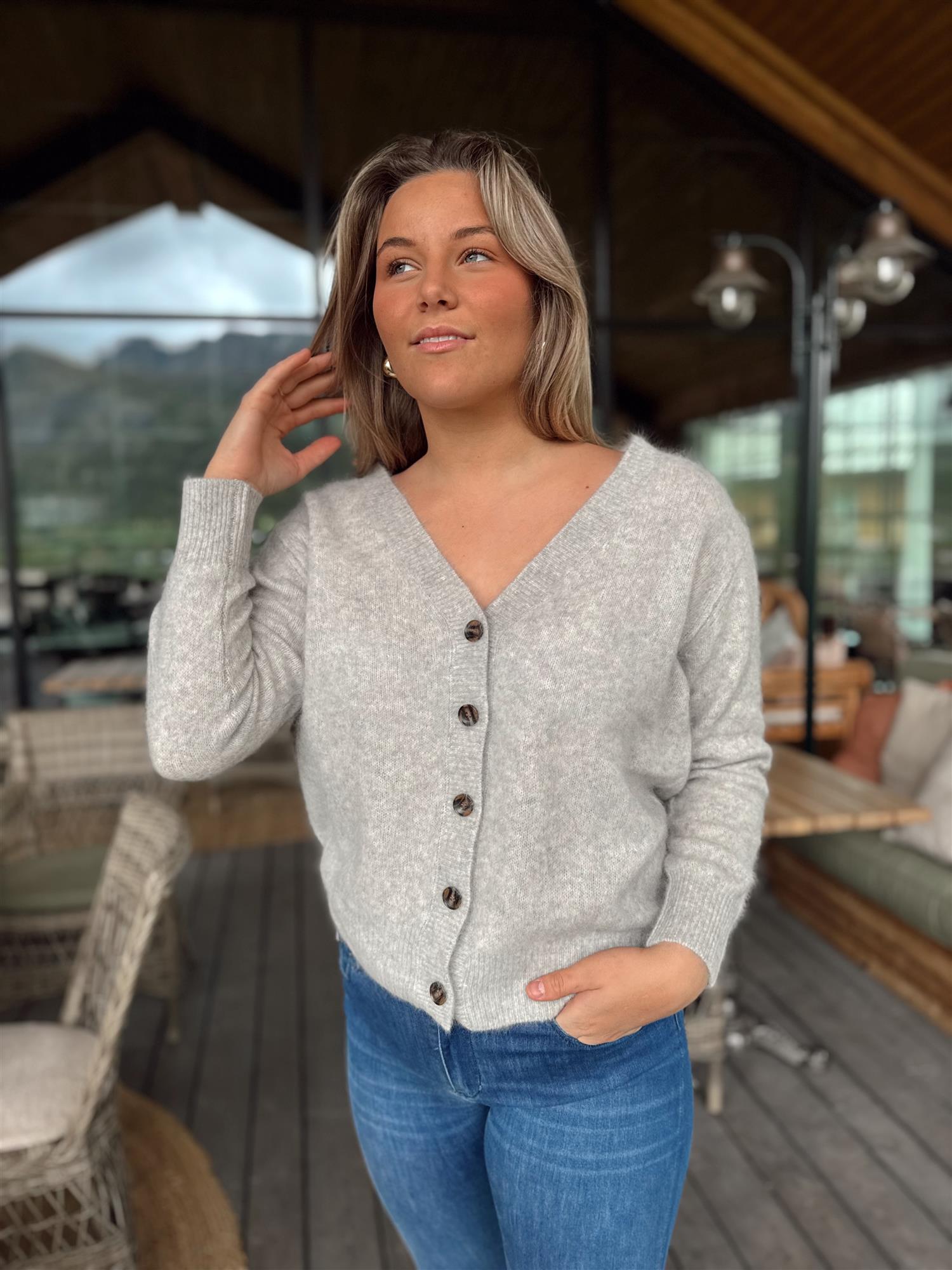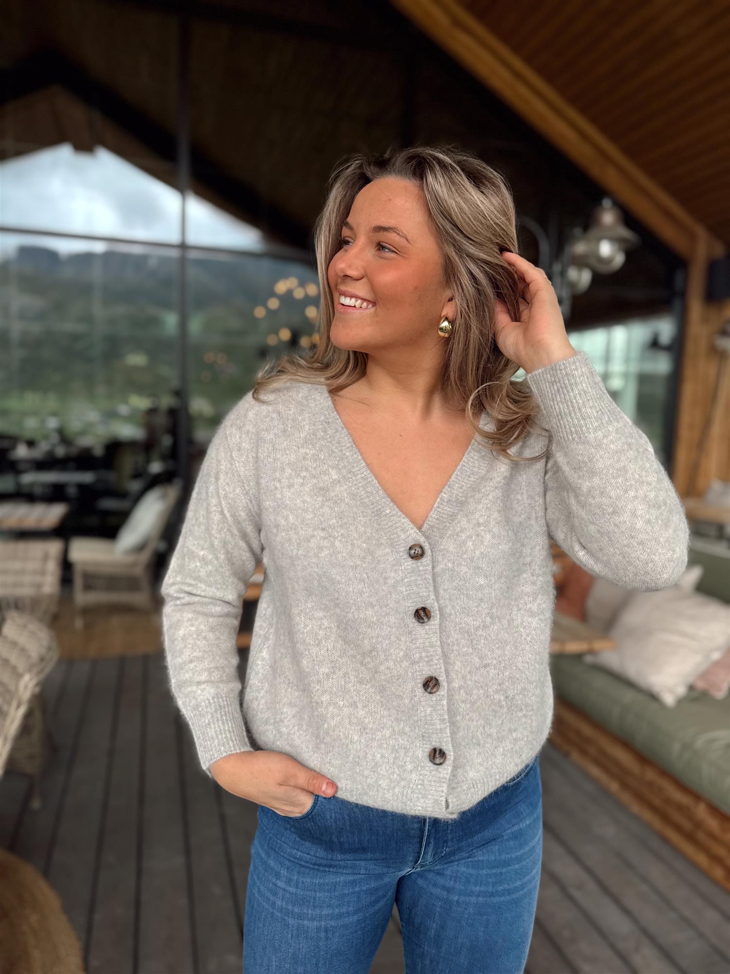 Alabama er en luksuriøst myk cardigan laget av 100% raccoon ull, perfekt for både komfort og stil. Den har en flatterende V-hals, ribbestrikkede mansjetter og kant, samt en løs passform på kroppen med tettsittende ermer for en balansert silhuett. Dette gjør den til et elegant og allsidig plagg som passer like godt til hverdags som til mer pyntede anledninger.