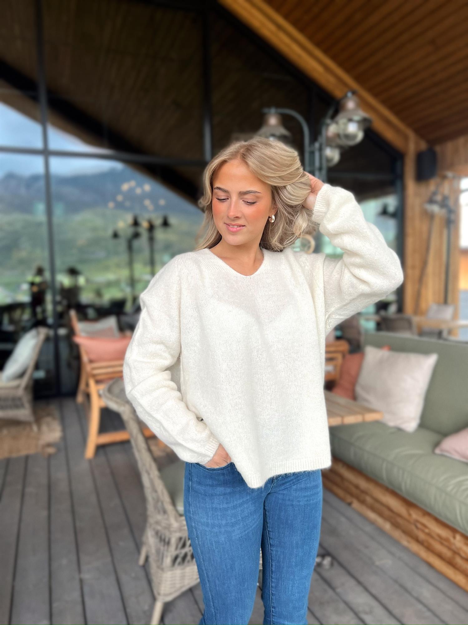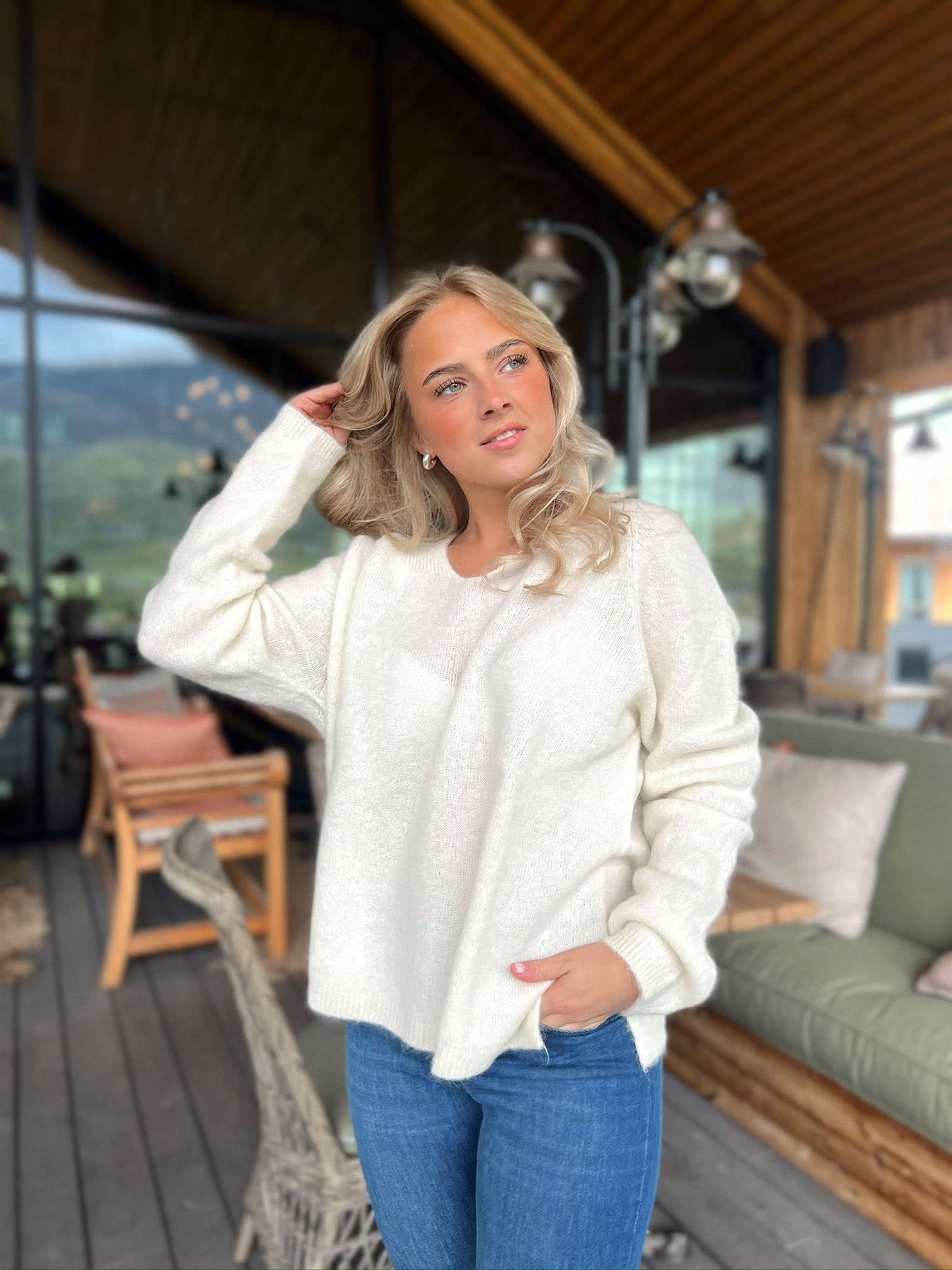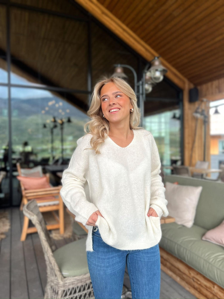 Ny klassisk rett genser med v-hals utrigning i en deilig kvalitet i en miks av alpakka og ull.