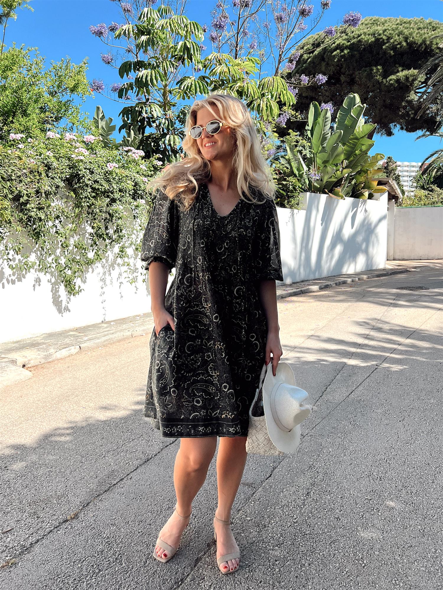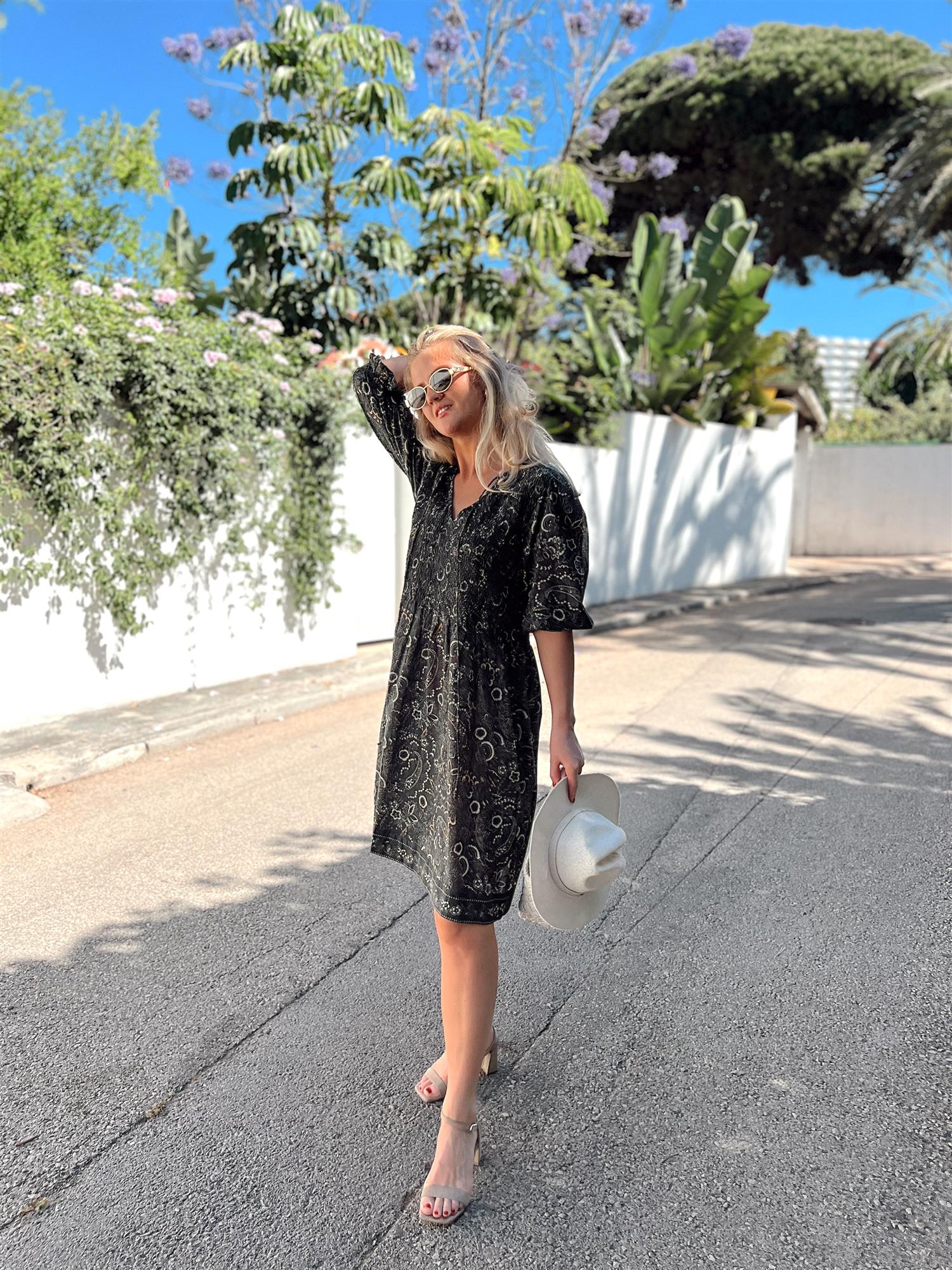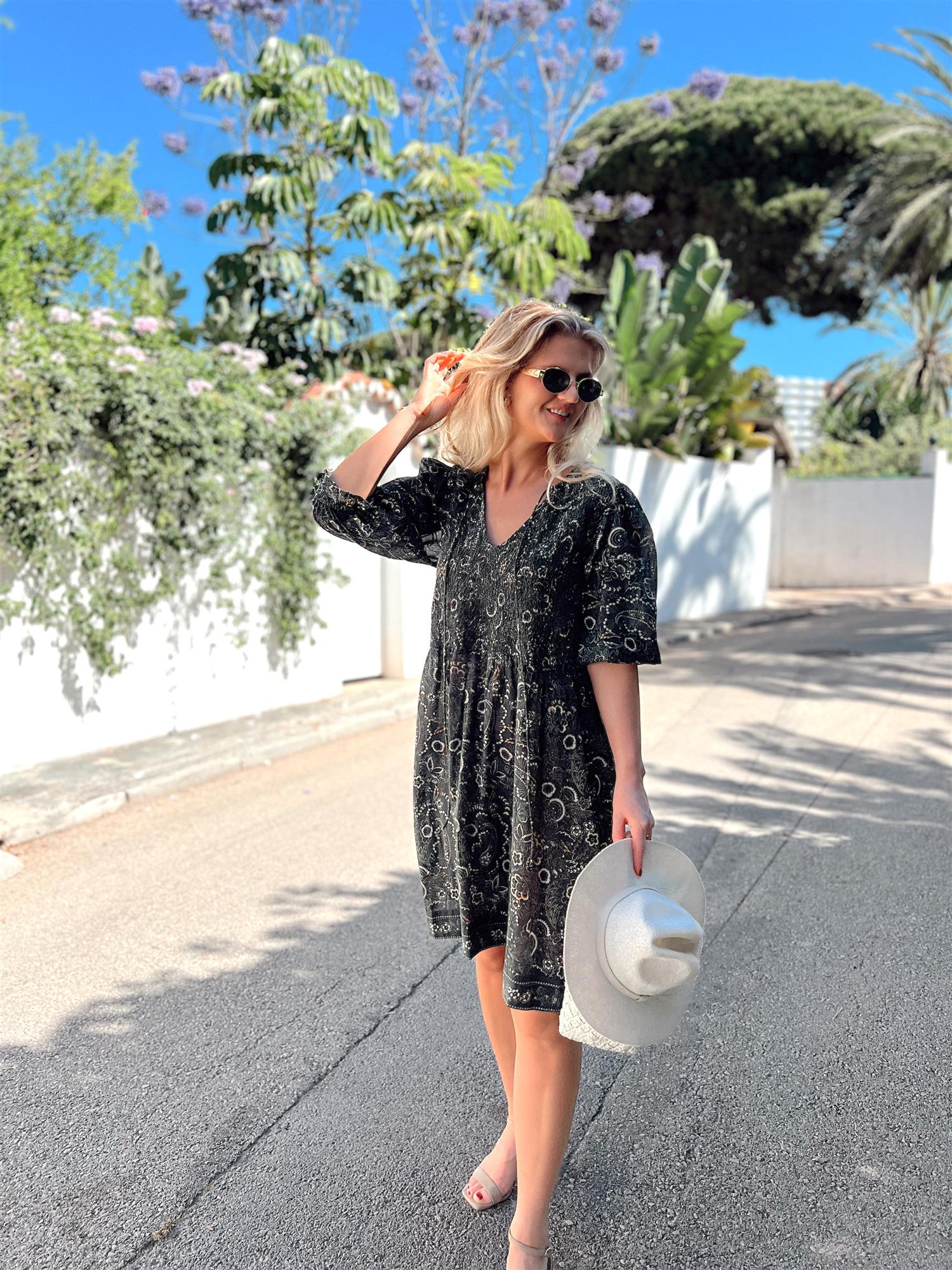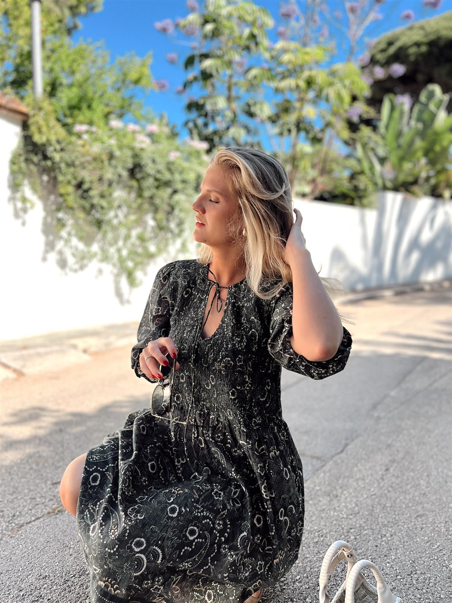 Ella Short Dress er en sommerfavoritt du vil elske! Laget i 100 % printet bomull, føles den lett og luftig mot huden – perfekt for varme dager. Den feminine fasongen med smock-detaljer i overdelen gir en flatterende passform, mens de korte, voluminøse ermene tilfører et romantisk preg. Med sitt fargerike mønster og lekne design passer denne kjolen like godt til hverdags som til sommerens festligheter.