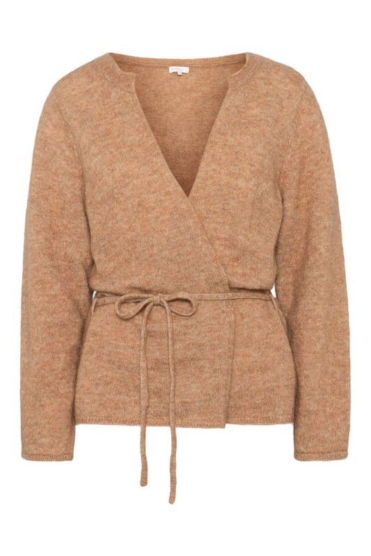 Cardiganen har en rett fasong med belte i midjen slik at du kan justere etter ønske. V-hals utrigning og lange armer med litt volum nederst.