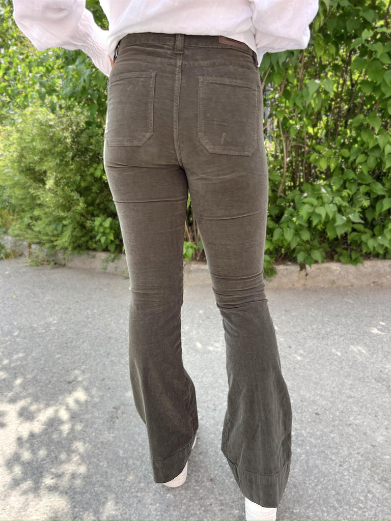 Buksen har normal livhøyde og en flatterende passform, med lett stretch for ekstra komfort. Den brede kanten nederst på bena tilfører en moderne vri som skiller seg ut på en subtil måte.