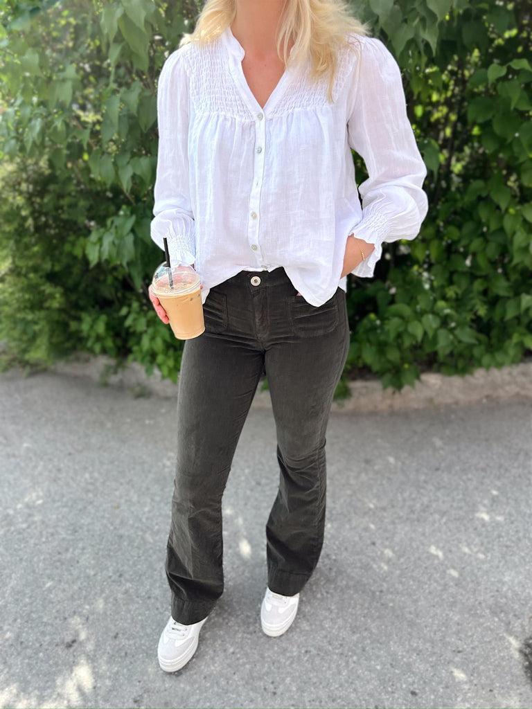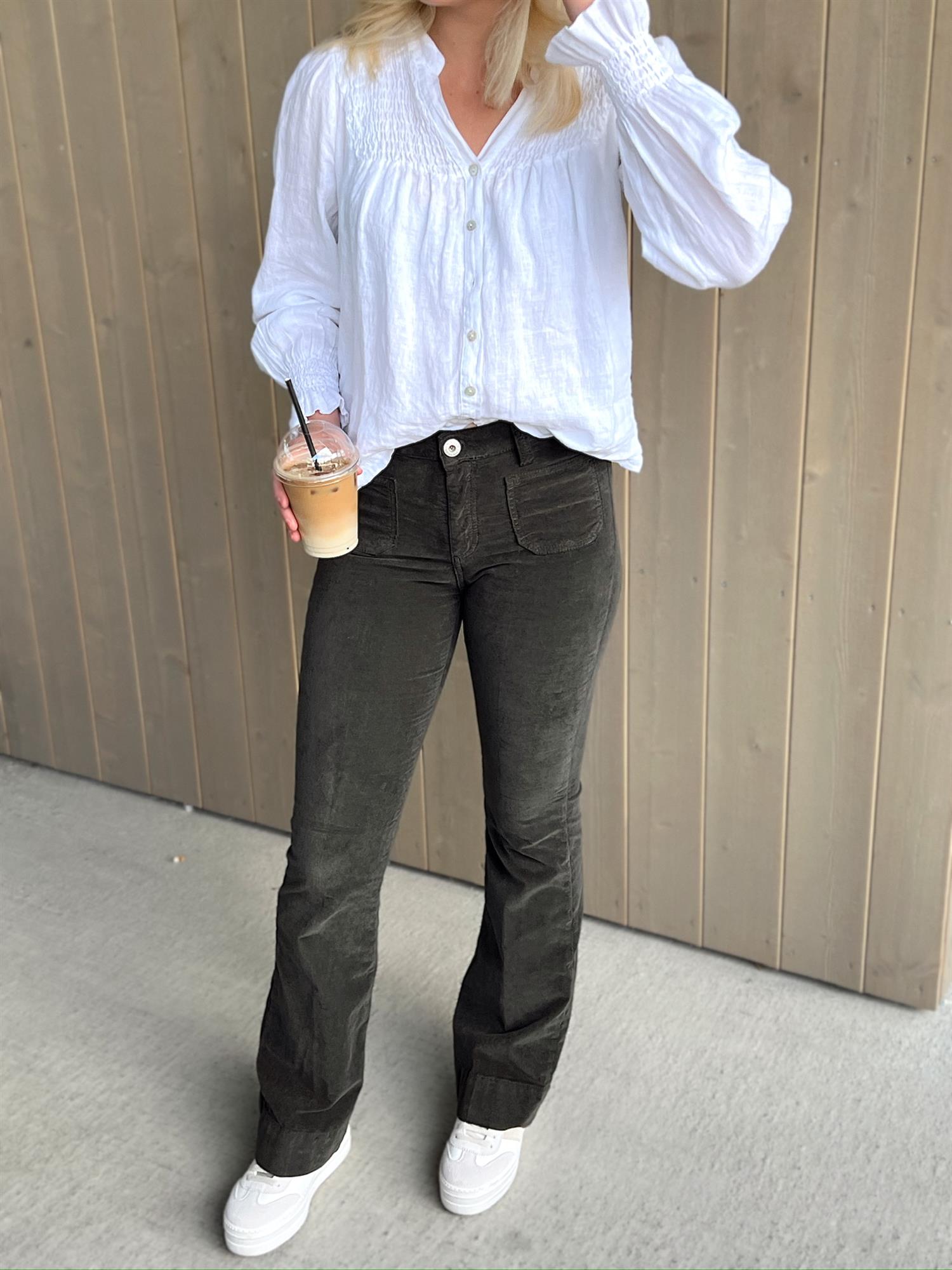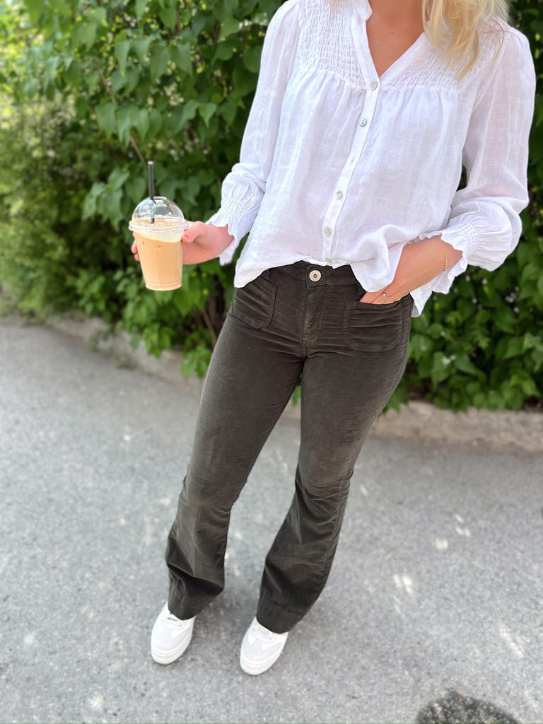 Gi garderoben din et løft med Jim fra Denim Studio – en elegant bukse i en dyp grønnfarge som skaper et sofistikert uttrykk. Den myke cordkvaliteten gir et eksklusivt preg, mens stilige frontlommer, baklommer og beltehemper gjør den både praktisk og gjennomført.