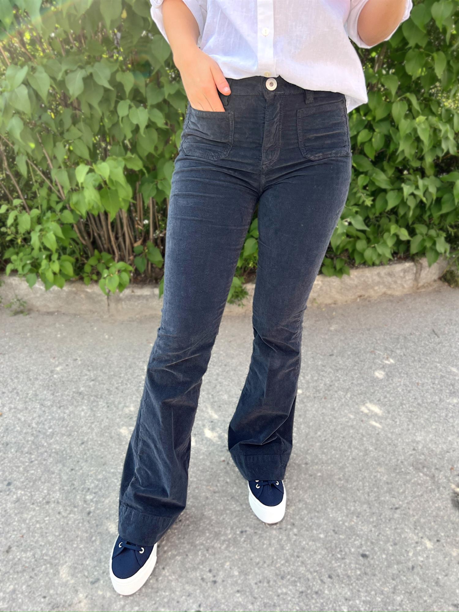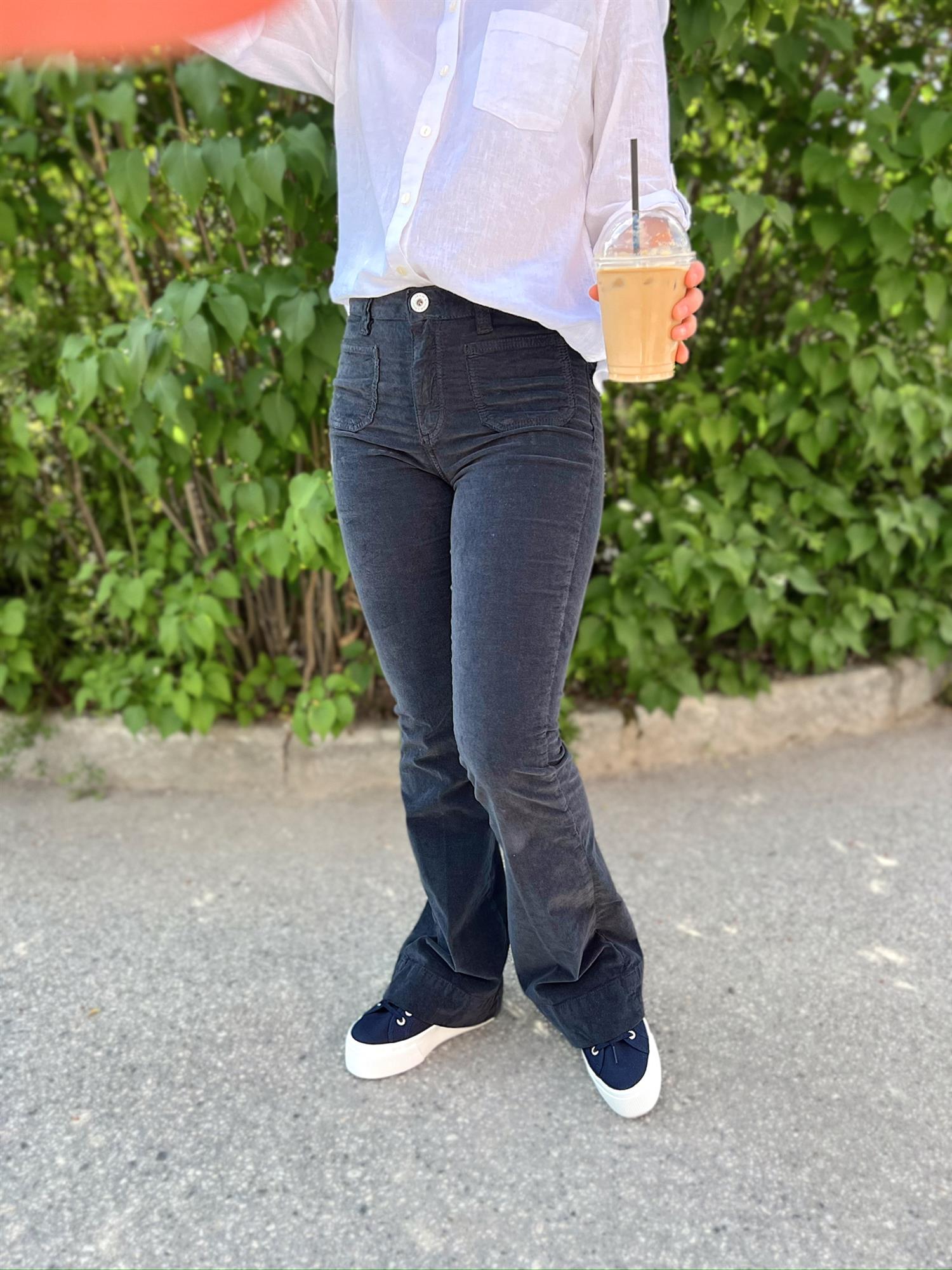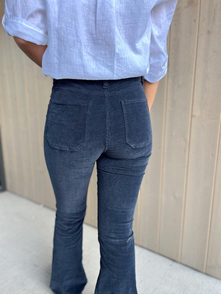 Gi garderoben din et løft med Jim fra Denim Studio – en elegant bukse i en dyp blåfarge som skaper et sofistikert uttrykk. Den myke cordkvaliteten gir et eksklusivt preg, mens stilige frontlommer, baklommer og beltehemper gjør den både praktisk og gjennomført.
