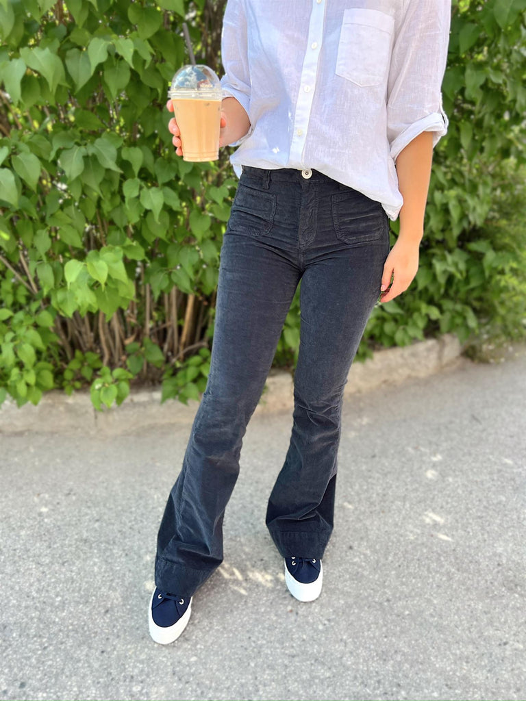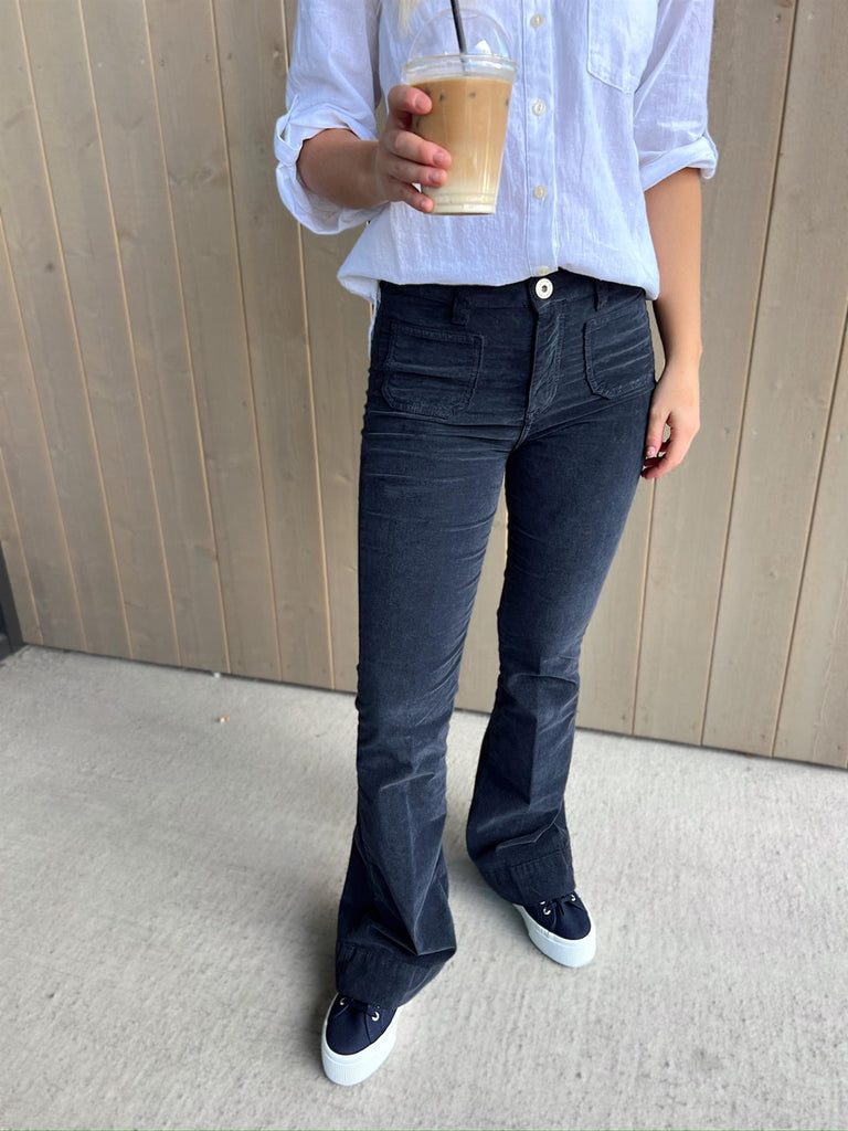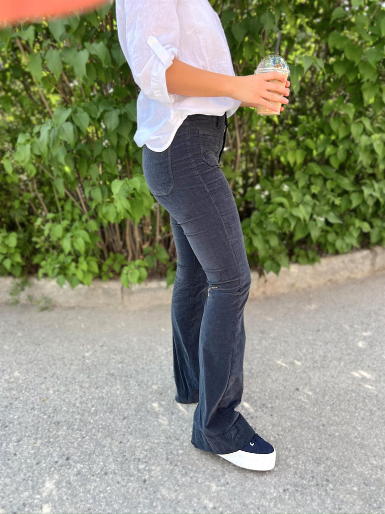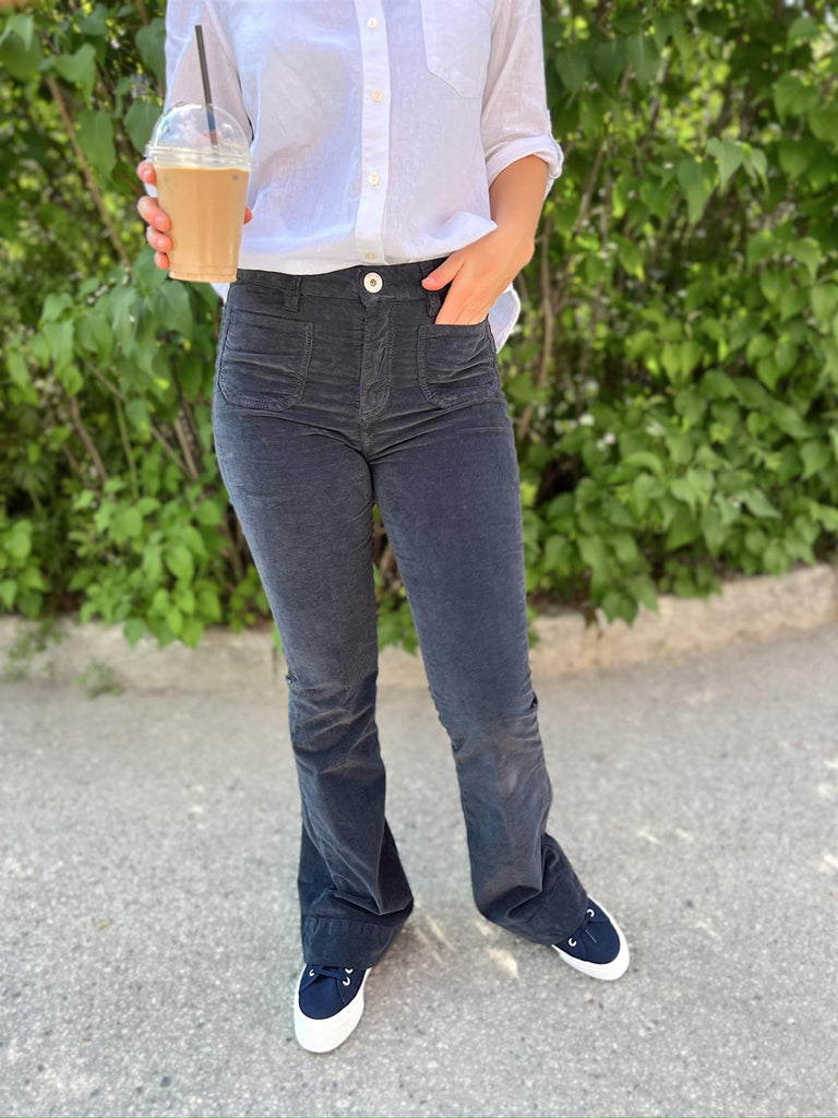 Gi garderoben din et løft med Jim fra Denim Studio – en elegant bukse i en dyp blåfarge som skaper et sofistikert uttrykk. Den myke cordkvaliteten gir et eksklusivt preg, mens stilige frontlommer, baklommer og beltehemper gjør den både praktisk og gjennomført.
