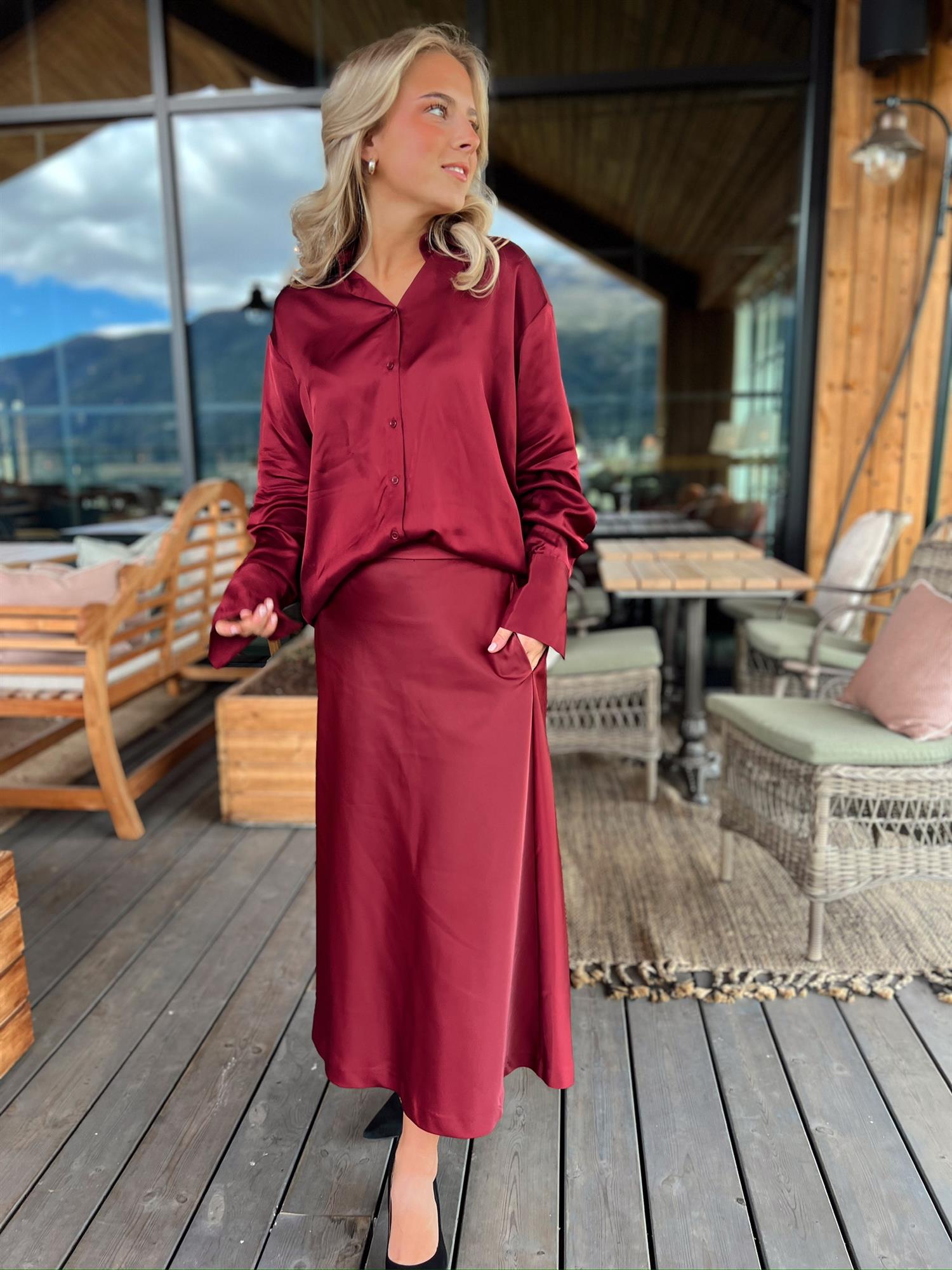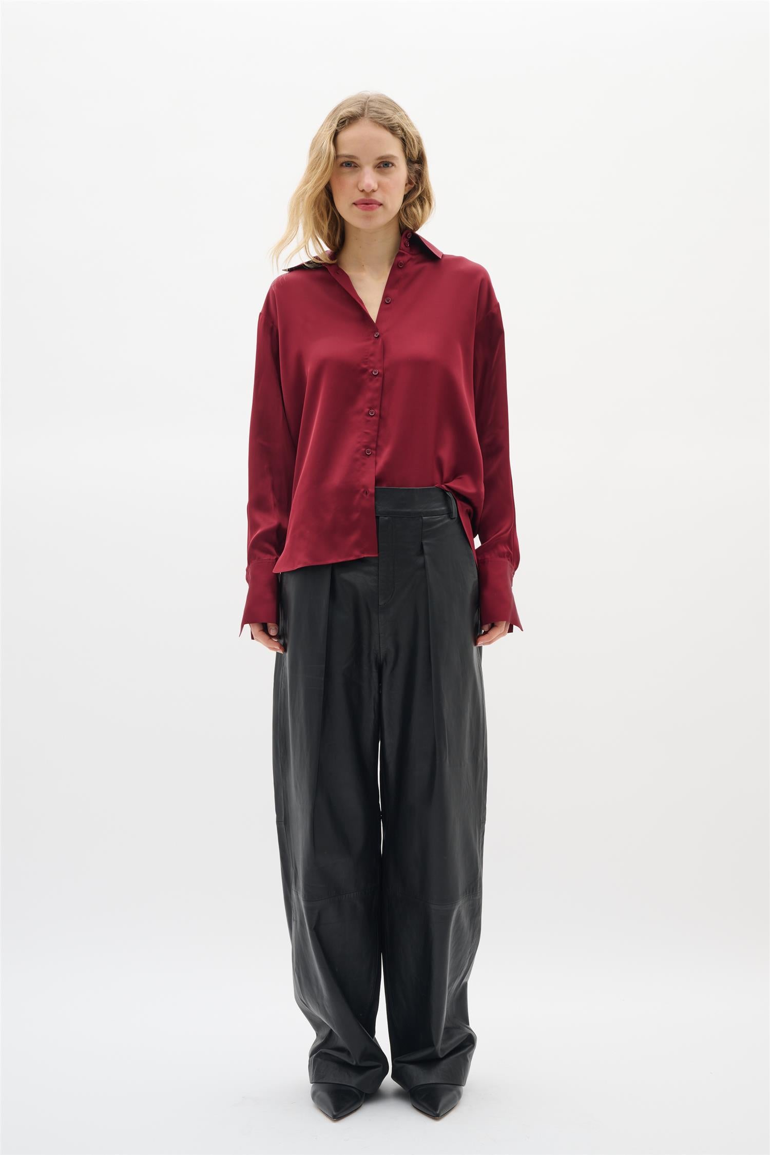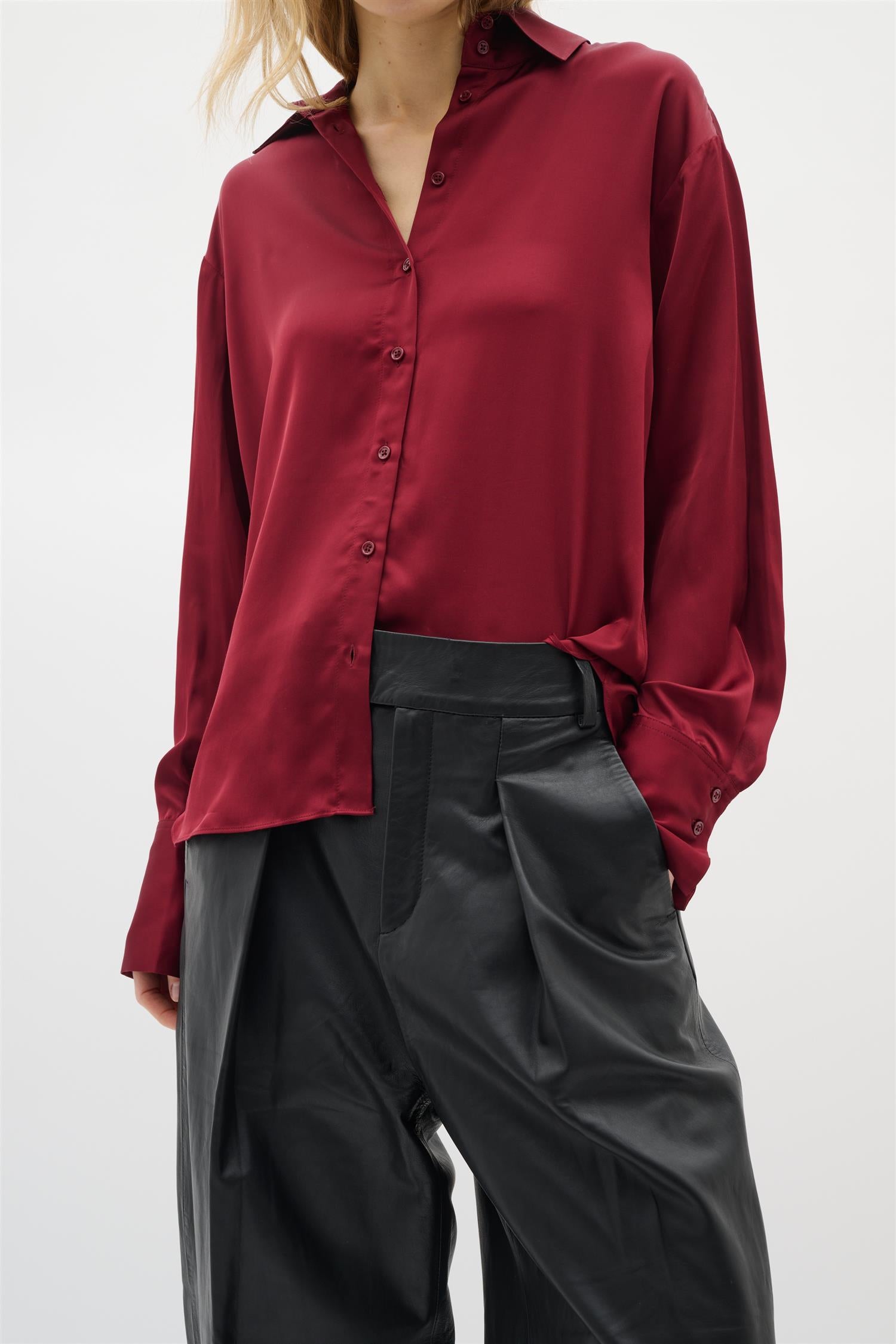 PaulineIW Shirt i en dyp Cabernet-farge er den perfekte kombinasjonen av stil og komfort. Denne skjorten har en løs passform som gir en avslappet, men likevel elegant look, ideell for både hverdagsbruk og spesielle anledninger.