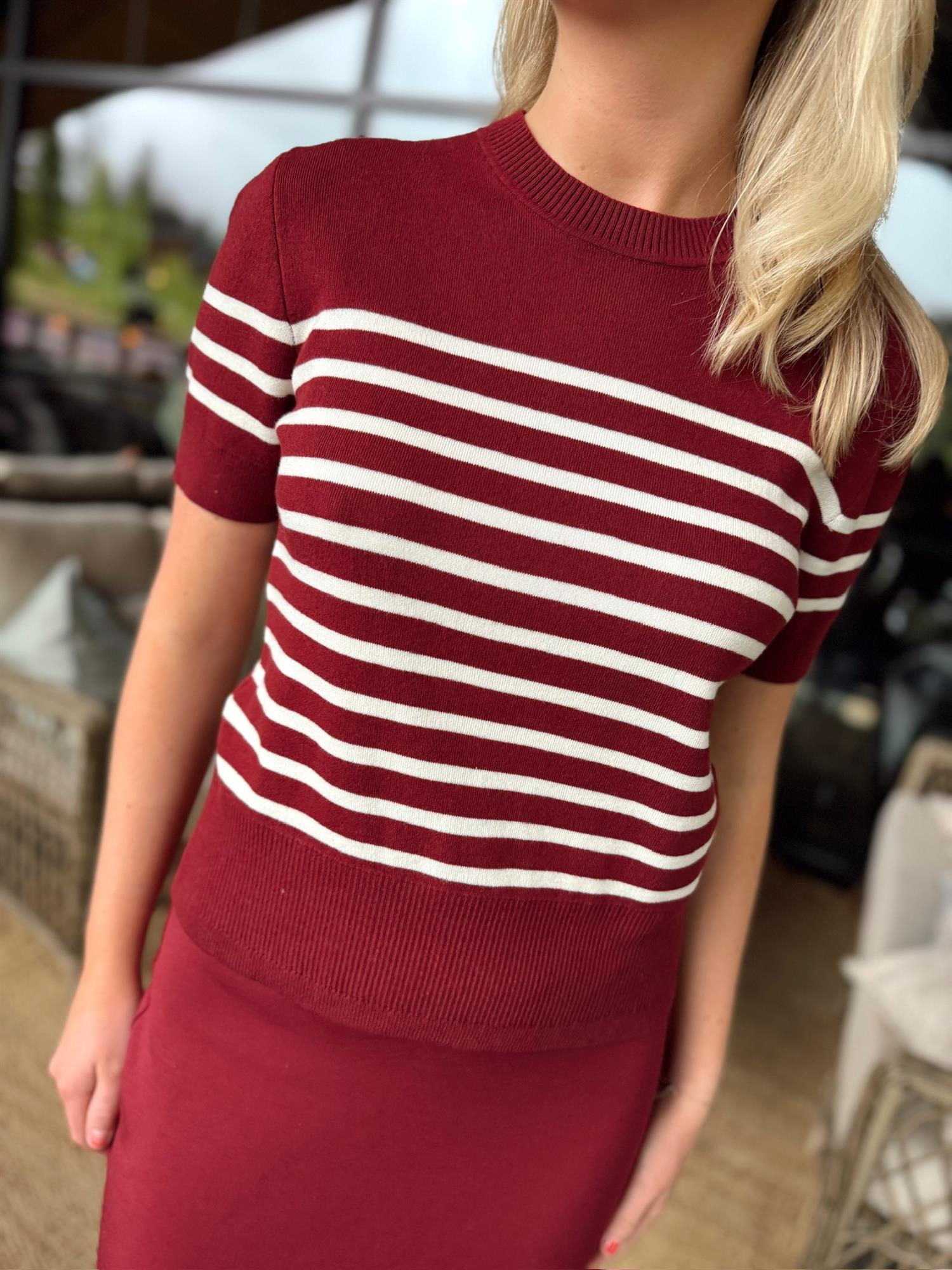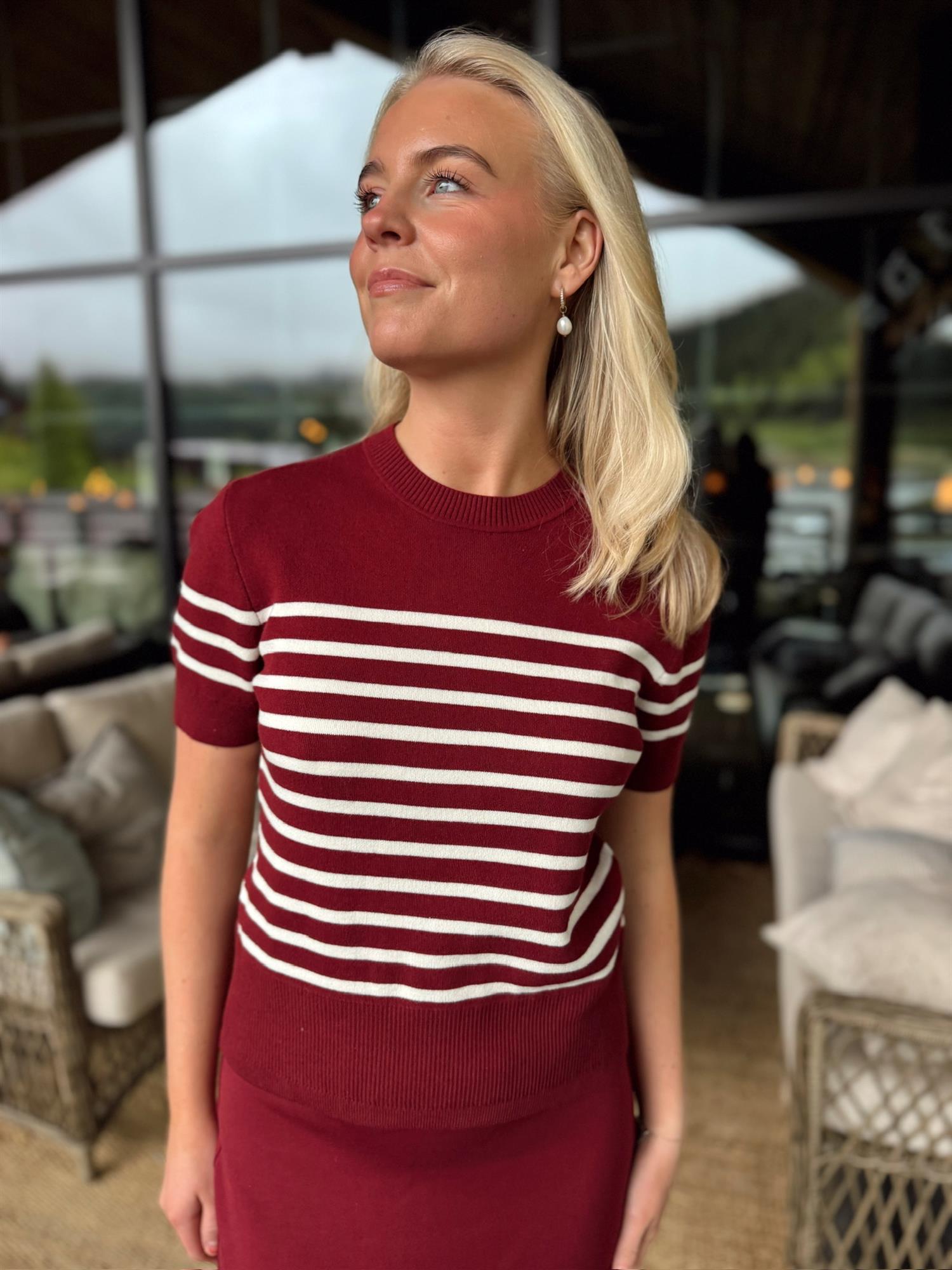 - Farge: Cabernet Stripe - en dyp rød farge med stilige striper som gir et friskt og trendy utseende.