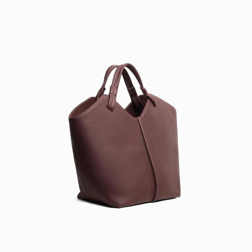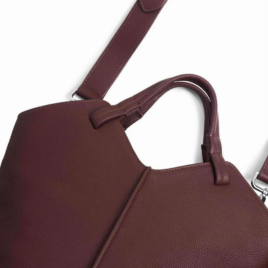 Maya Tote Bag Burgundy fra Jim Rickey er en kompakt tote bag med myke former. Denne elegante vesken i fargen burgundy har et unikt design med en revers søm og en oljemaling finish. Med en komfortabel bære håndtak og en avtagbar skulderreim, er Maya Tote Bag Burgundy både praktisk og stilig. Inneholder en innerlomme og kommer med en støvpose. Vesken er laget av kuskinn, mens innsiden er foret med tekstil.