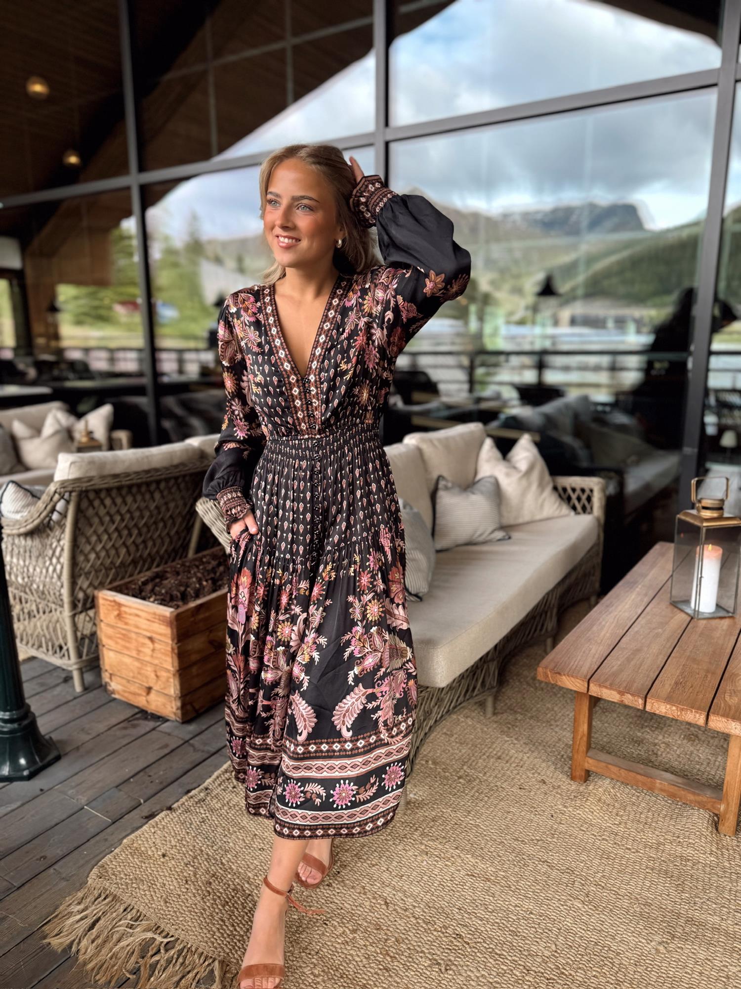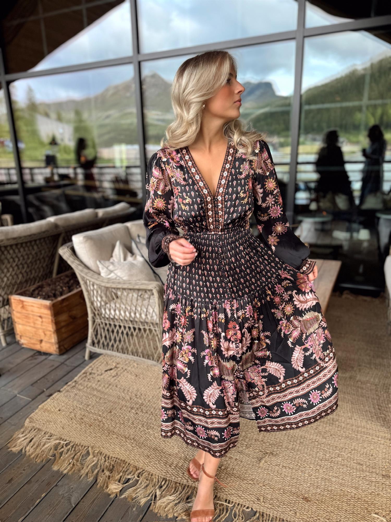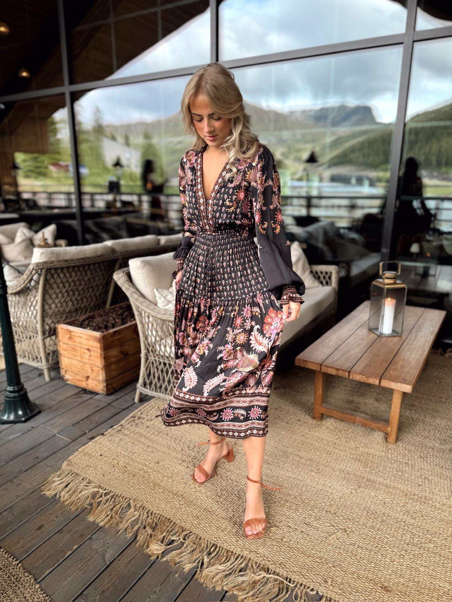 Raquel kjolen i svart er en elegant og tidløs kjole som passer perfekt til spesielle anledninger. Med sin midi-lengde og delikate detaljer, vil denne kjolen gi deg et sofistikert utseende.