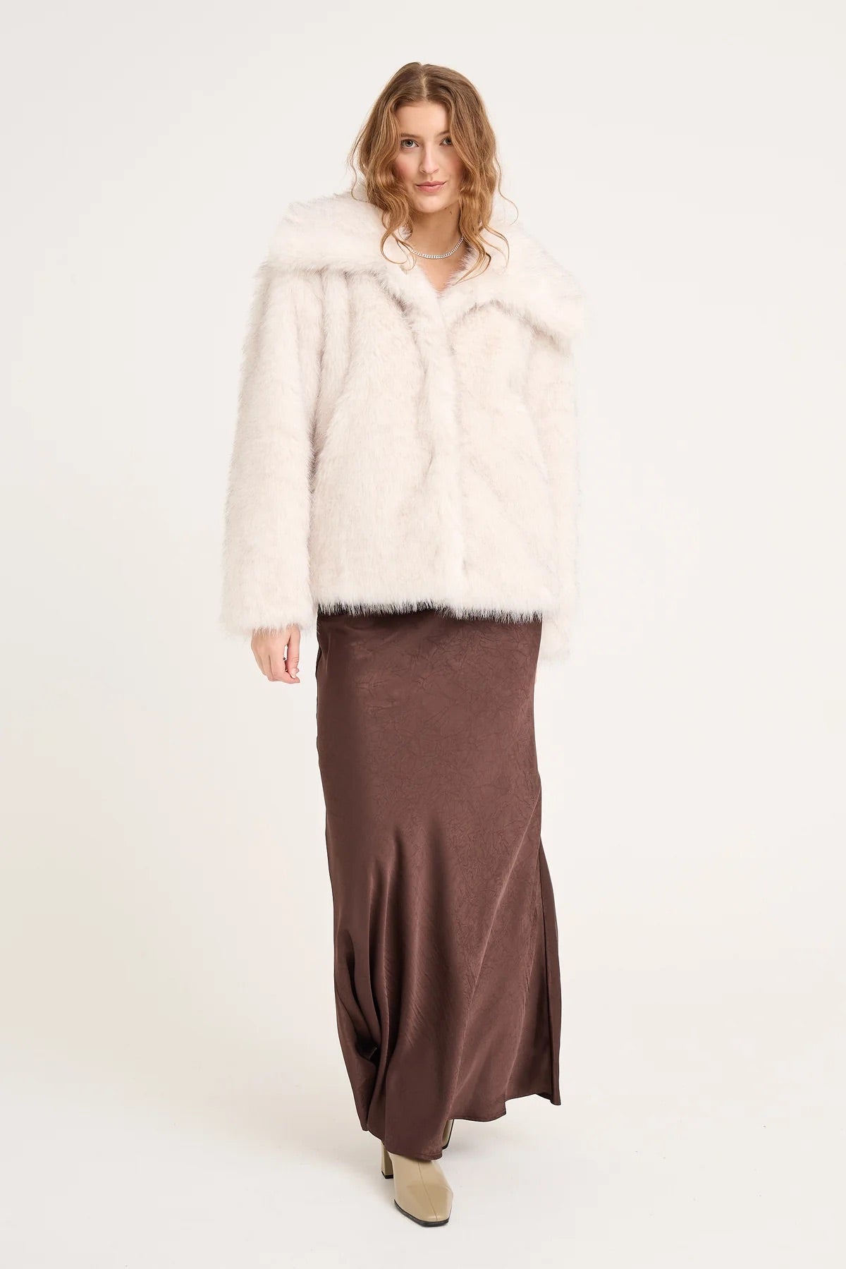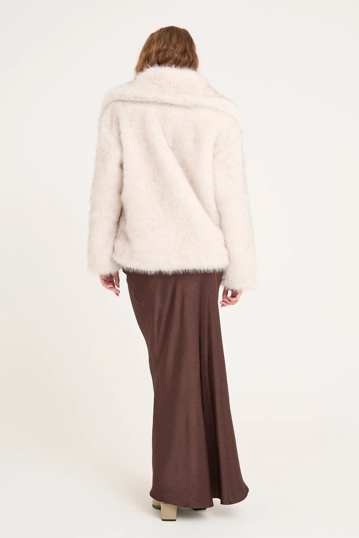 Fur Jacket er en kort og myk jakke i luksuriøs faux fur med klassisk krage og skjult lukking foran. Jakken har en romslig passform som gir et avslappet og samtidig elegant uttrykk – perfekt til både hverdag og fest.