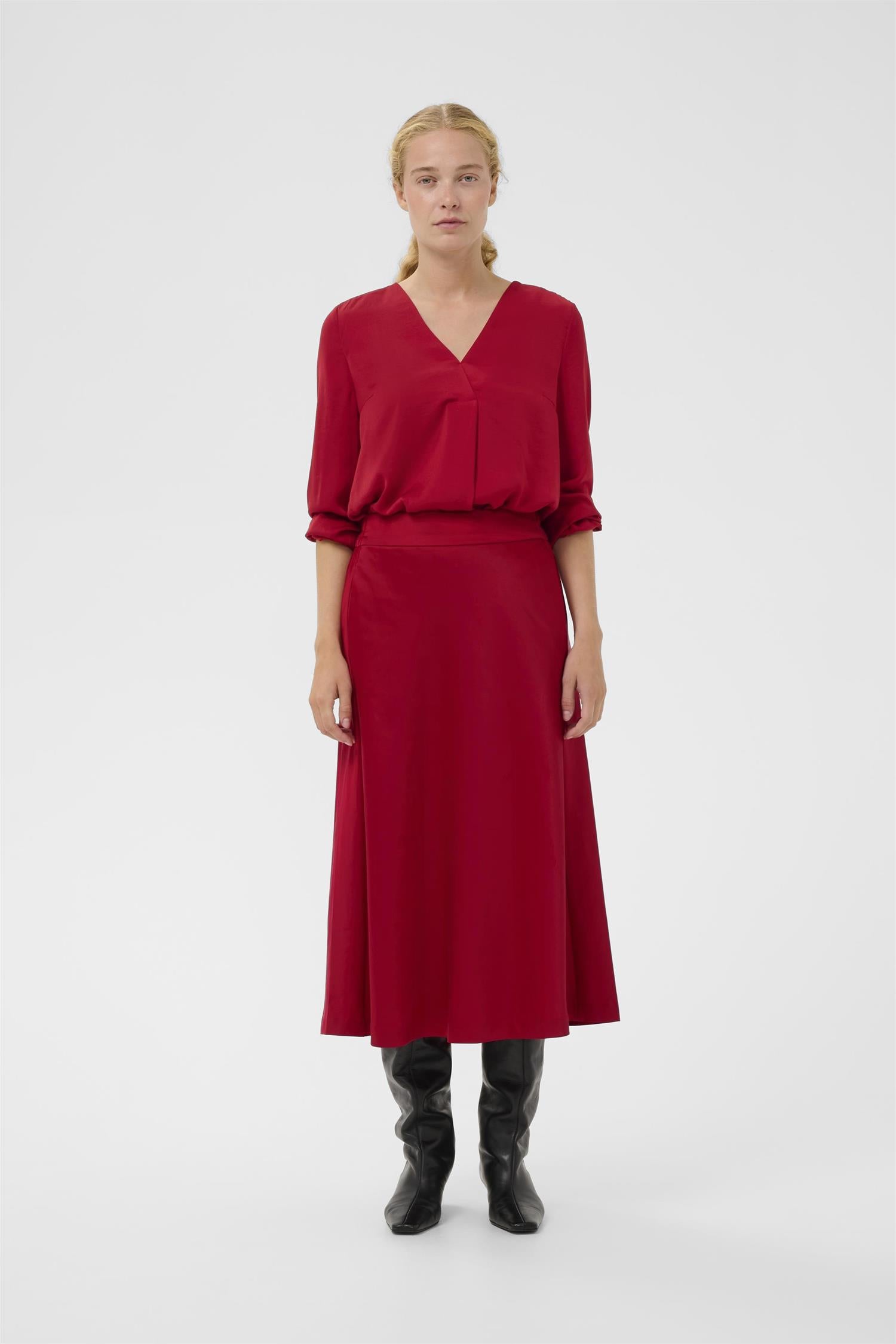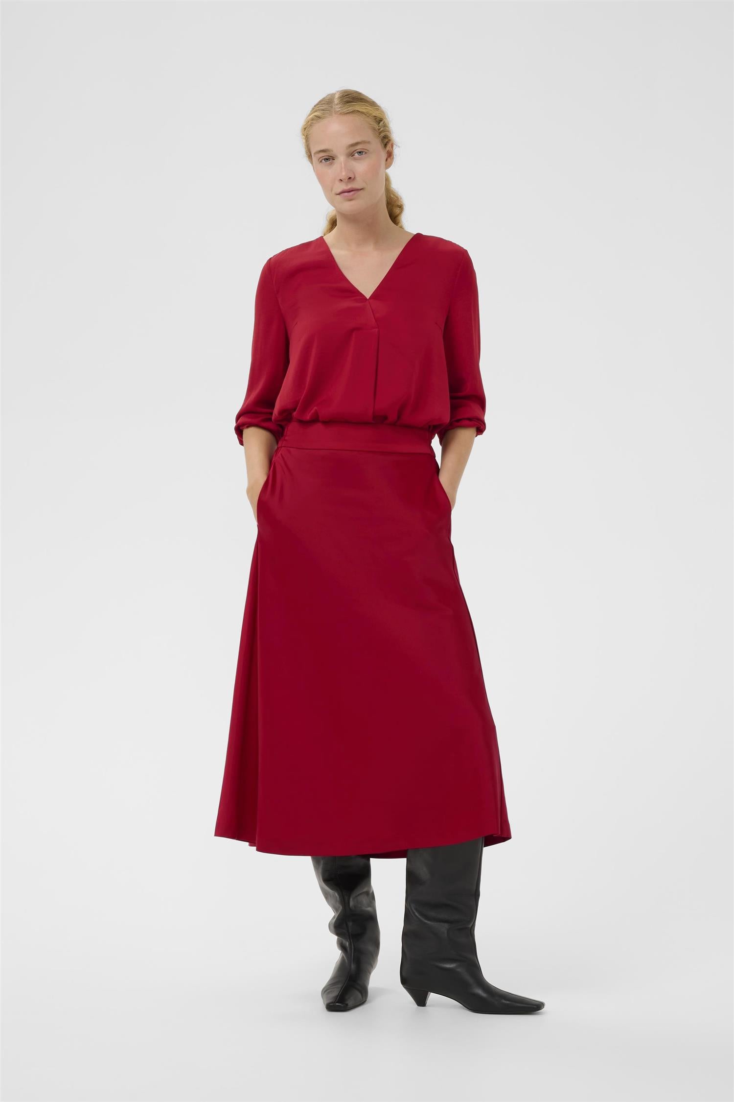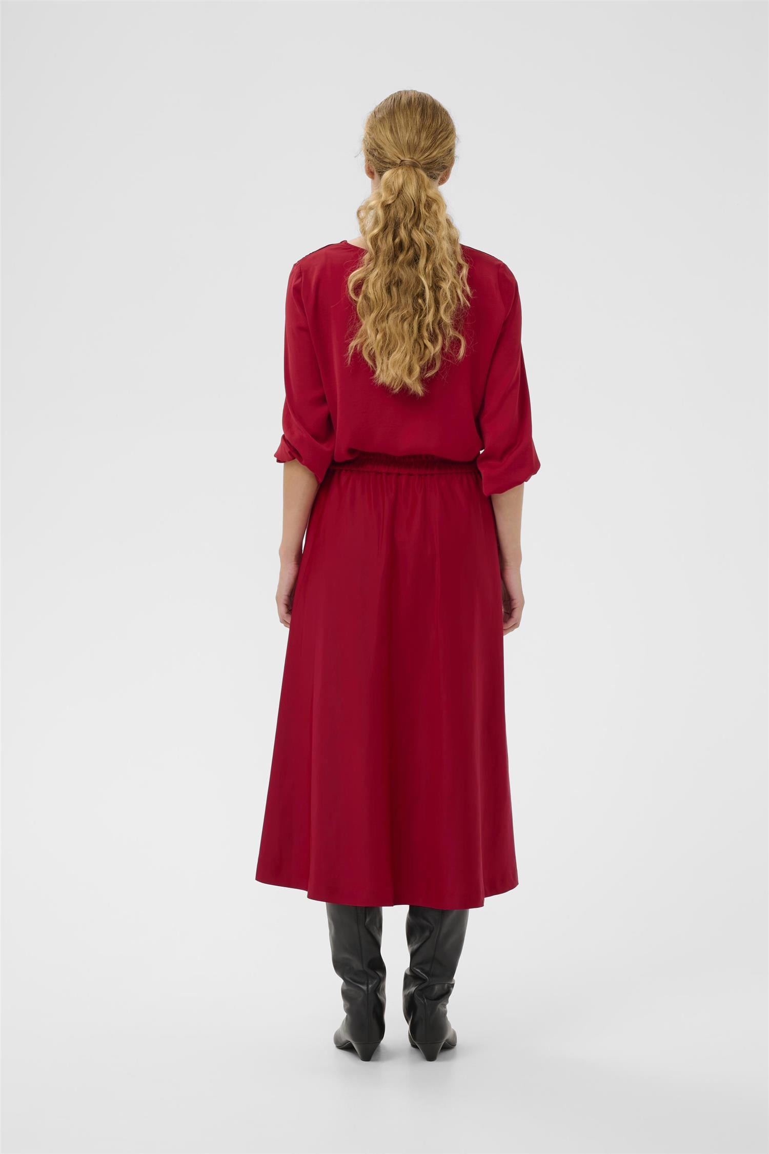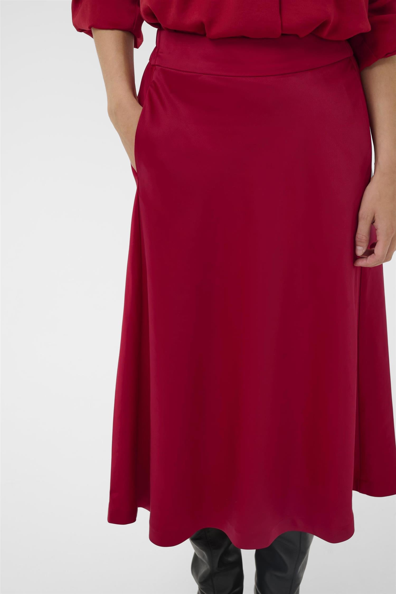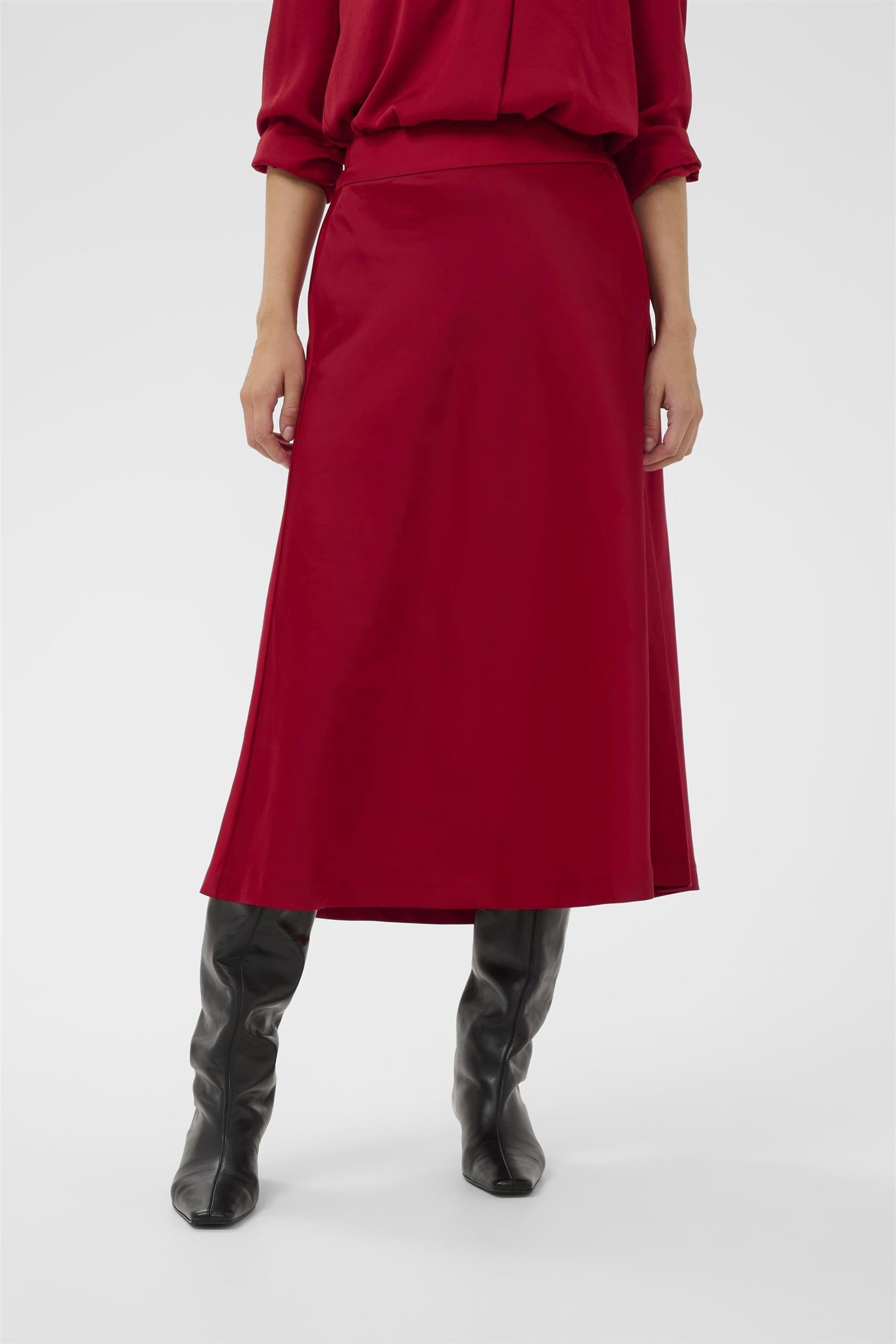 ZilkyIW Skirt i en livlig True Red farge er det perfekte tilskuddet til garderoben din. Denne A-formede midi-skjørtet kombinerer stil med komfort, takket være elastisk midje og en moderne silhuett. Laget av en blanding av polyester, resirkulert polyester, viskose og elastan, gir det både holdbarhet og en behagelig passform.