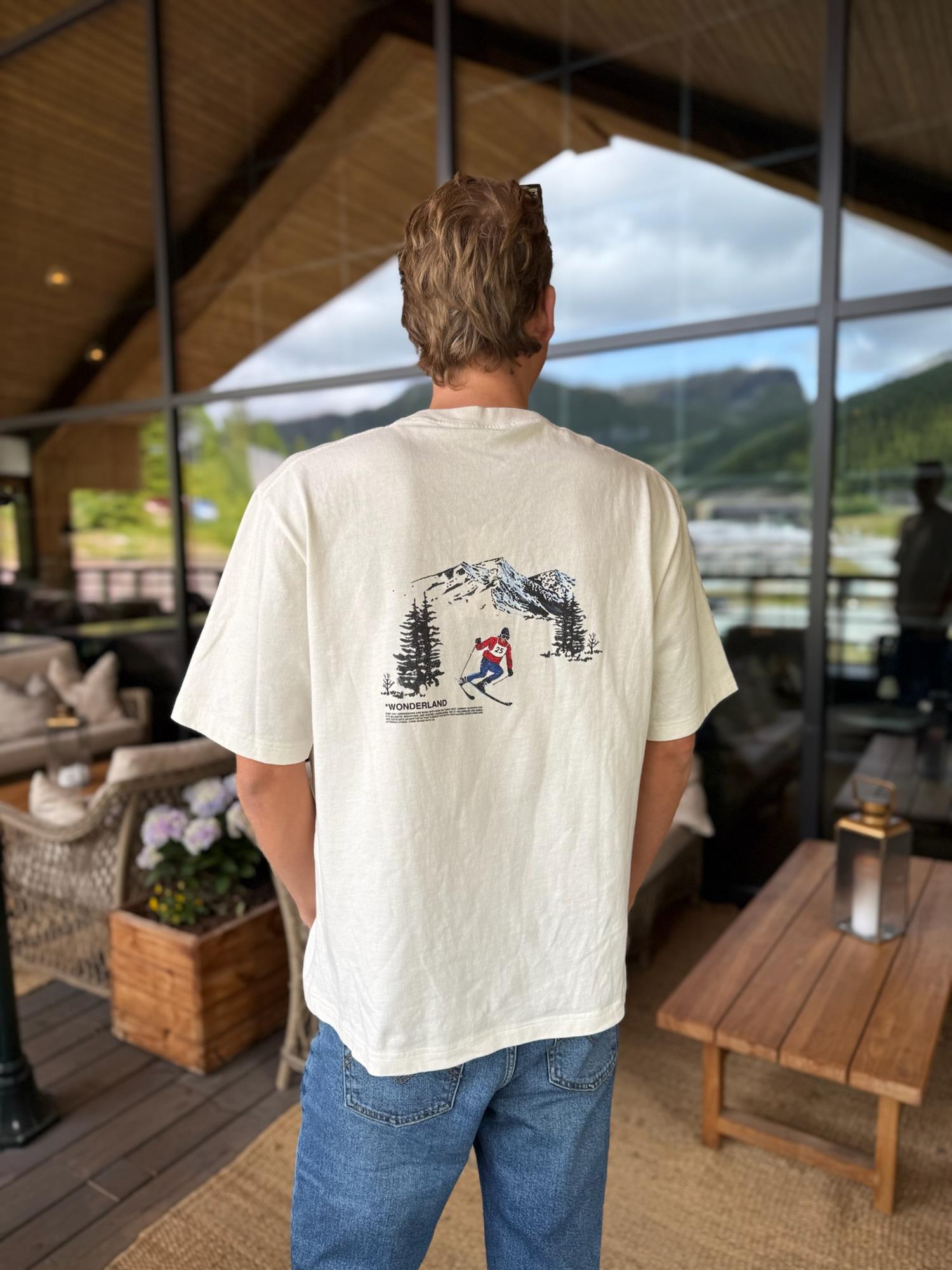 Ranger National Tee 25-04 er laget av ren økologisk bomull og har sesongens kunstverk, dropped shoulders, sømdetaljer og ribbestrikkede kanter. Denne t-skjorten er perfekt for en avslappet stil.