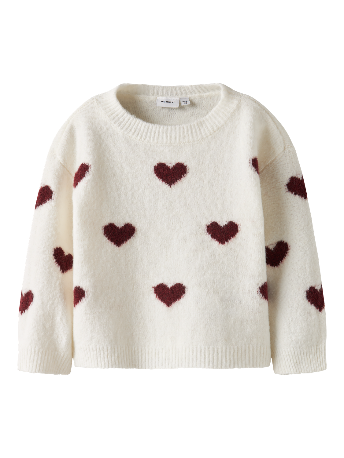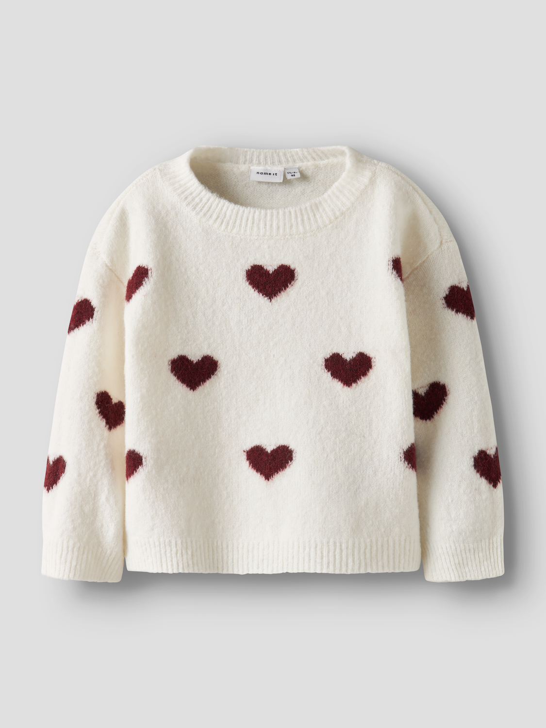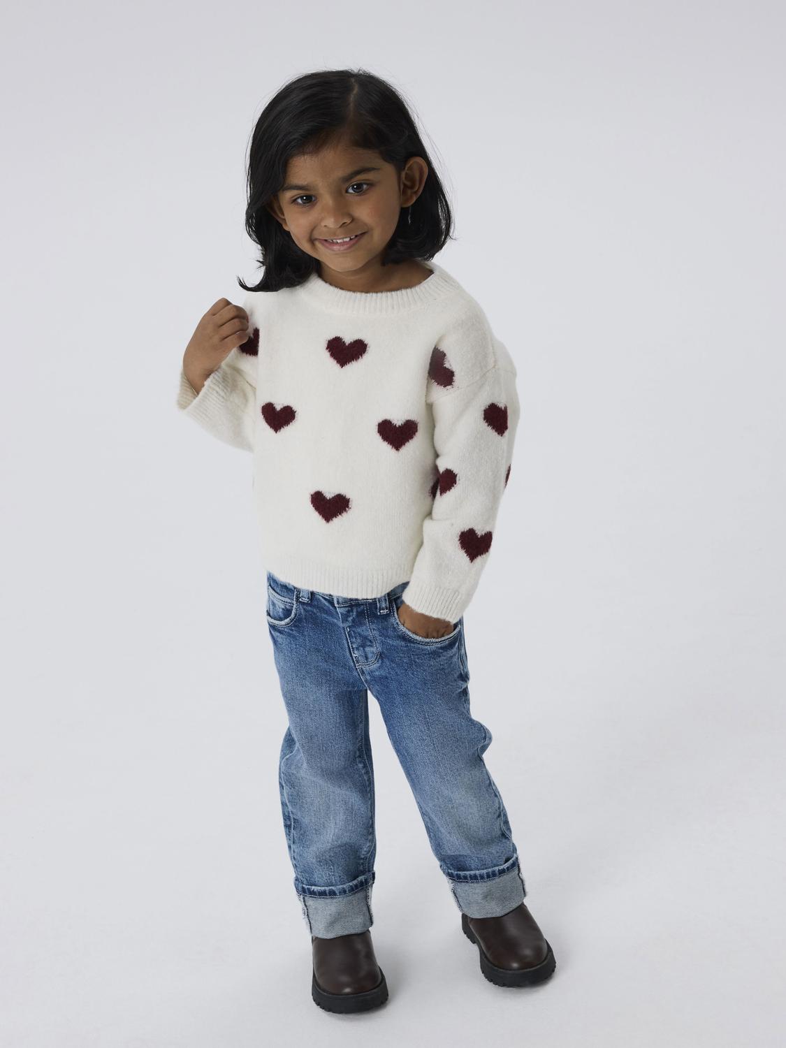 Name It - Nmfona Ls Knit - Cloud Dancer Burgundy Hearts