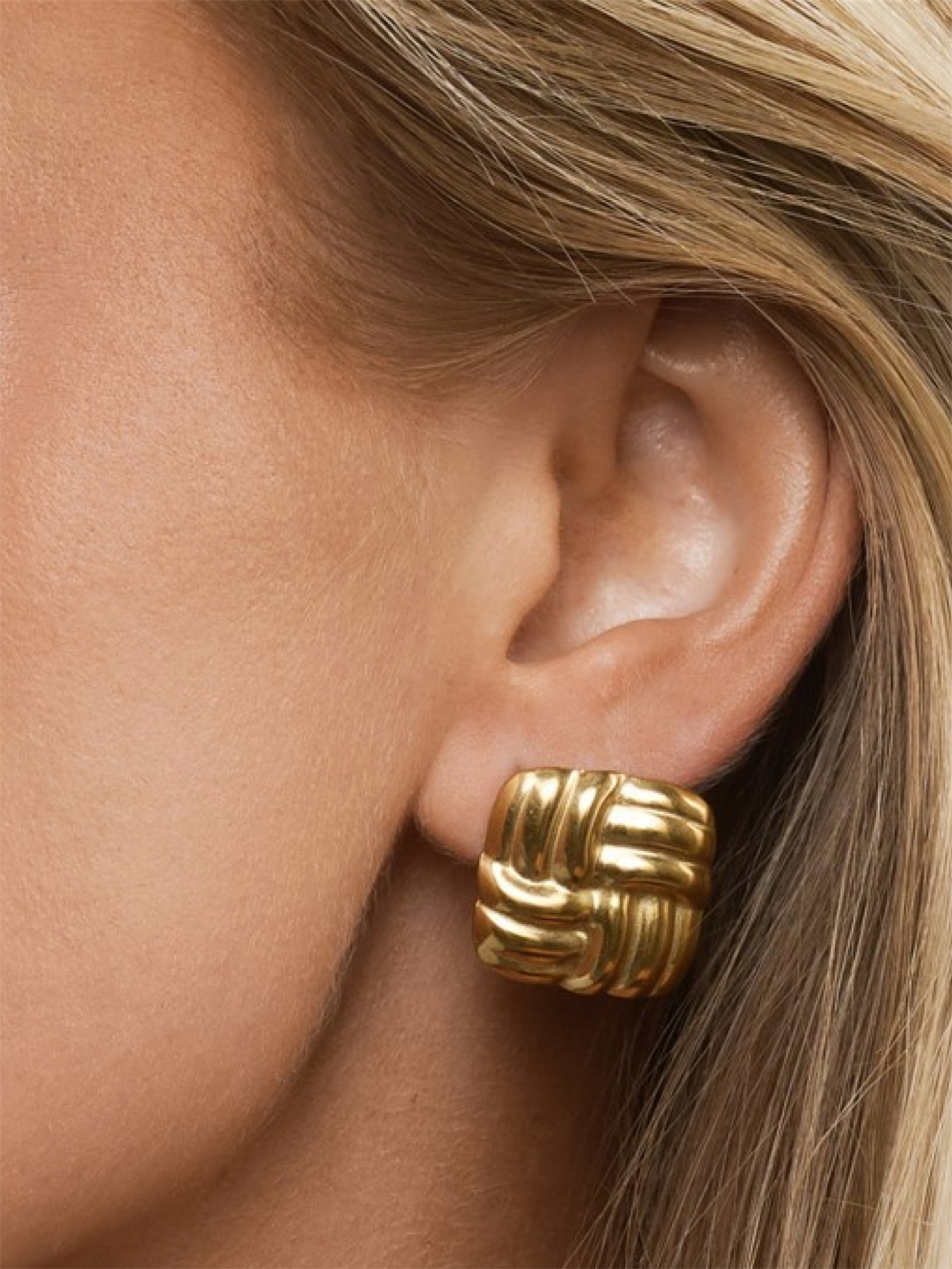 Hilde-øreringene har et tidløst og elegant design med en knutedetalj som gir et sofistikert og minimalistisk preg. Laget av rustfritt stål og belagt med 18k gull, kombinerer de både stil og holdbarhet, perfekte for hverdagsbruk eller spesielle anledninger.