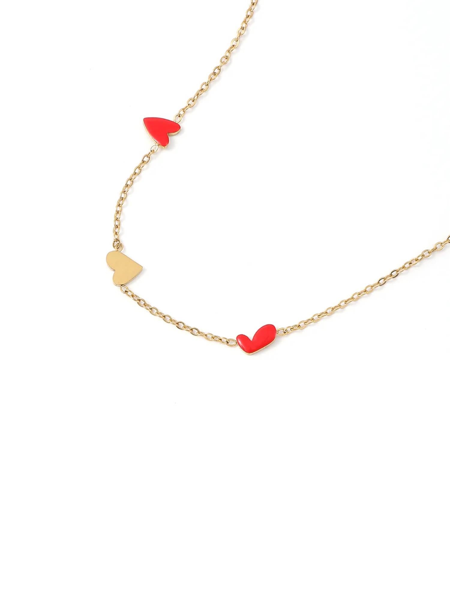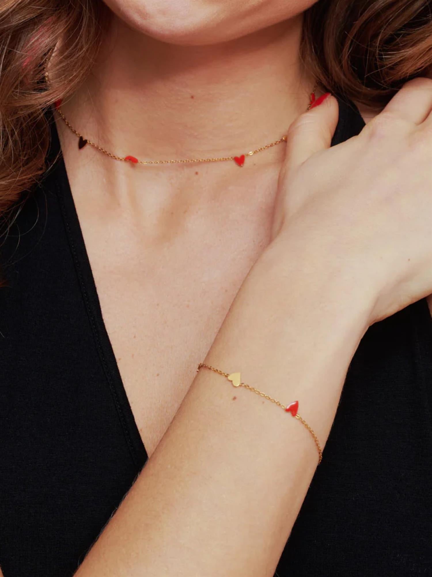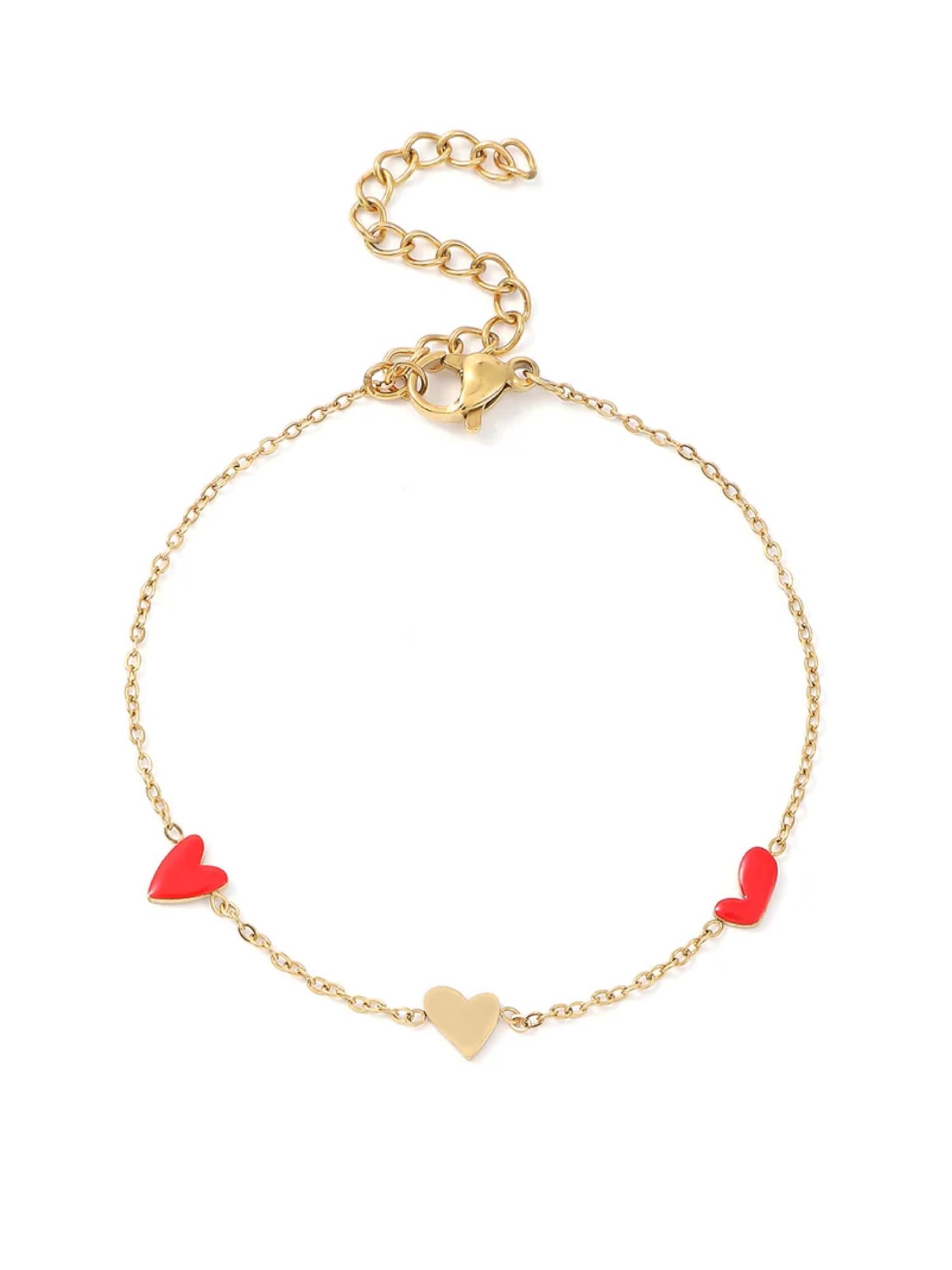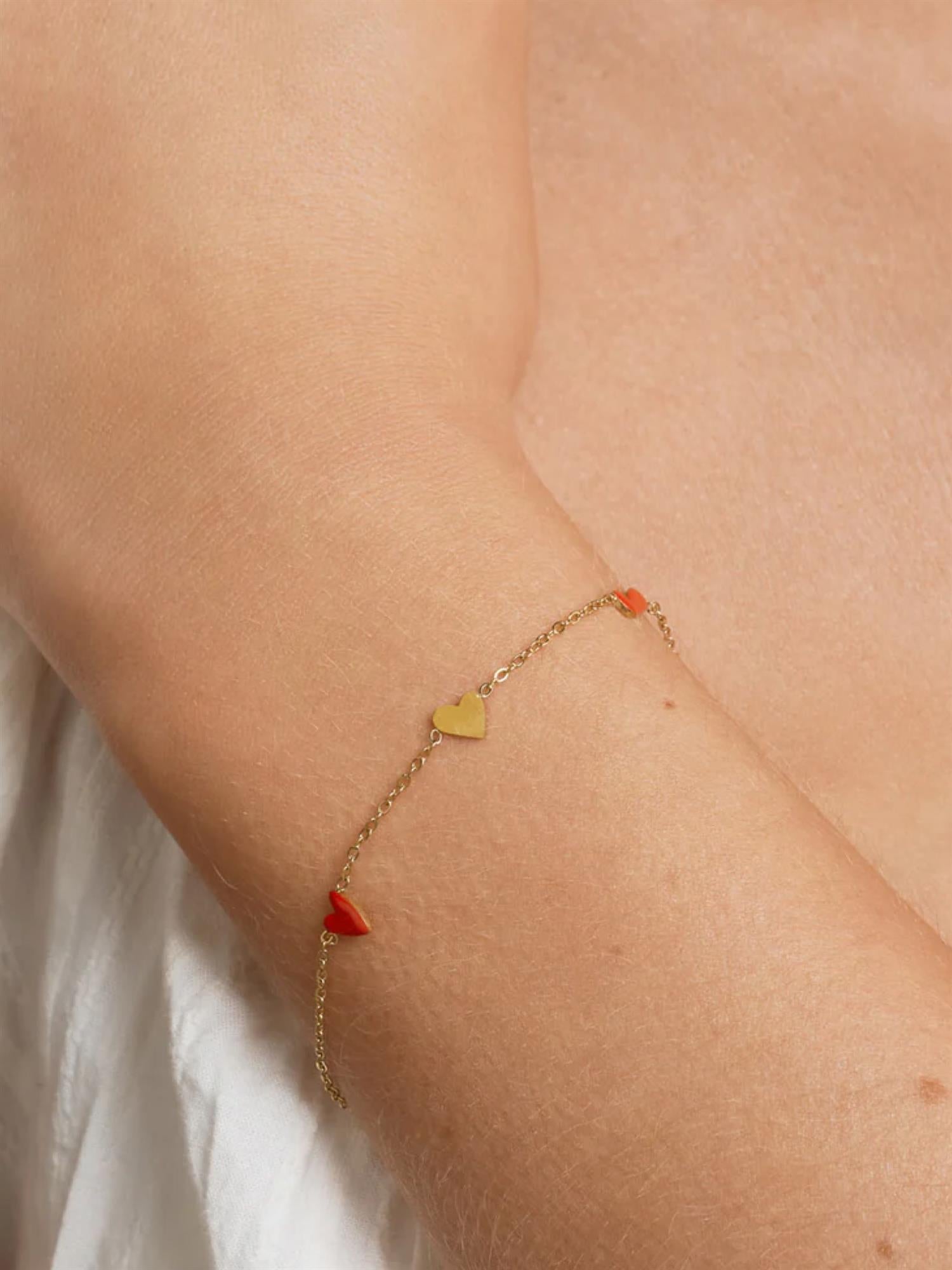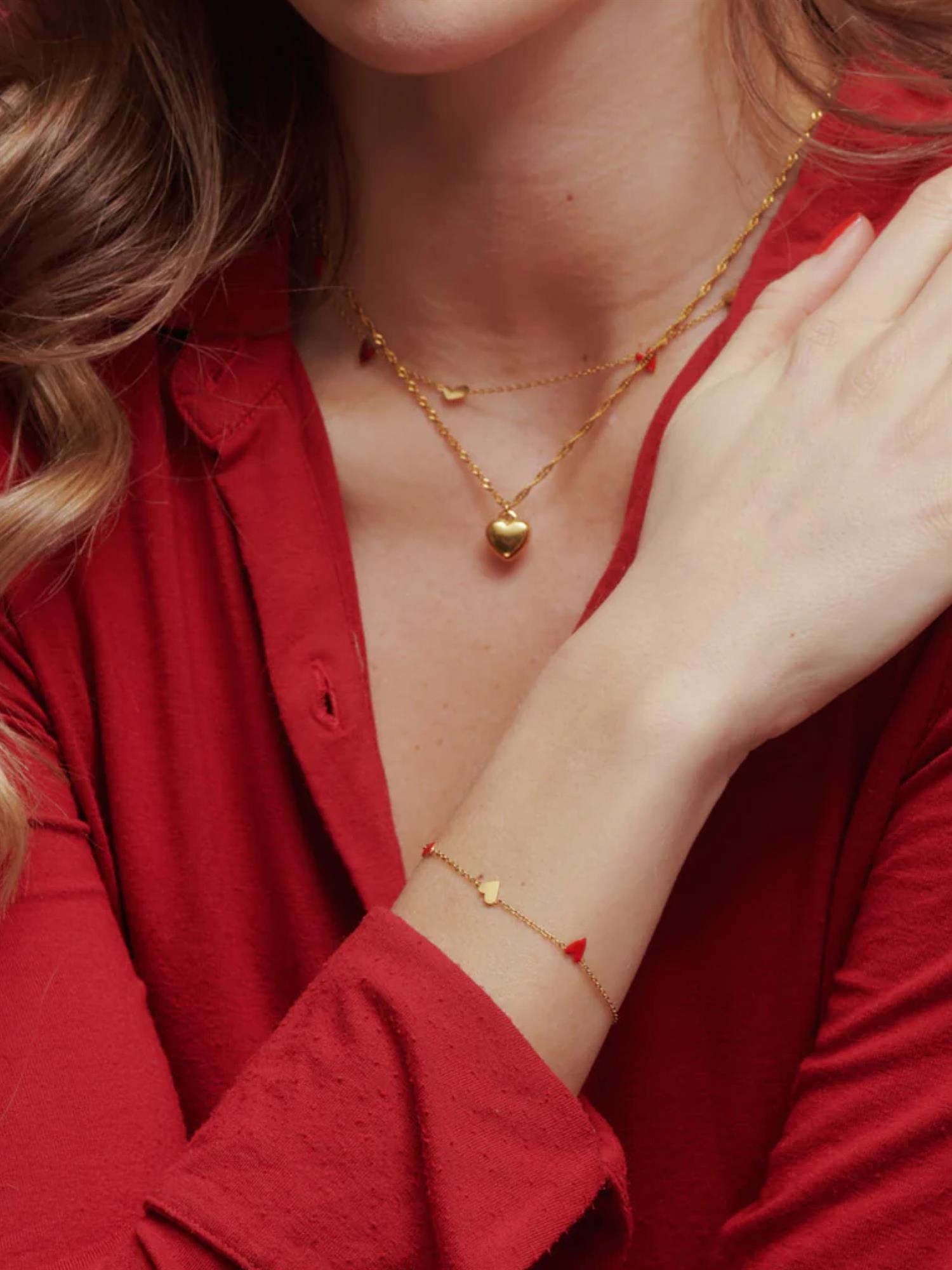 Timi of Sweden - Linnea - Heart Chain Bracelet Red & Gold - Gold